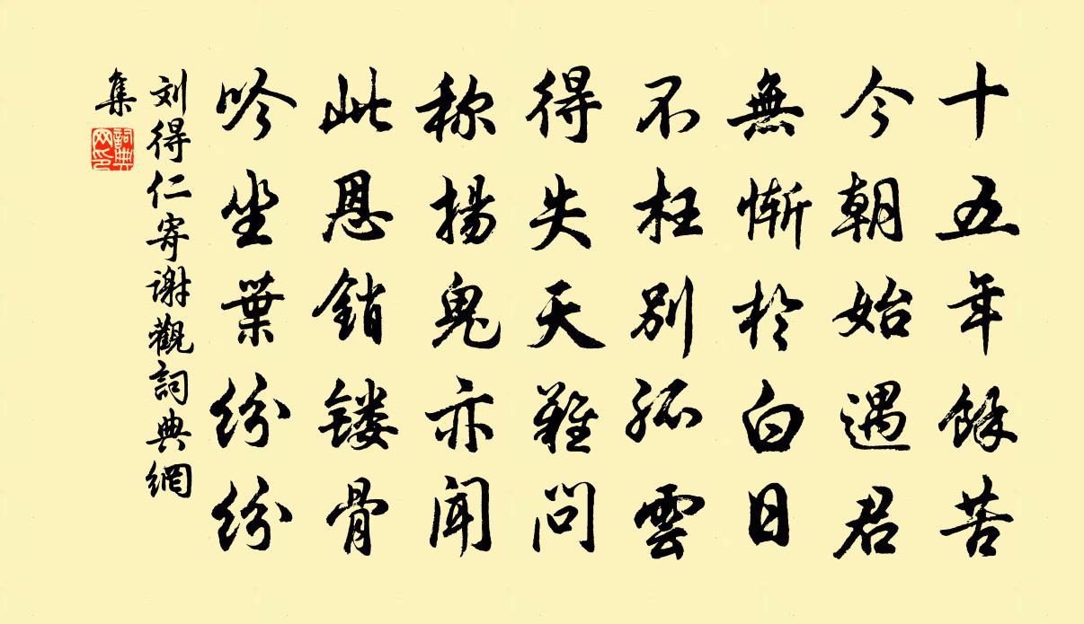 詩詞名句歷史字典書法欣賞書法字典國語詞典說文解字康熙字典古漢語字典標 題 作 者 詩 句 寄謝觀作者:劉得仁 朝代:唐代寄謝觀原文十五年餘苦,今朝始遇君。無慚於白日,不枉別孤雲。得失天難問,稱揚鬼亦聞。此恩銷鏤骨,吟坐葉紛紛。詩詞問答問:寄謝觀的作者是誰?答:劉得仁問:寄謝觀寫於哪個朝代?答:唐代劉得仁寄謝觀書法欣賞寄謝觀書法作品詩詞推薦效阮公詩江淹〔南北朝〕夕雲映西山。蟋蟀吟桑梓。零露被百草。秋風吹桃李。君子懷苦心。感慨不能止。駕言遠行游。驅馬清河涘。寒暑次韻何廉昉太守感懷述事十六首曾國藩〔清代〕由來忠孝易通神,優利華丞識後身。石攔海枯終有盡,生天成佛豈無人。關河度情空蕭瑟,形影陶潛孰主賓?雞犬趙成甫招飯次默夫韻王灼〔宋代〕鳥聲呼客急,花影過簾遲。酒灩東西玉,枰殘白黑棋。稍驚風弄袖,真恐雨催詩。一笑留歸騎,斜陽無限時。喜雨次韻併呈郡守吳居父樓鑰〔宋代〕一旱禱而雨,此心天與通。為霖三日起,起舞萬家同。破塊朝方爽,翻盆夜正中。隨車真回響,巫覡又何功。春來食不足戲作陸游〔宋代〕飢臥誰能羨屬饜?高懷飽食豈容兼。分司祿在終難取,束帛恩深獨不沾。衰謝形容無藥駐,賓士日月久膠黏。兒童清江勸駕送舉人二首王炎〔宋代〕藏山有良玉,潛淵有明珠。寶氣露光彩,見者詎肯遺。賢士抱良貴,又與珠玉殊。方其未達時,眇然一布韋。時來劉龑石讖佚名〔唐代〕人人有一,山山值牛。兔絲吞骨,蓋海承劉。張太傅生日詩晏殊〔宋代〕三陟槐庭二將壇,冊書文武載動賢。辭榮尚峻經邦秩,養素方臨釣渭年。清會別開金谷墅,新吟多雜蕊珠篇。驚姜蝶戀花(贈別趙邦才席上作)趙彥端〔宋代〕堂外溪橋楊柳畔。滿樹東風,更著流鶯喚。時節清明寒暖半。秦箏欲妒歌珠貫。一寸離腸無可斷。舊管新收,盡記己未新歲陸游〔宋代〕餞歲愁雖劇,迎年喜亦深。桃符帶草寫,椒酒過花斟。車馬久無跡,兒孫聊慰心。更欣春意早,處處有鳴禽。出郭趙蕃〔宋代〕疏籬樹樹李花雪,野寺條條楊柳絲。春風收雨雨收後,白日變晴晴變時。有餘不足無盡景,截長補短何限詩。煙霞初秋鄭剛中〔宋代〕包飯腰鐮洞戶忙,芭蕉葉底稻田黃。微風有意回闌暑,小雨頻來作放涼。煙際輕舟分霽色,望中飛鷺點山光。初秋秦淮雜詩王士禎〔清代〕舊院風流數頓楊,梨園往事淚沾賞。樽前白髮談天寶,零落人間脫十娘。蔥陸游〔宋代〕瓦盆麥飯伴鄰翁,黃菌青蔬放箸空。一事尚非貧賤分,芼羹僭用大官蔥。鷓鴣天范成大〔宋代〕仗下儀容筆下文。天風駕鶴住仙真。榴花三日迎端午,蕉葉千春紀誕辰。經國志,立朝身。暫煩高手活吳民。明朝早晴出門陳著〔宋代〕山光溪色曉晴閒,鷗鷺在溪雪在山。忽然自笑還自語,白日可似溪山閒。鷓鴣天 孟津作元好問〔金代〕總道忘憂有杜康。酒逢歡處更難忘。桃紅李白春千樹,古是今非笑一場。歌浩蕩,墨淋浪。銀釵縞袂滿鄰牆。百年挽潘德夫左司孫應時〔宋代〕綜理何精密,胸中故坦然。愛民真為國,事世不欺天。霜氣星台表,春風竹馬前。湘江盡南海,遺績尚千年。江上王安石〔宋代〕江水漾西風,江花脫晚紅。離情被橫笛,吹過亂山東。晚次苦竹館,卻憶乾越舊遊劉長卿〔唐代〕匹馬風塵色,千峰旦暮時。遙看落日盡,獨向遠山遲。故驛花臨道,荒村竹映籬。誰憐卻回首,步步戀南枝。名句推薦梅子金黃杏子肥,麥花雪白菜花稀。范成大《四時田園雜興·其二》 雖有戈矛之刺,不如恭儉之利也。荀子《荀子·榮辱》 屋漏者民去之,水淺者魚逃之,樹高者鳥宿之,德厚者士趨之劉向《說苑·談叢》 春風倚棹闔閭城,水國春寒陰復晴。劉長卿《別嚴士元》 遇酒且呵呵,人生能幾何!韋莊《菩薩蠻·勸君今夜須沈醉》 鳥飛千白點,日沒半紅輪。白居易《彭蠡湖晚歸》 呼兒將出換美酒,與爾同銷萬古愁。李白《將進酒》 淡淡梅花香欲染,絲絲柳帶露初乾。曹雪芹《香菱詠月·其二》 小橋橫截,缺月初弓。辛棄疾《沁園春·靈山齋庵賦時築偃湖未成》 而今才道當時錯,心緒淒迷。納蘭性德《採桑子·當時錯》