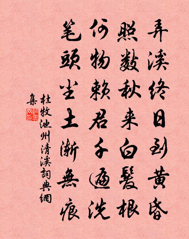 弄溪終日到黃昏,照數秋來白髮根。何物賴君千遍洗,筆頭塵土漸無痕。