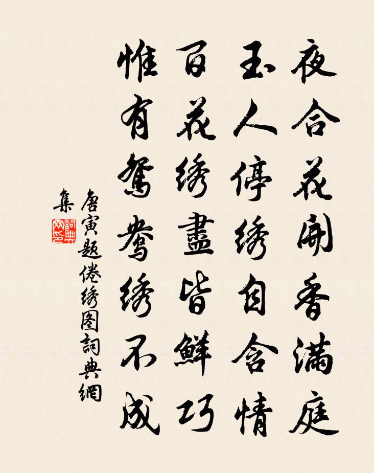 夜合花開香滿庭,玉人停繡自含情,百花繡盡皆鮮巧,惟有鴛鴦繡不成。詩詞問答