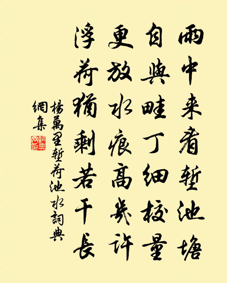 雨中來看塹池塘,自與畦丁細校量。更放水痕高几許,浮荷猶剩若干長。