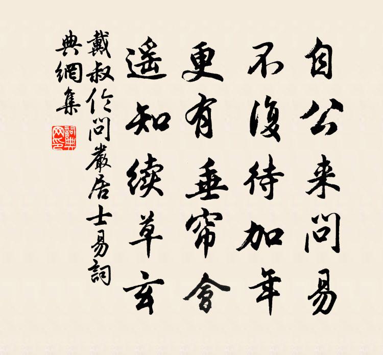 詩詞名句歷史字典書法欣賞書法字典國語詞典說文解字康熙字典古漢語字典標 題 作 者 詩 句 問嚴居士易作者:戴叔倫 朝代:唐代問嚴居士易原文自公來問易,不復待加年。更有垂簾會,遙知續草玄。詩詞問答問:問嚴居士易的作者是誰?答:戴叔倫問:問嚴居士易寫於哪個朝代?答:唐代問:問嚴居士易是什麼體裁?答:五絕問:戴叔倫的名句有哪些?答:戴叔倫名句大全戴叔倫問嚴居士易書法欣賞問嚴居士易書法作品注釋全唐詩:卷274_5詩詞推薦哭小女痴兒李群玉〔唐代〕平生未省夢熊羆,稚女如花墜曉枝。條蔓縱橫輸葛藟,子孫蕃育羨螽斯。方同王衍鍾情切,猶念商瞿有慶遲。負爾留贈太平劉道士王洋〔宋代〕早歲希夷合道真,八年靜默已全神。收還赤子無為境,留得丹霄自在身。獨與老莊談妙理,不分儒釋是殊倫。有時韋壽博書齋(一作溫庭筠詩)薛逢〔唐代〕玄晏先生已白頭,不隨鵷鷺狎群鷗。元卿謝免開三徑,平仲朝歸臥一裘。醉後獨知殷甲子,病來猶作晉春秋。塵纓春從天上來 廣陵冬夜,與松雲子論五音二變張翥〔元代〕還相為宮,犁然律呂之均,雅俗之應也。不覺漏下,月滿霜空,神情爽發。松雲子吹春從天上來曲,音韻淒遠。予扈從御宿池祖詠〔唐代〕君王既巡狩,輦道入秦京。遠樹低槍壘,孤峰入幔城。寒疏清禁漏,夜警羽林兵。誰念迷方客,長懷魏闕情。送揚太祝知長洲縣司馬光〔宋代〕三吳佳縣首,民物舊熙熙。專用清談治,非如俗吏為。林疏丹橘迥,稻熟白芒欹。宜使民無忘,嚴修太伯祠。驀山溪佚名〔宋代〕月惟四日。又轉黃鍾律。好景會生辰,是天降、真儒無敵。稱觴設席,香霧騰蔥鬱。霜天曉,笙歌徹,玉斝傾仙液聞竹溪得玉局祠二首劉克莊〔宋代〕溪上人來暮叩關,殷勤一紙報平安。甘泉宿老求閒局,苦縣仙人有廢壇,拜敕定披新紫氅,傍齋應許舊黃冠。冰銜陳丞相誕日李洪〔宋代〕壺山和氣儷神崧,間世鍾賢應尹躬。小試經綸安鼎鼐,更恢韜略靖華戎。力陳致主千秋鑒,夢協遐年八十公。不用和曾谹父雨中詩王洋〔宋代〕案體無尊骨,畦丁有賤蔬。鳧鷖憑岸泛,雲海占空虛。婦老能論舊,兒痴尚帶吳。旁人如見問,老子即遷居。聞韓無咎下世陸游〔宋代〕書劍飄然去國時,南蘭陵郡日題詩。吳波漲綠迎桃葉,穰燭堆紅按柘枝。故友去為山下土,衰翁何恨鬢邊絲。憑高長亭怨(為任次山賦馴鷺)張炎〔宋代〕笑海上、白鷗盟冷。飛過前灘,又顧秋影。似我知魚,亂蒲流水動清飲。歲華空老,猶一縷、柔絲戀頂。慵憶鴛行送劉蘇州誠之帥夔門孫應時〔宋代〕了了八陣磧,巍巍三峽堂。竹枝歌感慨,曲米醉淋浪。今古英雄思,風流翰墨場。公行秋水落,穩穩上瞿唐。偈頌一百零二首釋慧遠〔宋代〕庵內不知庵外事,鐵額銅頭不相似。定花板上打秋韃,猛虎舌頭書卍字。題楊山人隱居唐求〔唐代〕深山道者家,門戶帶煙霞。綠綴沿岩草,紅飄落水花。半庭栽小樹,一徑掃平沙。往往溪邊坐,持竿到日斜。過玉蓮湯宋祁〔宋代〕平日宮中賜浴時,玉蓮香目湧華漪。錦鳧繡雁今安在,汩汩餘湯自入池。木蘭花晏幾道〔宋代〕阿茸十五腰肢好,天與懷春風味早。畫眉勻臉不知愁,殢酒薰香偏稱小。東城楊柳西城草,月會花期如意少。思量論語絕句一百首張九成〔宋代〕須知有慾不為剛,血氣乘之反類狂。所以孟軻言直養,要令無助亦無忘。寄青山劉應鳳〔宋代〕曾誦先生感寓詩,如今似寫我心悲。西施貧處無鹽笑,烏獲飢來豎子朝。不士不農焉用彼,無齊無楚竟何之。光陰早起登覽有懷山居趙蕃〔宋代〕日出早煙消,舟行不待招。乍明村市塢,初露遠山椒。勝處宜規隱,浮生只浪飄。章泉在何許,繞塹碧蕭蕭。名句推薦華表月明歸夜鶴,嘆當時、花竹今如此吳文英《金縷歌·陪履齋先生滄浪看梅》 綠葉兮素華,芳菲菲兮襲予;屈原《九歌》 無半點閒愁去處,問三生醉夢何如。喬吉《折桂令·七夕贈歌者》 孤山寺北賈亭西,水面初平雲腳低。白居易《錢塘湖春行》 漠漠秋雲起,稍稍夜寒生。白居易《微雨夜行》 特君不以為政,而士不以為行故也。墨子《墨子·15章 兼愛(中)》 天入平湖晴不風,夕帆和雁正浮空。陳與義《登岳陽樓》 簌簌衣巾落棗花,村南村北響繅車,牛衣古柳賣黃瓜。蘇軾《浣溪沙·簌簌衣巾落棗花》 相思血,都沁綠筠枝。姜夔《小重山令·賦潭州紅梅》 蓮香隔浦渡,荷葉滿江鮮。劉孝威《採蓮曲·金槳木蘭船》