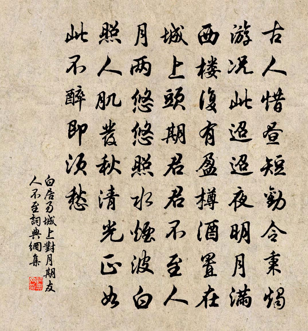 古人惜晝短,勸令秉燭游。況此迢迢夜,明月滿西樓。
