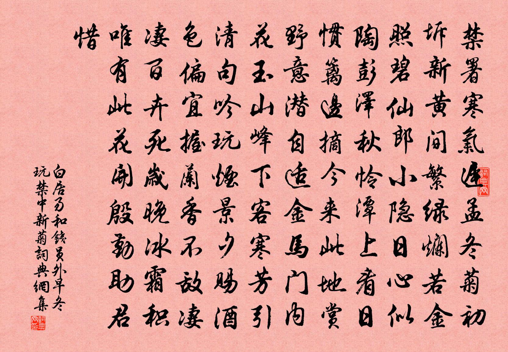 白居易和錢員外早冬玩禁中新菊書法欣賞