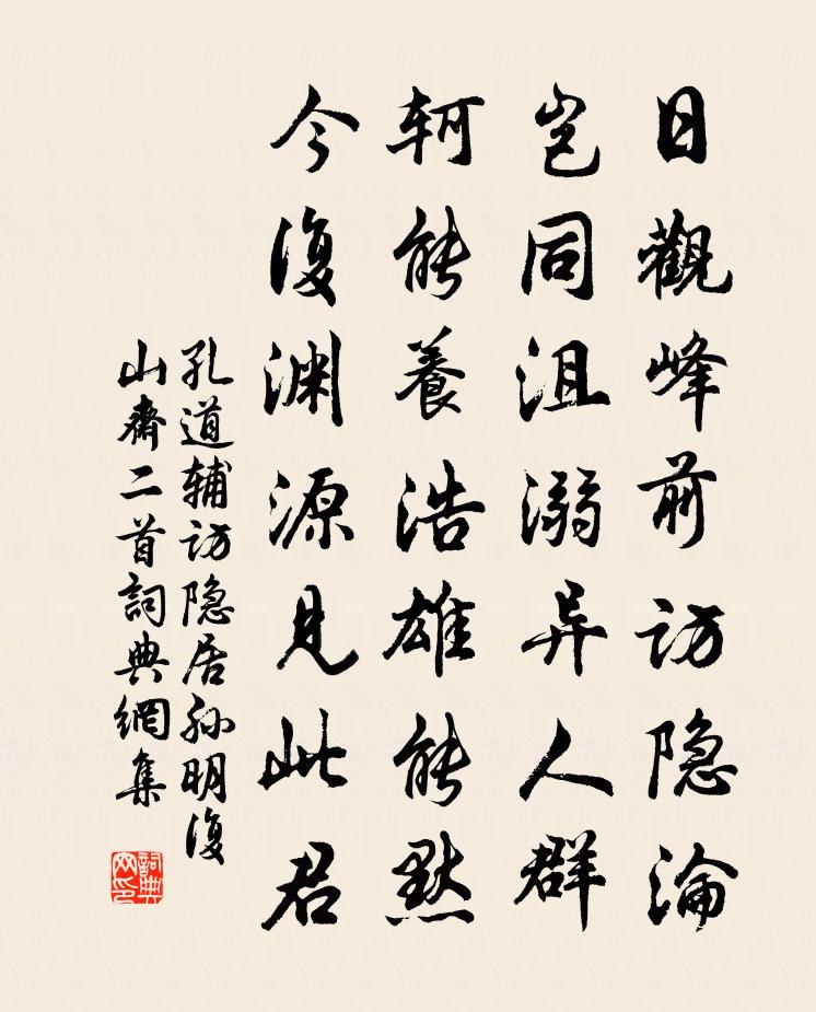 詩詞名句歷史字典書法欣賞書法字典國語詞典說文解字康熙字典古漢語字典標 題 作 者 詩 句 訪隱居孫明復山齋二首作者:孔道輔 朝代:宋代訪隱居孫明復山齋二首原文日觀峰前訪隱淪,豈同沮溺異人群。軻能養浩雄能默,今復淵源見此君。詩詞問答問:訪隱居孫明復山齋二首的作者是誰?答:孔道輔問:訪隱居孫明復山齋二首寫於哪個朝代?答:宋代孔道輔訪隱居孫明復山齋二首書法欣賞訪隱居孫明復山齋二首書法作品詩詞推薦南鄉子(慶前岡周氏旌表)辛棄疾〔宋代〕無處著春光。天上飛來詔十行。父老歡呼童稚舞,前江。千載周家孝義鄉。草木盡芬芳。更覺溪頭水也香。我道烏題金碧山水卷錢選〔宋代〕江南北苑出奇才,千里溪出筆底回。不管六朝興廢事,一樽且向畫圖開。詠蜀客石琴枕呂溫〔唐代〕可憐他山石,幾度負貞堅。推遷強為用,雕斫傷自然。文含巴江浪,色起青城煙。更聞余玉聲,時入朱絲弦。皇帝感詞盧綸〔唐代〕提劍風雷動,垂衣日月明。禁花呈瑞色,國老見星精。發棹魚先躍,窺巢鳥不驚。山呼一萬歲,直入九重城。天香吊唐俞梅堯臣〔宋代〕通閨年最少,才俊罕能雙。鵬去塵棲室,魂歸霧起窗。慈親留漢水,愛妾返荊江。一稚才能語,煢然寄遠邦。妾薄命常理〔唐代〕十五玉童色,雙蛾青彎彎。鳥銜櫻桃花,此時刺繡閒。嬌小恣所愛,誤人金指環。艷花句引落,滅燭屏風關。妾怕與李衢州嶧四首趙蕃〔宋代〕洪井登龍記昔年,只今太末又行纏。餘波所及蓋多矣,一夜水高溪有船。寄白學士張籍〔唐代〕自掌天書見客稀,縱因休沐鎖雙扉。幾回扶病欲相訪,知向禁中歸未歸。道傍叢祠榜雲老人廟張鎡〔宋代〕里俗崇祠想報功,袍鞾包裹雪髯翁。休嗟事始無人識,縱有豐碑亦是空。山園小梅得疏影橫斜水清淺暗香浮動月黃十四趙時韶〔宋代〕一權倚竹偏宜雪,半樹歌檐轉怕風。客意不平花又拗,和愁掛在夕陽中。生涯詩盛世忠〔宋代〕壯歲欲飛騰。生涯亦可矜。一千八日戰,三十九年僧。硯枕秋風夢,書燈夜雨澄。儒生貴知命,飲水曲吾肱。岐亭五首蘇軾〔宋代〕我哀籃中蛤,閉口護殘汁。又哀網中魚,開口吐微濕。刳腸彼交病,過分我何得。相逢未寒溫,相勸此最急。不見甘露歌王安石〔宋代〕折得一枝香在手。人間應未有。疑是經春雪未消。今日是何朝。觀明州圖王安石〔宋代〕明州城郭畫中傳,尚記西亭一艤船。投老心情非復昔,當時山水故依然。右吳江陸游〔宋代〕曉聽楓橋鍾,暮泊松江月。斯人亦可人,淡墨寫愁絕。一落索 蔣園和李朝奉舒亶〔宋代〕正是看花天氣。為春一醉。醉來卻不帶花歸,誚不解、看花意。試問此花明媚。將花誰比。只應花好似年年,花不西庵餞春鄧肅〔宋代〕傍水禪房半掩門,乍晴簾幕採黃昏。風驅紅雨春何在,酒入香肌玉自溫。勿笑飢腸充筍蕨,須將醉眼蓋乾坤。杖頭詠司馬彪續漢志李世民〔唐代〕二儀初創象,三才乃分位。非惟樹司牧,固亦垂文字。綿代更膺期,芳圖無輟記。炎漢承君道,英謨纂神器。潛龍盧姬篇崔顥〔唐代〕盧姬少小魏王家,綠鬢紅唇桃李花。魏王綺樓十二重,水晶簾箔繡芙蓉。白玉欄桿金作柱,樓上朝朝學歌舞。前堂程森甫見示同伯幾游雪矼觀海棠之作伯幾賞與汪炎昶〔宋代〕風中霧屢拂銀灣,滿貯煙霞洞府寬。物外山供情宛轉,吟邊海鑲思漲漫。岫雲影壓龍湫暝,潤瀑聲吹鶴夢寒。喚醒名句推薦還怕掩、深院梨花,又作故人清淚。吳文英《無悶·催雪》 鄂王墳上草離離,秋日荒涼石獸危。趙孟頫《岳鄂王墓》 重岡已隔紅塵斷,村落更年豐。元好問《人月圓·重岡已隔紅塵斷》 誰念遷客歸來,老大傷名節。李綱《六么令·次韻和賀方回金陵懷古鄱陽席上作》 病從口入,禍從口出。李昉、李穆、徐鉉《太平御覽·人事部·卷八》 仁遠乎哉?我欲仁,斯仁至矣。孔子弟子《論語·述而篇》 往事思量一晌空,飛絮無情,依舊煙籠。夏完淳《一剪梅·詠柳》 夢回人遠許多愁,只在梨花風雨處。辛棄疾《玉樓春·風前欲勸春光住》 離恨遠縈楊柳,夢魂長繞梨花。劉迎《烏夜啼·離恨遠縈楊柳》 離心何以贈,自有玉壺冰。駱賓王《送別》