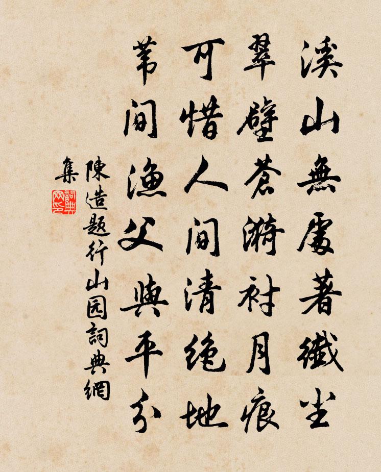 詩詞名句歷史字典書法欣賞書法字典國語詞典說文解字康熙字典古漢語字典標 題 作 者 詩 句 題行山園作者:陳造 朝代:宋代題行山園原文溪山無處著纖塵,翠壁蒼漪襯月痕。可惜人間清絕地,葦間漁父與平分。詩詞問答問:題行山園的作者是誰?答:陳造問:題行山園寫於哪個朝代?答:宋代陳造題行山園書法欣賞題行山園書法作品詩詞推薦晚至鄉亭鄭德玄〔唐代〕長亭日已暮,駐馬暫盤桓。山川杳不極,徒侶默相看。雲夕荊台暗,風秋郢路寒。客心一如此,誰復采芳蘭。次韻弟茝懷歸陳著〔宋代〕同聲相應甚塤箎,雨夜聯床只有詩。斷港漫生歸棹興,流年空感浴蘭時。良思難與世情說,衰病聊將僧定移。須信丁卯除夕寓瀘南獨坐舟中有感去歲此夕趙蕃〔宋代〕米倉山寨雪連雲,不見椒盤見賊塵。今日江城聞爆竹,莫嫌杯酒不沾唇。臨江仙蔡伸〔宋代〕昨夜中秋今夕望,十分桂影團圓。玉人相對綠尊前。素娥有恨,應是妒蟬娟。人靜小庭風露冷,歌聲特地清圓。醉答黃充陳師道〔宋代〕我無置錐君立壁,舂黍作麋甘勝蜜。綈袍不受故人意,藥餌肯為兒輩屈。割白鷺股何足難,食盧鶿肉未為失。暮年墨竹梅曾幾〔宋代〕的皪江梅竹外枝,能將幻法轉生機。憑君莫作風垂綠,便恐飄零學雪飛。祖逖文天祥〔宋代〕平生祖豫州,白首起大事。東門長嘯兒,為遜一頭地。何哉戴若思,中道奮螳臂。豪傑事垂成,今古為短氣。鶯陸九淵〔宋代〕巧囀風台急管,清逾石澗回溪。好去枝枝驚夢,無人心到遼西。題元八溪居白居易〔唐代〕溪嵐漠漠樹重重,水檻山窗次第逢。晚葉尚開紅躑躅,秋芳初結白芙蓉。聲來枕上千年鶴,影落杯中五老峰。更愧送趙僉判美任與輻二首姚勉〔宋代〕底事三年里,才膺兩薦書。邦侯辨寶晚,使者設羅疎。知己初何計,能官自有餘。漢庭今欠者,子政與朱虛。題儀真天寧寺趙善括〔宋代〕短棹客千里,炷香人小留。禪房深寂寂,世事易悠悠。去此兩槐夏,驚予雙鬢秋。鍾魚發新響,作意為重遊。頌古一百則釋正覺〔宋代〕一喚回頭識我不,依俙蘿月又成鉤。千金之子才流落,漠漠塗窮有許愁。玉關寄長安李主簿岑參〔唐代〕東去長安萬里餘,故人何惜一行書。玉關西望堪腸斷,況復明朝是歲除。複次前韻四首呈二袁君並王君申祿方回〔宋代〕老予尚行役,旅棹泛江雲。足跡更南北,時光幾至分。百年丁字誤,萬事卯杯醺。先漢功臣輩,惟宜戇少文。和曾令綽韓維〔宋代〕臥病河橋與死濱,還家重喜見芳春。輔藩行釋綏安重,仁城欣聞締構新。危堞遍臨雙遠岫,平湖不受一微塵。知君逍遙詠宋太宗〔宋代〕逍遙我詠杳冥中,萬物齊歸各異同。曉解精微無所著,先從含識踐真空。希夷自變剛柔理,述作縱橫道不窮。剖判天華寺前遇縣令過避之入寺僧皆晝睡陸游〔宋代〕墮絮飛花掠釣船,天華寺下賞春妍。縣多官府鳴騶過,僧少叢林避客眠。出網長魚猶鱍鱍,爭泥新燕欲翩翩。典衣旅中書懷王炎〔宋代〕燕子未歸寒已退,海棠半落雨初晴。他鄉異縣見春色,遠水平蕪關客情。道路不來黃犬信,煙波深負白鷗盟。數奇戊申年七夕五絕劉筠〔宋代〕琥車芝駕儼清秋,微雨侵宵助涕流。人世莫嗟離恨苦,卻應天上更悠悠。再和宿囊山三首劉克莊〔宋代〕未能蔥嶺從初祖,也不蓬萊訪洞賓。煎鳳髓須還此老,執牛耳更屬何人。笈儲丹藥堤防病,案設圖書粉飾貧。老覺名句推薦郭門臨渡頭,村樹連谿口。王維《新晴野望》 失之毫釐,差以千里。班固《漢書·傳·東方朔傳》 漢兵已略地,四方楚歌聲。虞姬《和項王歌》 城門失火,殃及池魚。司馬光《資治通鑑·梁紀·梁紀十六》 故人溪上,掛愁無奈,煙梢月樹。史達祖《留春令·詠梅花》 寧可食無肉,不可居無竹。蘇軾《於潛僧綠筠軒》 元方難為兄,季方難為弟。劉義慶《世說新語·德行》 內外相應也,言行相稱韓非及後人《韓非子·解老》 但使龍城飛將在,不教胡馬度陰山。王昌齡《出塞二首》 社下燒錢鼓似雷,日斜扶得醉翁回。范成大《春日田園雜興》