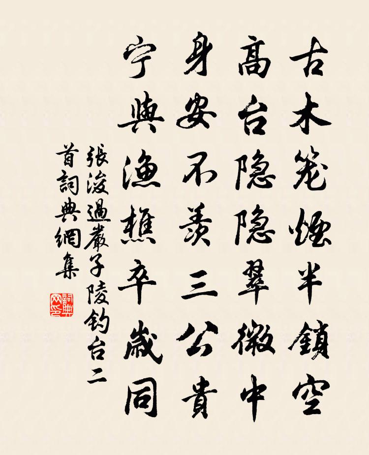 詩詞名句歷史字典書法欣賞書法字典國語詞典說文解字康熙字典古漢語字典標 題 作 者 詩 句 過嚴子陵釣台二首作者:張浚 朝代:宋代過嚴子陵釣台二首原文古木籠煙半鎖空,高台隱隱翠微中。身安不羨三公貴,寧與漁樵卒歲同。詩詞問答問:過嚴子陵釣台二首的作者是誰?答:張浚問:過嚴子陵釣台二首寫於哪個朝代?答:宋代張浚過嚴子陵釣台二首書法欣賞過嚴子陵釣台二首書法作品詩詞推薦詠史羅隱〔唐代〕蠹簡遺編試一尋,寂寥前事似如今。徐陵筆硯珊瑚架,趙勝賓朋玳瑁簪。未必片言資國計,只應邪說動人心。九原縣圃十絕和朱待制薛抗〔宋代〕二亭歸然立,紫薇為題顏。朝暉射銀鉤,偉觀壓海山。雁去仇遠〔宋代〕離群野雁在中庭,馴養經年羽翼成。因為哀鳴殊可念,豈知飛去太無情。天陰月黑多機穽,歲晚山空少弟兄。願爾爇心香王哲〔元代〕這個王風。自小胎風。大來後、變做心風。遍行遊歷,正是狂風。每閒閒處,詩曲作,似長風。謁馬儒風。說與仁絕句三首余知閣〔宋代〕幾年魂繞浙城西,十里荷花漾錦陂。踏遍兩峰三竺路,又隨青嶂入雲棲。金陵冬夜林古度〔清代〕老來貧困實堪嗟,寒氣偏歸我一家。無被夜眠牽破絮,渾如孤鶴入蘆花。擬行路難鮑照〔南北朝〕諸君莫嘆貧。富貴不由人。丈夫四十強而仕。余當二十弱冠辰。莫言草木委冬雪。會應蘇息遇陽春。對酒敘長篇。西齋秋感二十首方回〔宋代〕鍾動市聲絕,夜禁嚴鞭笞。獨許浮屠氏,饒唄恣□□。□□有病死,信巫不信醫。既死又信佛,佛事殊不貲。兒女重陽舟次高郵李新〔宋代〕途遠舟程未到家,此身誰念客天涯。東籬乍破黃金蕊,舊鬢新添白雪牙。蓴美不須添醬豉,蟹肥無復羨魚蝦。白衣代白髮答王安石〔宋代〕從衰得白自天機,未怪長青與願違。看取春條隨日長,會須秋葉向人稀。郊廟歌辭。周郊祀樂章。福順樂佚名〔唐代〕昊天成命,邦國盛儀。多士齊列,六龍載馳。壇升泰一,樂奏鹹池。高明祚德,永致昌期。京居春日遣懷賀鑄〔宋代〕青梅小葉柳長條,相對春風各動搖。物色依依如有待,人情忽忽自無聊。五陵劍俠知誰健,三徑車工不我招。好去寄題職方周員外廬山笑台宋庠〔宋代〕周郎有舊隱,遠在南山陲。一笑偶為樂,九層遂成基。旁連醉令石,卻眺社僧碑。地遠雲物秀,岩深松桂滋。當時蝶戀花楊 * 〔宋代〕百卉千花都綻後。浥露依風,翠影籠芳牖。杏臉桃腮勻著酒。青紅相映如攜手。一段簾絲風約透。妝點亭台,表里長思仙 贈任仙馬鈺〔元代〕左擎蒼。右牽黃。昔日存心飛走忙。如今萬事忘。飲瓊漿。宴明堂。瑞氣祥光入絳房。無中得弄璋。淮邊柳釋斯植〔宋代〕寂寞淮邊柳,春來自舞腰。恨生爭戰地,不得近官橋。宣公泉歌葛紹體〔宋代〕幾年廢井城東衙,甃石缺裂洿淖多,奈此宣公初鑿何。宣公浩氣輩孟軻,論諫仁義永不磨,炳炳丹衷史所夸。當時答陸務觀佛祖道院之戲楊萬里〔宋代〕老禪分得破叢林,薄供微齋也不曾。道院敕差權院事,筠庵身是住庵僧。人間赤日方如火,松下清風獨似冰。別有紹興祀岳鎮海瀆四十三首佚名〔宋代〕興天齊極,伊嵩之高。赤發效異,神休孔昭。飭我祀事,實俎鶯鶯。以侑旨酒,其聲有俶。病起見瓶中蠟梅偶書張鎡〔宋代〕南湖地勝無凡木,只說寒梅夸不足。四般風韻兩般高,黃如蜂蠟白如玉。余品緗紅亦總嘉,早開最喜黃白花。去年名句推薦下馬登鄴城,城空復何見。岑參《登古鄴城》 上有愁思婦,悲嘆有餘哀。曹植《明月上高樓》 灞原風雨定,晚見雁行頻。馬戴《灞上秋居》 人之聰明,多失於浮炫脫脫《金史·列傳·卷三十三》 富觀其所與,貧觀其所取,達觀其所好,窮觀其所為王通《中說·卷二·天地篇》 玉勒雕鞍遊冶處,樓高不見章台路。歐陽修《蝶戀花·庭院深深深幾許》 風吹古木晴天雨,月照平沙夏夜霜。白居易《江樓夕望招客》 記得別伊時,桃花柳萬絲。納蘭性德《菩薩蠻·新寒中酒敲窗雨》 凡戰,所謂攻者,知彼者也。佚名《百戰奇略·第四卷·攻戰》 夫兵權者,是三軍之司命,主將之威勢。諸葛亮《將苑·卷一·兵權》