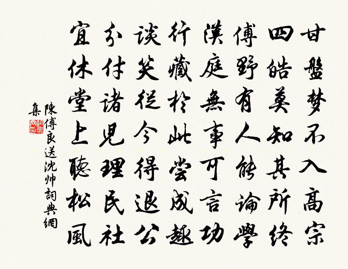 詩詞名句歷史字典書法欣賞書法字典國語詞典說文解字康熙字典古漢語字典標 題 作 者 詩 句 送沈帥作者:陳傅良 朝代:宋代送沈帥原文甘盤夢不入高宗,四皓莫知其所終。傅野有人能論學,漢庭無事可言功。行藏於此嘗成趣,談笑從今得退公。分付諸兒理民社,宜休堂上聽松風。詩詞問答問:送沈帥的作者是誰?答:陳傅良問:送沈帥寫於哪個朝代?答:宋代陳傅良送沈帥書法欣賞送沈帥書法作品詩詞推薦別蔡參軍庾抱〔唐代〕人世多飄忽,溝水易東西。今日歡娛盡,何年風月同。悲生萬里外,恨起一杯中。性靈如未失,南北有徵鴻。示湯弟子張繼先〔宋代〕子欲濟民非為己,我貪修道不憂貧。直須勉強方成業,只恐因循易老人。純白賈似道〔宋代〕白頭白項白絲攢,翅似鋪銀肉似霜。烏牙黑臉肚如粉,此物正是促織王。西樓月 勉道友馬鈺〔元代〕閒行閒坐閒眠。養丹田。常把東西南北,合和煎。處玄妙。波中燎。用抽添。五彩霞光覆載,一胎仙。題曹溪祖師堂貫休〔唐代〕皎潔曹溪月,嵯峨七寶林。空傳智藥記,豈見祖禪心。信衣非苧麻,白雲無知音。大哉雙峰溪,萬古青沈沈。維摩像唐楊惠之塑在天柱寺蘇軾〔宋代〕昔者子輿病且死,其友子祀往問之。跰?鮮鑒井自嘆息,造物將安以我為。今觀古塑維摩像,病骨磊嵬如枯龜。乃望蓬鵲山詩洪皓〔宋代〕內邱應有越人蹤,血食依山近邑中。前代醫流兼咒法,上池水飲獲神功。假真昔歡多盧異,生死今慚少虢同。秦技閨情李商隱〔唐代〕紅露花房白蜜脾,黃蜂紫蝶兩參差。春窗一覺風流夢,卻是同袍不得知。贈李溟秀才棲白〔唐代〕南居古廟深,高樹宿山禽。明月上清漢,騷人動楚吟。數篇正始韻,一片補亡心。孤悄欺何謝,雲波不可尋。新春有感寄常夷甫歐陽修〔宋代〕餘生本羇孤,自少已非壯。今而老且病,何用苦惆悵。誤蒙三聖知,貪得過其量。恩私未知報,心志已凋喪。軒裳張仲通追賦洛中雜題和嘗歷覽者六章其五大字梅堯臣〔宋代〕庭中兩大樹,池上千竿竹。竹有紅淚班,樹無眾鳥宿。昔日白傅歸,愛吟裴令續。間流水西園,翻然入他族。感歡時事王邁〔宋代〕聞說永平全盛時,如雲冠蓋會京師。新來逐客令嚴甚,肉食滿朝無李斯。寄清越上人(一作寄山僧)張喬〔唐代〕大道本來無所染,白雲那得有心期。遠公獨刻蓮花漏,猶向空山禮六時。滿庭芳長筌子〔元代〕大覺光明,不須外覓,人人各有如來。浮生迷昧,販骨走千回。鑿透靈源法海,禪河漲、風浪崔巍。泥牛吼,威音夏日宋伯仁〔宋代〕數點沙鷗掠野塘,雨聲初歇水微茫。橋邊十里荷花盪,輸與漁人臥晚涼。句劉巨〔宋代〕漁人忽驚起,雪片逐風斜。黃梅東禪寺王之道〔宋代〕南晉今黃梅,東禪舊青蓮。曹溪竟何許,龍朔知幾年。我聞二祖師,屬袂茲褊{左衤右遷}。片言道有契,千古衣明堂觀禮雜詠十三首車賀宿太廟王同祖〔宋代〕金甲重矛兩內臣,階前對立氣英英。巡更場內知誰問,聽得傳呼宰相名。湖州歌九十八首 其六十八汪元量〔宋代〕滿朝宰相出通州,迎接三宮晏不休。六十里天圍錦帳,素車白馬月中游。八聲甘州 寄參寥子蘇軾〔宋代〕有情風、萬里卷潮來,無情送潮歸。問錢塘江上,西興浦口,幾度斜暉。不用思量今古,俯仰昔人非。誰似東坡老名句推薦昨夜吳中雪,子猷佳興發。李白《答王十二寒夜獨酌有懷》 中山孺子倚新妝,鄭女燕姬獨擅場。李夢陽《汴京元夕》 江南幾度梅花發,人在天涯鬢已斑。劉著《鷓鴣天·雪照山城玉指寒》 鴛鴦俱是白頭時,江南渭北三千里。賀鑄《惜余春·急雨收春》 獨有宦遊人,偏驚物候新。杜審言《和晉陵陸丞早春遊望》 自伐者無功;自矜者不長。老子《老子·道經·第二十四章》 泛樓船兮濟汾河,橫中流兮揚素波。劉徹《秋風辭》 歷覽前賢國與家,成由勤儉破由奢。李商隱《詠史二首·其二》 君子以成德為行,日可見之行也。佚名《易傳·文言傳·乾文言》 柏府樓台銜倒影,茅茨松竹瀉寒聲。王守仁《次韻陸僉憲元日春晴》