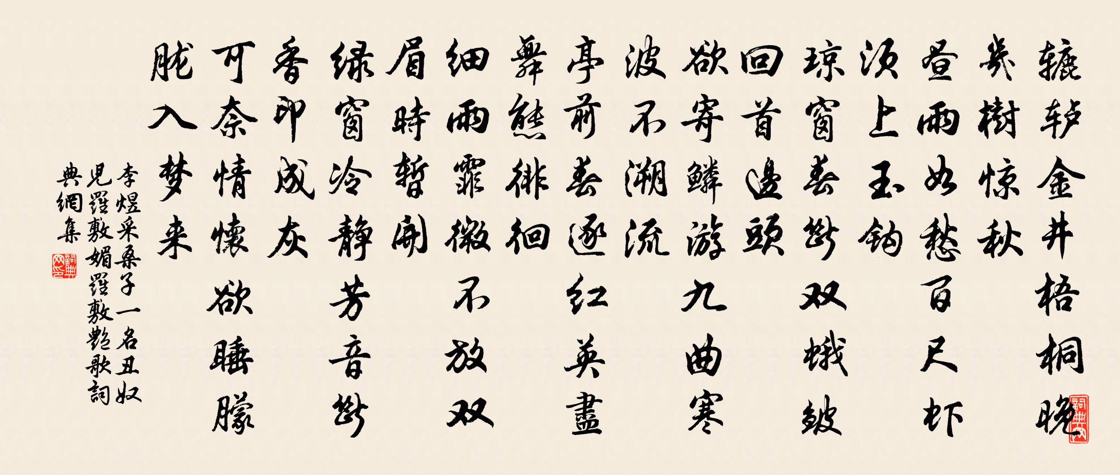 轆轤金井梧桐晚,幾樹驚秋。晝雨如愁,百尺蝦須上玉鉤。