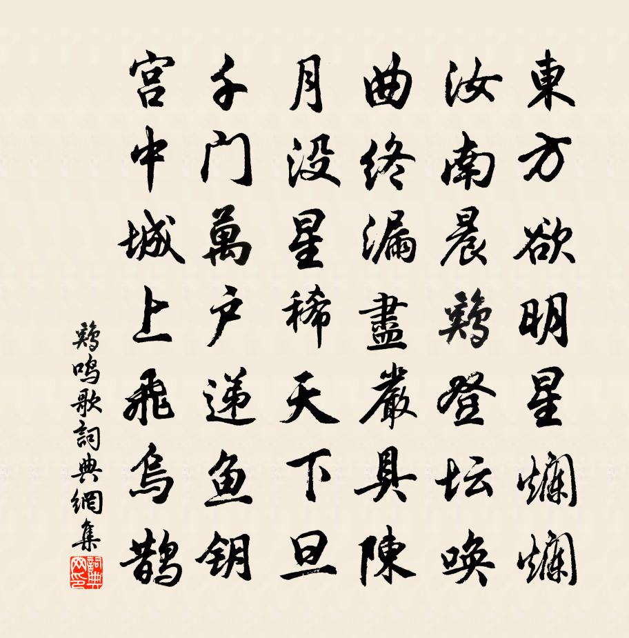 “雞鳴”,據說是一種楚歌,起源於漢代。《樂府廣題》曰:“漢有雞鳴衛士,主雞唱。宮外舊儀,宮中與台並不得畜雞。晝漏盡,夜漏起,中黃門持五夜,甲夜畢傳乙,乙夜畢傳丙,丙夜畢傳丁,丁夜畢傳戊,戊夜,是為五更。未明三刻雞鳴,衛士起唱。”《漢書》曰:“高祖圍項羽垓下,羽是夜聞漢軍四面皆楚歌。”應劭曰:“楚歌者,雞鳴歌也。”