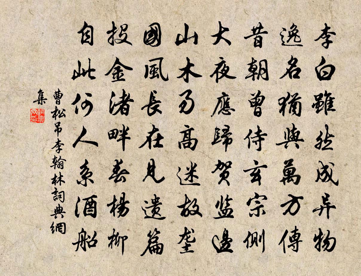 詩詞名句歷史字典書法欣賞書法字典國語詞典說文解字康熙字典古漢語字典標 題 作 者 詩 句 吊李翰林作者:曹松 朝代:唐代吊李翰林原文李白雖然成異物,逸名猶與萬方傳。昔朝曾侍玄宗側,大夜應歸賀監邊。山木易高迷故壟,國風長在見遺篇。投金渚畔春楊柳,自此何人系酒船。詩詞問答問:吊李翰林的作者是誰?答:曹松問:吊李翰林寫於哪個朝代?答:唐代問:吊李翰林是什麼體裁?答:七律曹松吊李翰林書法欣賞吊李翰林書法作品注釋全唐詩:卷717-58詩詞推薦嘉禾百詠邦藥王龕張堯同〔宋代〕父老懷遺愛,誰傳肘後方。藥囊同日葬,空憶紫元香。偈二首釋覺〔宋代〕仰之彌高,不隔絲毫。要津把斷,佛祖難逃。鑽之彌堅,真體自然。鳥啼華笑,在碧岩前。瞻之在前,非正非偏。自仙潭治歸舟呈王鷗盟楊冠卿〔宋代〕扁舟夜泊蓼花叢,曉掛風帆苕水東。擬辦蓋頭茅一把,十年湖海浪飄蓬。蕭山縣下遇雨二首周弼〔宋代〕悠悠心厭出江沙,過得丘亭轉落斜。村店自知行客倦,勸嘗新酒賣甜瓜。鷓鴣天 晉祠石刻二闕姜彧〔元代〕滿谷蕭蕭落葉黃。繡衣總馬駐平崗。一川野色迷秋色,四面山光接水光。花作陣,酒為漿。晉祠風物正重陽。殷勒次韻子由舍人先生追讀邇英絕句四首張耒〔宋代〕天寒書殿曉班清,氣爽仙盤瑞露零。講罷群公佩聲散,一竿宮日轉槐庭。寄江居耿處士齊己〔唐代〕野癖雖相似,生涯即不同。紅霞禪石上,明月釣船中。醉倒蘆花白,吟緣蓼岸紅。相思何以寄,吾道本空空。包家山看桃花胡仲弓〔宋代〕春風吹到小桃根,便覺仙凡有路分。紫氣直衝文德殿,彩霞隔斷武陵源。錦官城向山頭出,玉蹕聲從天上聞。一見題金華王山甫吟稿劉克莊〔宋代〕載贄來相覓,挑燈讀失驚。尊公王逸少,外祖鄭康成。子壯堪傳嫡,吾衰浪得名。江湖有公論,不必問鍾嶸。醉蓬萊(侍宴德壽宮應制賦假山)曾覿〔宋代〕向逍遙物外,造化工夫,做成幽致。杳靄壺天,映滿空蒼翠。聳秀峰巒,媚春花木,對玉階金砌。方丈瀛洲,非煙送李殿省赴任常熟黃鑒〔宋代〕吳山紫翠倚晴空,潘令風流向此中。雨飽公田方稼稔,春生香徑雜葩紅。彩艫銜尾凌波駛,頳鯉駢頭薦俎豐。玉季和原甫立春日拜賜歸不赴鄰幾會韓維〔宋代〕上閣群公拜賜歸,九衢春色遍熙熙。後房絲竹爭相命,窮巷簞瓢亦我期。濁酒滿樽聊混俗,嘉蔬登俎在隨時。劉郎百日假滿白居易〔唐代〕心中久有歸田計,身上都無濟世才。長告初從百日滿,故鄉元約一年回。馬辭轅下頭高舉,鶴出籠中翅大開。但拂鏡湖女陸游〔宋代〕湖中居人事舟橶,家家以舟作生業。女兒妝面花樣紅,小繖翻翻亂荷葉。日暮歸來月色新,菱歌縹緲泛煙津。到家次韻和吳侍郎再葺東亭兼懷晁公舊隱宋庠〔宋代〕地占心齋舊,天扶藥喜身。高懷聊避寵,幽境更隨人。樹密添新籟,叢香續故春。婆娑榮路友,偏倚此相親。即事呈閎中順之二年兄二首晁補之〔宋代〕吾兩同年俱可人,平生一為知己伸。何由利口似虎圈,應不拭吐煩龍巾。卜鄰只約二三子,看山擬分千百身。綠鬢項籍連文鳳〔宋代〕蓋世英雄冠古今,干戈未定日相尋。帳中一夕悲歌處,霸氣難降兒女心。賀新郎佚名〔宋代〕十月臨皋暮。客從予、黃泥之坂,凜然霜露。相與行歌而言曰,月白風清如許。念無酒、歸謀諸婦。婦曰斗酒藏之再用韻十首楊公遠〔宋代〕繞檐森竹木,環列類排衙。供客何消酒,論文只藉茶。禽聲喧晝永,日影印窗斜。更有清虛事,憑欄看藕花。西齋睡起李新〔宋代〕避雨燕兒晴又去,趁衙蜂子晚還歸。西軒一枕無人喚,零落桃花繞夢飛。名句推薦和羞走,倚門回首,卻把青梅嗅。李清照《點絳唇·蹴罷鞦韆》 酌酒與君君自寬,人情翻覆似波瀾。王維《酌酒與裴迪》 驟雨過,珍珠亂撒,打遍新荷。元好問《驟雨打新荷》 又酒趁哀弦,燈照離席。梨花榆火催寒食。周邦彥《蘭陵王·柳》 玉漏銀壺且莫催,鐵關金鎖徹明開。崔液《上元夜六首·其一》 雪紛紛,掩重門,不由人不斷魂,瘦損江梅韻。關漢卿《大德歌·冬》 瀑布風前千尺影,疑瀉銀河一派。朱栴《念奴嬌·雪霽夜月中登樓望賀蘭山作》 惻隱之心,仁之端也;羞惡之心,義之端也;辭讓之心,禮之端也;是非之心,智之端也。孟子《孟子·公孫丑章句上·第六節》 無肉令人瘦,無竹令人俗。蘇軾《於潛僧綠筠軒》 草木搖殺氣,星辰無光彩。李白《經亂離後天恩流夜郎憶舊遊書懷贈江夏韋太守良宰》