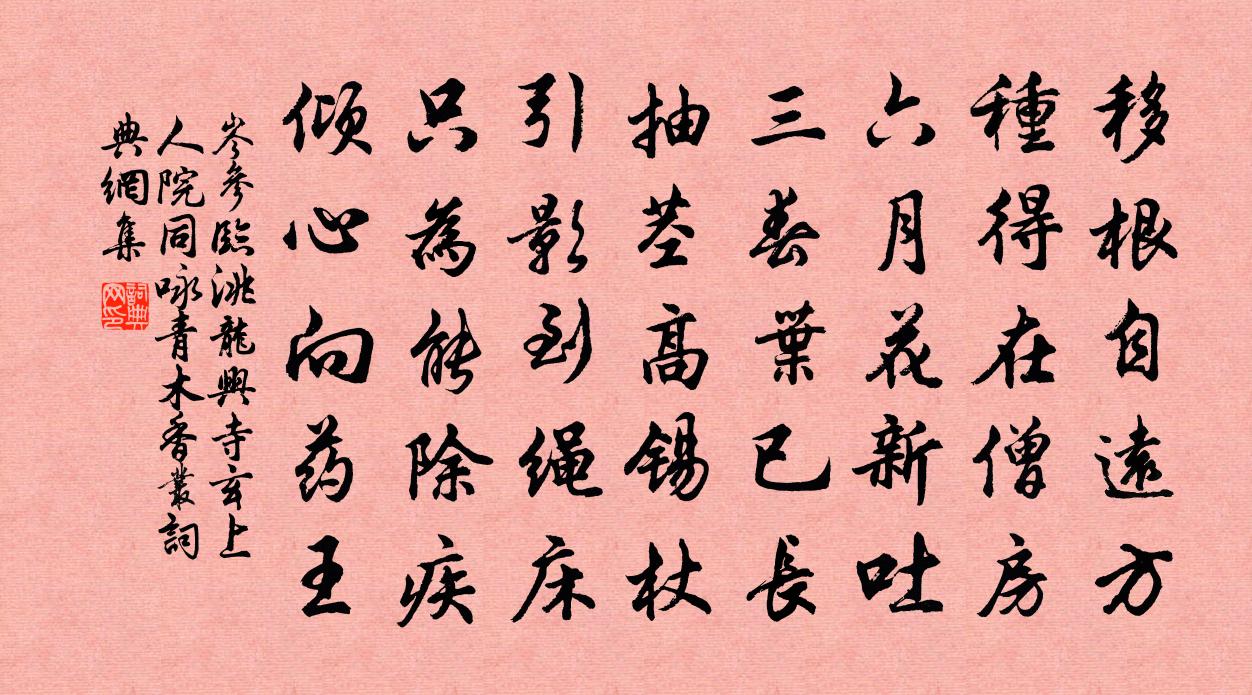 移根自遠方,種得在僧房。六月花新吐,三春葉已長。