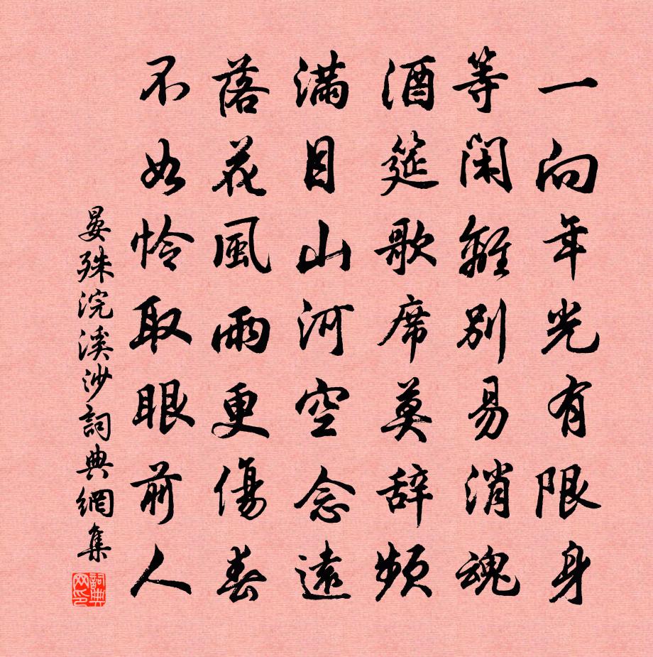 - 花不語,水空流。年年拚得為花愁。晏幾道《鷓鴣天·守得蓮開結伴遊》