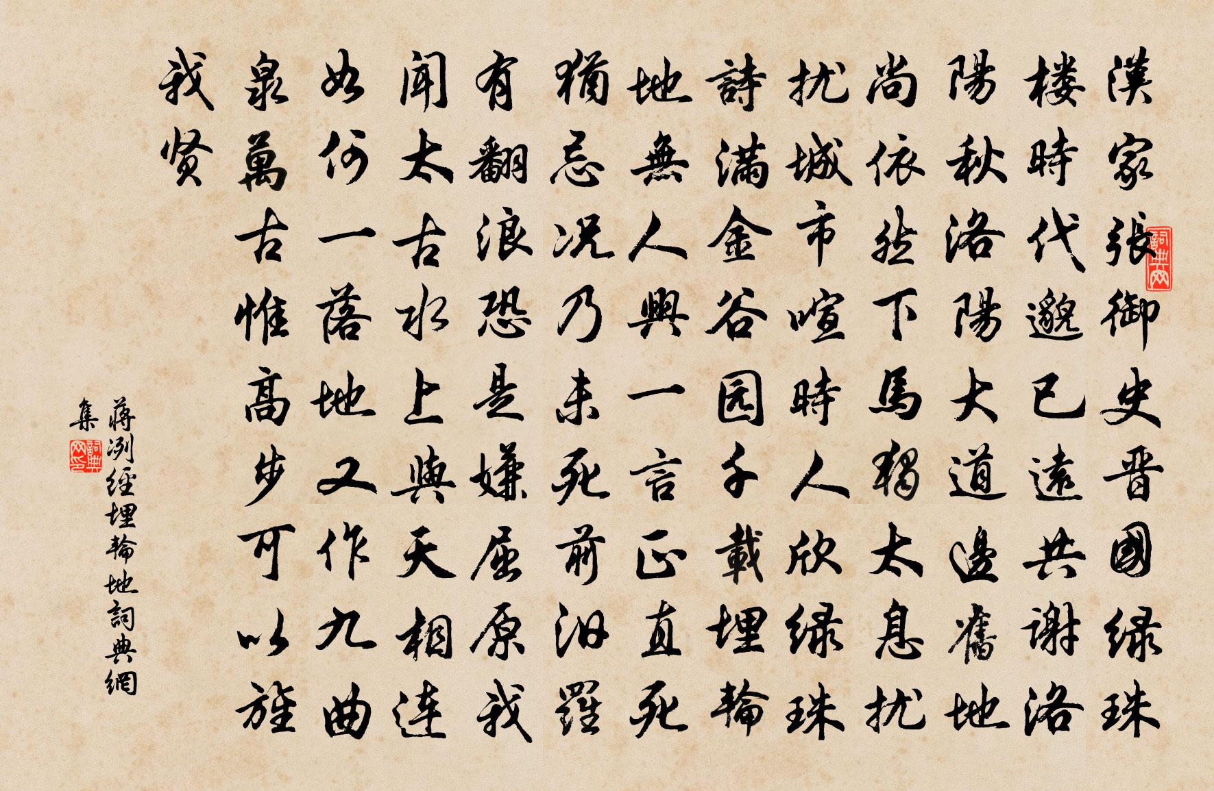 詩詞名句歷史字典書法欣賞書法字典國語詞典說文解字康熙字典古漢語字典標 題 作 者 詩 句 經埋輪地作者:蔣冽 朝代:唐代經埋輪地原文漢家張御史,晉國綠珠樓。時代邈已遠,共謝洛陽秋。洛陽大道邊,舊地尚依然。下馬獨太息,擾擾城市喧。時人欣綠珠,詩滿金谷園。千載埋輪地,無人興一言。正直死猶忌,況乃未死前。汨羅有翻浪,恐是嫌屈原。我聞太古水,上與天相連。如何一落地,又作九曲泉。萬古惟高步,可以旌我賢。詩詞問答問:經埋輪地的作者是誰?答:蔣冽問:經埋輪地寫於哪個朝代?答:唐代問:經埋輪地是什麼體裁?答:五古蔣冽經埋輪地書法欣賞經埋輪地書法作品注釋全唐詩:卷258_13詩詞推薦次韻信表弟喭梅之作李彌遜〔宋代〕萬點隨風更是愁,從教停雪破除休。蓬萊花使漫青眼,姑射神人新白頭。待價瓊瑰聊可擬,聞風桃李亦增羞。看殘省試觀慶雲圖詩柳宗元〔唐代〕設色既成象,卿雲示國都。九天開秘祉,百辟贊嘉謨。抱日依龍袞,非煙近御爐。高標連汗漫,迥望接虛無。裂素邊公式周表卿侍郎同年會王之道〔宋代〕侍郎修好燕群公,雁塔題名二紀同。談笑靜移楊柳日,杯盤清乏芰荷風。鵬摶競祝三旌貴,鯨吸相期百榼空。此會和李適答宋十一入崖口五渡見贈徐彥伯〔唐代〕聞有獨往客,拂衣捐世心。結欣薄枉渚,撰念縈舊林。經亘去崖合,冥綿歸壑深。琪樹環碧彩,金潭生翠陰。沿洄劉益之判院挽章姜特立〔宋代〕傾蓋如今五十春,中間還得綴華姻。單于萬里同哀使,馬援一鄉稱善人。告老已能官及子,頒恩更喜爵榮親。佳城送人紙筆王邁〔宋代〕阿連詩語已通神,玉版霜毫不厭珍,老我簿書安用此,自應回施與青春。傷春歐陽修〔宋代〕蕙蘭蹊徑失芳期,風雨春深怯減衣。卷箔高樓驚燕入,揮弦遠目送鴻歸。蜂催釀蜜愁花盡,絮撲暄條◇雪飛。欲識看金陵圖齊己〔唐代〕六朝圖畫戰爭多,最是陳宮計數訛。若愛蒼生似歌舞,隋皇自合恥干戈。胡登仕送花方岳〔宋代〕紅酣紫膩不勝春,肯上先生墊角巾。芳草醉眠今老矣,惜花心在怕花嗔。杜鵑問答二首劉克莊〔宋代〕雲安萬里一禽微,翅短安能遠奮飛。帝放還山君有福,虜猶戌蜀我安歸。次韻和中遠以予真州江上遭巨寇脫身感事作晁說之〔宋代〕一世高梧丹葉翻,男昏女嫁失前村。但聞狼虎厭人肉,不見酒漿招鬼魂。久分彼天難叩問,未甘此道謾追原。江心詠史上廉頗藺相如陳普〔宋代〕長年霜骨白皚皚,廉藺羞顏似濕灰。白起殺心如未謝,二家隨璧獻章台。書幸陸游〔宋代〕我身匪兕虎,豈是曠野物?生非洪水時,胡為在巢窟!向來三入朝,薄命不黔突,未嘗識許史,況敢交平勃。滄波南侍者還莆陽釋崇岳〔宋代〕若將此語定宗綱,任是靈山未廝當。大地撮來無粟粒,令人翻憶老曾郎。偈頌一百三十六首釋惟一〔宋代〕晝也惺惺,夜也惺惺。既不掉舉,亦不昏沉。何須求白玉,只此是黃金。詠史上審配沮授陳普〔宋代〕袁曹相與隔王路,四世三公恩海深。當時惟有管寧是,謾對黃河嘆此心。五鼓自簇橋入府陸游〔宋代〕曉月有餘光,秋樹無濃影。野煙浩無際,陂路行愈永。堰聲何澎湃,露氣正淒冷。忽然客愁破,更覺詩律整。昔人清涼紀游:入山雍正〔清代〕清涼境界梵王宮,碧染芙蓉聳昊穹。萬古雲封五頂寺,千株松納四時風。盤迥鳥道珠幡里,繚繞爐煙畫障中。石立次韻宿州教授劉涇見贈蘇轍〔宋代〕此身雖復類潛夫,衰老無心強著書。道路不知奔走賤,交遊空怪往還疏。弦歌更就三年學,簿領唯添一味愚。它日讀商君傳王令〔宋代〕利害從來識所存,固難輕重與人論。趙良不自身為客,剛欲都君使灌園。名句推薦聲樂之入人也深,其化人也速。荀子《荀子·樂論》 江山如有待,花柳自無私。杜甫《後游》 憑高遠望,見家鄉、只在白雲深處。王瀾《念奴嬌·避地溢江書於新亭》 夫有尤物,足以移人左丘明《左傳·昭公·昭公二十八年》 窗前竹葉,凜凜狂風折。張淑芳《滿路花·冬》 八百里分麾下炙,五十弦翻塞外聲。辛棄疾《破陣子·為陳同甫賦壯詞以寄之》 他鄉生白髮,舊國見青山。司空曙《賊平後送人北歸》 蘭葉春葳蕤,桂華秋皎潔。張九齡《感遇十二首·其一》 眉睫才交,夢裡便不能張主;眼光落地,泉下又安得分明。陳繼儒《小窗幽記·集醒篇》 天涯倚樓新恨,楊柳幾絲碧。晏幾道《六么令·雪殘風信》