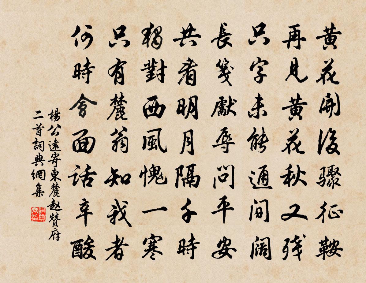 詩詞名句歷史字典書法欣賞書法字典國語詞典說文解字康熙字典古漢語字典標 題 作 者 詩 句 寄東麓趙贊府二首作者:楊公遠 朝代:宋代寄東麓趙贊府二首原文黃花開後驟征鞍,再見黃花秋又殘。隻字未能通間闊,長箋先辱問平安。共看明月隔千時,獨對西風愧一寒。只有麓翁知我者,何時會面話辛酸。詩詞問答問:寄東麓趙贊府二首的作者是誰?答:楊公遠問:寄東麓趙贊府二首寫於哪個朝代?答:宋代楊公遠寄東麓趙贊府二首書法欣賞寄東麓趙贊府二首書法作品詩詞推薦和人與人分惠賜冰楊巨源〔唐代〕天水藏來玉墮空,先頒密署幾人同。映盤皎潔非資月,披扇清涼不在風。瑩質方從綸閣內,凝輝更向畫堂中。麗詞趙表之送梅並詩次韻四首張嵲〔宋代〕綠蓓繁時春欲暗,曉霜濃處信初來。今朝訊息南枝露,知是微陽九地回。念奴嬌(憶先廬春山之勝)程珌〔宋代〕歸來一笑,尚看看趁得,人間寒食。阿壽牽衣仍問我,雙鬢新來添白。忍見庭前,去年芳草,依舊青青色。西湖雨挽鄭甥主學二首劉克莊〔宋代〕北轍心猶銳,南廊策不遷。美芹干將相,采藻淑生徒。賦鵩方強仕,聞雞漫壯圖。未應精爽盡,丹穴有雙雛。和尚書李丈六絕王之望〔宋代〕風光無賴惱詩翁,健筆凌雲思未慵。長句數篇欺白雪,江山浩蕩發春容。碧玉千峰方來〔宋代〕東溪有人豪,調古誰能讀。我來薦芳馨,黃花清可掬。想公憐世人,翻覆變涼燠。至今嫉邪書,字字凜寒玉。挽妹婿汪汻四首許月卿〔宋代〕亡恙壁岩日,媒雲婦有依。世秋君六世,時事彼一時。寂寞吾州隔,諸孤我妹慈。九京逢桂老,東坦愧羲之。詠史詩金義嶺胡曾〔唐代〕鑿開山嶺引湘波,上去昭回不較多。無限鵲臨橋畔立,適來天道過天河。眼兒媚黃機〔宋代〕粉牆朱閣映垂楊。晴綠小池塘。東風颺暖,單衣初試,晝日偏長。鬔鬆兩鬢飛雲影,鈿合未梳妝。闌乾側畔,閒拋遊宦十年於外歸自浙東睹西山先塋周圍林木氣虞儔〔宋代〕萬畝墳山遍野陰,幾年樵採到如今。藩籬有限重加護,斤斧無端免見侵。缺處更須頻檢校,暇時何惜一登臨。先君流杯亭連文鳳〔宋代〕流杯亭下水無聲,滿地牛關野草腥。何事當時貪宴會,至今帝醉未能醒。灞陵行送別李白〔唐代〕送君灞陵亭,灞水流浩浩。上有無花之古樹,下有傷心之春草。我向秦人問路歧,雲是王粲南登之古道。古道連綿別令詩張辭〔唐代〕張辭張辭自不會,天下經書在腹內。身即騰騰處世間,心即逍遙出天外。木犀方岳〔宋代〕羽觴和月嚼冰黃,自笑詩腸老更剛。四出雪花些小大,五千書傳一齊香。君從底處移仙籍,日飲無何作醉鄉。風露金陵雜興二百首蘇泂〔宋代〕小小規模似禁中,分明夏禹欲卑宮。白頭官吏知年幾,猶指屏風說孝宗。挽秦國夫人李流謙〔宋代〕伴渙方興日,憂危未決前。偽書知莽詐,新曆斷周延。冰作群疑泮,風從一語傳。龜靈無此識,上智炳機先。閩中早春張嵲〔宋代〕愁見繁雲貼死灰,驟喜春從天際回。晴雲流爛滿峰起,瀲灩陂塘泉脈來。春歸欲驗將何許,柳腰杏頰知春處。出門因道友說陳搏打睡警之釋印肅〔宋代〕日當午,有巴鼻,莫似這漢打瞌睡。精魄沉滯識神牽,墮入三途難出離。我這裹,不如是,眼若不睡諸夢除。端然送崔玄亮赴果州冬夜宴韓卿宅姚合〔唐代〕蘭燭照重茵,飛杯復幾分。主人寒不寐,上客曉離群。騎吏緣青壁,旌旗度白雲。劍銘生蘚色,巴字疊冰文。華省避地山谷鄧肅〔宋代〕大禹不到處,石壁誰鑿開。雲端欲相摶,飛出白雲來。余沫亂飛雪,雄聲敵春雷。泝流涌百尺,銀山陟崔嵬。顧我名句推薦朝雲亂人目,帝女湘川宿。吳均《登二妃廟》 若非群玉山頭見,會向瑤台月下逢李白《清平調·其一》 斷無蜂蝶慕幽香,紅衣脫盡芳心苦。賀鑄《芳心苦·楊柳回塘》 發短愁催白,顏衰酒借紅。陳師道《除夜對酒贈少章》 寂歷秋江漁火稀,起看殘月映林微。湯顯祖《江宿》 箭徑酸風射眼,膩水染花腥。吳文英《八聲甘州·靈岩陪庾幕諸公游》 人心似鐵,官法如爐。佚名《增廣賢文·上集》 中山孺子倚新妝,鄭女燕姬獨擅場。李夢陽《汴京元夕》 更吹羌笛關山月,無那金閨萬里愁王昌齡《從軍行七首》 君子能勤小物,故無大患。司馬光《資治通鑑·周紀·周紀一》