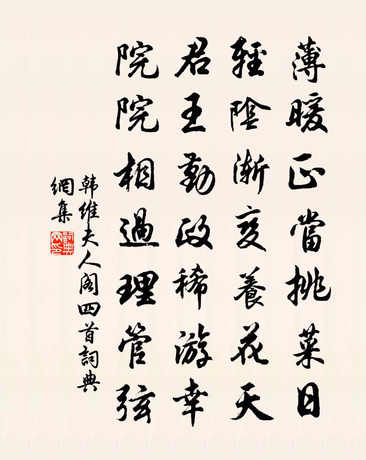 詩詞名句歷史字典書法欣賞書法字典國語詞典說文解字康熙字典古漢語字典標 題 作 者 詩 句 夫人閣四首作者:韓維 朝代:宋代夫人閣四首原文薄暖正當挑菜日,輕陰漸變養花天。君王勤政稀游幸,院院相過理管弦。詩詞問答問:夫人閣四首的作者是誰?答:韓維問:夫人閣四首寫於哪個朝代?答:宋代韓維夫人閣四首書法欣賞夫人閣四首書法作品詩詞推薦句齊唐〔宋代〕唯有梅花報春早,雪中傳信過江乾。題度支雜事典庭中柏樹駱浚〔唐代〕乾聳一條青玉直,葉鋪千疊綠雲低。爭如燕雀偏巢此,卻是鴛鴦不得棲。鏡湖懷古蘇泂〔宋代〕鏡湖湖水滑如油,狂客歸來上釣舟。惆悵無因見李白,西風吹老芰荷洲。寄李隱者倪瓚〔元代〕南汀新月色,照見水中蘋。便欲乘清影,緣源訪隱淪。君住鈿山湖,綠酒松花春。夢披寒雪去,疑是剡溪濱。賀新郎(贈鐵笛)蒲壽宬〔宋代〕鐵笛穿花去。問長安、市上生涯,而今何似。破帽青衫塵滿面。不識何人共語。且面壁、聽風雨。惟我虛中元識破玉蝴蝶陳德武〔宋代〕金井梧桐飛報,秋期近也,烏鵲成橋。為問雙星何事,長待今宵。別今年、新歌暫展,更五鼓、舊恨重搖。黯魂銷菩薩蠻佚名〔宋代〕柳橋花塢南城陌。朱顏綠髮長安客。雨後小池台。尋常載酒來。馬頭今日路。卻望城西去。斜日下汀洲。斷雲和淚清平樂邵某〔宋代〕阿郎去日。不道長為客。底事桐廬無處覓。卻得廣州訊息。江頭一支蘭船。風雨湘妃廟前。死恨無情江水,送郎一近事胡仲弓〔宋代〕近事山中總不知,心清常是太平時。勿於貧後方求藥,才得閒來便賦詩。千裏白雲勞夢想,一天明有負襟期。有書金蓮堂 俗惜黃花藏頭 拆起各字王哲〔元代〕家自悟。今觀睹。扶風安手腳,未知門戶。鬼作乖疏,下如何做。人來、金相覷。里為誰主。風語汝。還嬰兒復早梅芳近李德載〔宋代〕深院靜,小闌傍。標緻不尋常。盡他桃杏占風光。誰敢斗新妝。玉堂中,梁苑裡。休把雪來輕比。莫吹長笛巧摧殘河中府追懷亡二兄及思永興十二弟晁說之〔宋代〕表里山河季布州,我家兄弟憶同游。芸香寂寞空青冢,絳帳飄零欲白頭。羈旅即今無好語,登臨自古有高樓。頗聞聞霰舒岳祥〔宋代〕卷幔江湖二十年,青山兀坐學枯禪。夜來雪急敲窗紙,忽憶吳江聽此眠。春雪鄭剛中〔宋代〕冰柱垂檐雪滿山,今年寒食不勝寒。何門可曳長裾語,高臥從教刺墨漫。柳橋秋夜陸游〔宋代〕青帝萬里月輪孤,掃盡浮雲一點無。正是吾廬秋好夜,上橋渾不要人扶。將之衡陽道中作張祜〔唐代〕萬里南方去,扁舟泛自身。長年無愛物,深話少情人。醉臥襟長散,閒書字不真。衡陽路猶遠,獨與雁為賓。送張環攝御史監南選孫逖〔唐代〕漢使得張綱,威名攝遠方。恩沾柱下史,榮比選曹郎。江帶黔中闊,山連峽水長。莫愁炎暑地,秋至有嚴霜。點絳唇(冬至)趙彥端〔宋代〕一點青陽,早梅初識春風面。暖回瓊管。斗自東方轉。白馬青袍,莫作銅駝戀。看宮線。但長相見。愛日如人願。張明發有問用前韻謝之錢時〔宋代〕本自光明不費燈,箇中元不隔微塵。如何曾點歸來後,千古無人解詠春。題清湘管善甫青雲樓史彌寧〔宋代〕湘山詩眼兩爭高,醉墨淋浪濕斗杓。說似元龍徹欄楯,恐妨縱武上曾霄。名句推薦千古江山,英雄無覓孫仲謀處。辛棄疾《永遇樂·京口北固亭懷古》 任翠幄張天,柔茵藉地,酒盡未能去。晁補之《摸魚兒·東皋寓居》 不辭山路遠,踏雪也相過。張九齡《答陸澧》 賞罰如加於身,賦斂如取己物。此愛民之道也。姜子牙《六韜·文韜·國務》 蕭蕭遠樹疏林外,一半秋山帶夕陽。寇準《書河上亭壁》 欲買桂花同載酒,終不似,少年游。劉過《唐多令·蘆葉滿汀洲》 縱明月相思千里隔。夢咫尺。勤書尺。賀鑄《琴調相思引·送范殿監赴黃崗》 自在飛花輕似夢,無邊絲雨細如愁。秦觀《浣溪沙·漠漠輕寒上小樓》 山頭堆白雪,風裡卷黃沙。楊守禮《三月巡邊曉發夏城》 落絮無聲春墮淚,行雲有影月含羞。吳文英《浣溪沙·門隔花深夢舊遊》