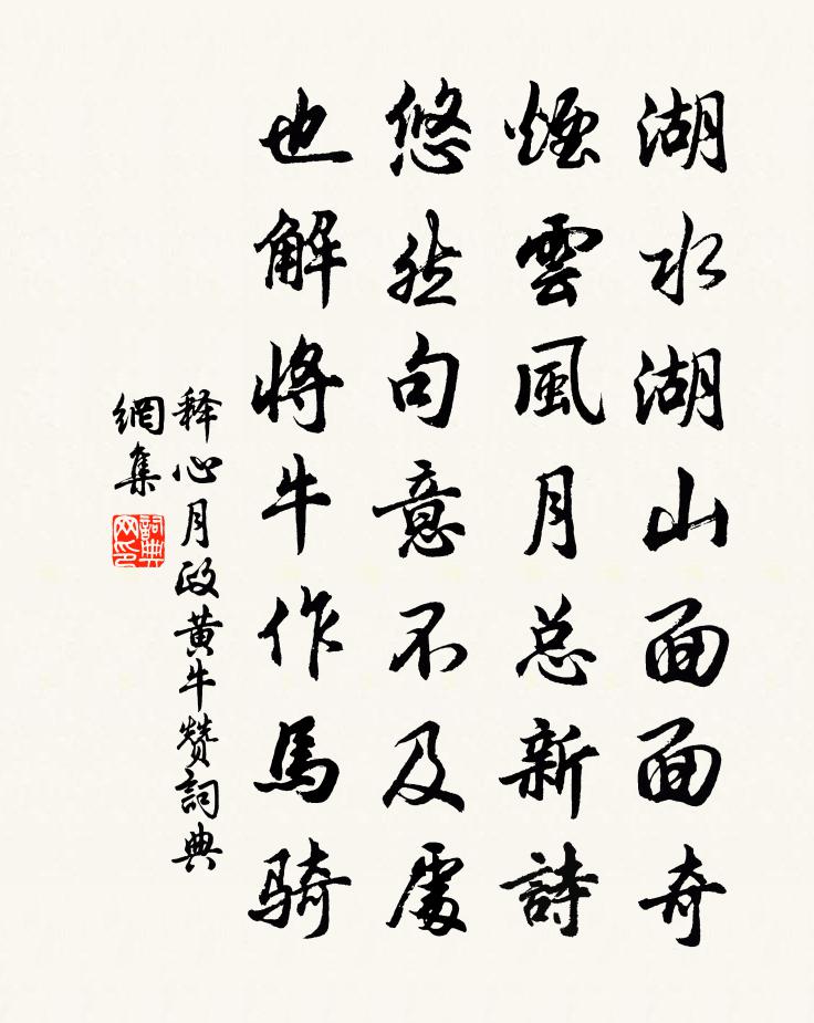 詩詞名句歷史字典書法欣賞書法字典國語詞典說文解字康熙字典古漢語字典標 題 作 者 詩 句 政黃牛贊作者:釋心月 朝代:宋代政黃牛贊原文湖水湖山面面奇,煙雲風月總新詩。悠然句意不及處,也解將牛作馬騎。詩詞問答問:政黃牛贊的作者是誰?答:釋心月問:政黃牛贊寫於哪個朝代?答:宋代釋心月政黃牛贊書法欣賞政黃牛贊書法作品詩詞推薦西湖於石〔宋代〕西湖勝概甲東南,滿眼繁華今幾年。鐘鼓相聞南北寺,笙歌不斷往來船。山圍花柳春風地,水浸樓台夜月天。士女偈頌十八首釋道璨〔宋代〕臨濟四料揀,洞山四賓主。甜瓜徹蒂甜,苦瓠連根苦。倒腹說向人,恰似杏花枝上雨。謝李剛中張耒〔宋代〕齊郎好詩風調清,語中有骨自老成。愈鑱愈出當有名,朅來宣城蓋為傾。文章不如金滿籯,我昔曾力今乃懲。少年信國太夫人慕容氏輓詞二首周必大〔宋代〕門地榮聽履,夫家世夢松。初終無一欠,富貴有三從。疾愈龍宮藥,恩加象服封。乘鸞期忽至,談笑返仙峰。冬至吟邵雍〔宋代〕冬至子之半,天心無改移。一陽初起處,萬物未生時。玄酒味方淡,大音聲正希。此方如不信,更請問庖犧。禁中賞芍藥口占曹勛〔宋代〕千壺芍藥靄祥雲,一部簫韶合曲新。三聖臨軒聽歌舞,端知造物款留春。次韻何子聞安靜觀李流謙〔宋代〕日壓茅檐醉擁蓑,靜聽寒溜奏雲和。深藏本自身全路,瞪眎元知語不多。紫府地嚴須一到,蒼崖文古要重磨。新宮木蘭花/玉樓春佚名〔宋代〕東風昨夜吹春晝。陡覺去年梅蕊舊。誰人能解把長繩,系得烏飛並兔走。清香瀲灩杯中酒。新眼苗條江上柳。尊前挽李卿儔老二首劉克莊〔宋代〕人物今衰少,惟侯智勇兼。悲風起關塞,斜日薄嵫崦。老子無從涕,諸賢不及髯。知心惟蜀李,應為發幽潛。戊申年七夕五絕薛映〔宋代〕銀河耿耿露溥溥,彩縷金針玉佩環。天媛貪忙為靈匹,幾時留巧與人間。用夾穀子括吳山晚眺韻十首方回〔宋代〕蕩蕩天寬眼亦寬,區區笑爾井中觀。帆來狗國毛人遠,樓倚牛郎織女寒。迅速年華榆燧改,槁枯世味蔗滓殘。絕憐積善堂詩晃沖之〔宋代〕星次朝當赦,龍符夜改元。忽傳優老詔,周及庶臣門。細札頒殊禮,陪封錫異恩。大酺堪一笑,束帛不須論。緬想顏侍御廳叢篁詠送薛存誠盧綸〔唐代〕玉乾百餘莖,生君此堂側。拂簾寒雨響,擁砌深溪色。何事鳳凰雛,茲焉理歸翼。劉誼夫見寄雲溪之什用前韻郭印〔宋代〕身墮樊籠里,心游浦漵邊。晚風傳牧笛,落日漾漁船。山接無窮樹,江連不盡天。憑誰圖此景,彷佛似斜川。菊花高翥〔宋代〕白白黃黃自歲寒,詩人但作菊花看。牡丹茉莉非吾事,自是時人被眼瞞。奉陪黃帥機訪問元夕戰場歸途見人家園池花木曹彥約〔宋代〕照人精采駐元戎,與我驅馳錄近功。想見玉簫聲遠夜,亂芟篁竹剉春蔥。送玉融周醫劉克莊〔宋代〕苛留孤月伴長庚,無奈殘星欲啟明。曾子數商誠有罪,韓公雲籍未嘗首。病深不早迎秦緩,貲薄將何謝宋清。客問奉陪呂使君樓上夜看花段弘古〔唐代〕城上芳園花滿枝,城頭太守夜看時。為報林中高舉燭,感人情思欲題詩。靖節先生祠下鄧肅〔宋代〕五柳歸來昔陶公,七閩召還今鄧子。不將出處作殊觀,便了陶鄧先生死。清平樂·留人不住晏幾道〔宋代〕留人不住,醉解蘭舟去。一棹碧濤春水路,過盡曉鶯啼處。渡頭楊柳青青,枝枝葉葉離情。此後錦書休寄,畫樓雲名句推薦誰念文園病客?夜色沉沉,獨抱一天岑寂。張埜《奪錦標·七夕》 城上高樓接大荒,海天愁思正茫茫。柳宗元《登柳州城樓寄漳汀封連四州》 春風知別苦,不遣柳條青。李白《勞勞亭》 臣子恨,何時滅!駕長車,踏破賀蘭山缺。岳飛《滿江紅·寫懷》 何意更觴昌歜酒,為君擊節一長歌。趙蕃《端午三首》 秋陰時晴漸向暝,變一庭淒冷周邦彥《關河令·秋陰時晴漸向暝》 馬上相逢無紙筆,憑君傳語報平安。岑參《逢入京使》 桃紅復含宿雨,柳綠更帶朝煙。王維《田園樂七首·其六》 命隨年欲盡,身與世俱忘;文天祥《除夜》 是他春帶愁來,春歸何處。辛棄疾《祝英台近·晚春》
