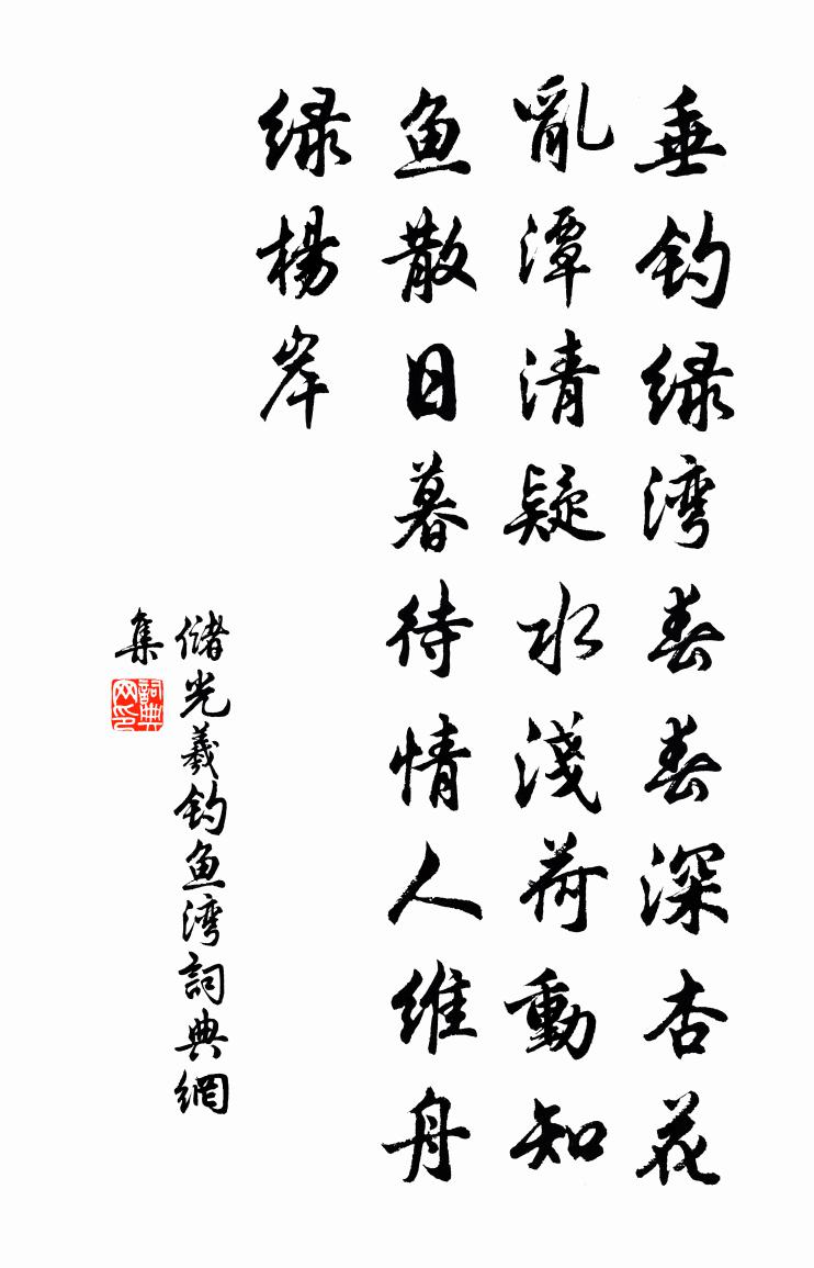 垂釣綠灣春,春深杏花亂。潭清疑水淺,荷動知魚散。