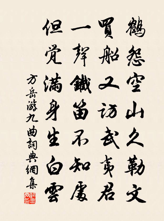 詩詞名句歷史字典書法欣賞書法字典國語詞典說文解字康熙字典古漢語字典標 題 作 者 詩 句 游九曲作者:方岳 朝代:宋代游九曲原文鶴怨空山久勒文,買船又訪武夷君。一聲鐵笛不知處,但覺滿身生白雲。詩詞問答問:游九曲的作者是誰?答:方岳問:游九曲寫於哪個朝代?答:宋代方岳游九曲書法欣賞游九曲書法作品詩詞推薦楚南偉觀樓陳峴〔宋代〕平生足跡窮遐陬,一麾更守湖湘州。西接懸崖五溪曲,南望渺極蒼梧愁。天涯牢落孰慰意,千嶂倒影三江流。千里入村方岳〔宋代〕宿雨初晴曉日晶,彌川滿谷白雲平。燦銀堆裹素螺髻,畫出江潮萬里橫。櫻桃花楊萬里〔宋代〕櫻桃花發滿晴柯,不賭嬌饒只賭多。落盡江梅余半朵,依前風韻合還他。宿諸暨大雄寺姚寬〔宋代〕解榻無凝塵,雲房愜幽素。清寒薄衾枕,微涼散庭戶。夢破流水聲,鉤簾卷山霧。時與靜者俱,為擬湯休句。蝶戀花葛勝仲〔宋代〕雨後春光濃似醉。著柳催花,節物侵龍忌。繡褓香閣當日佩。紫蘭宮墮人間世。歌管停雲香吐穗。碧酒紅裳,共祝寄武陵李少府韓翃〔唐代〕小縣春山口,公孫吏隱時。楚歌催晚醉,蠻語入新詩。桂水遙相憶,花源暗有期。郢門千里外,莫怪尺書遲。行路難范成大〔宋代〕贈君以丹棘忘憂之草,青棠合歡之花,馬瑙遊仙之夢枕,龍綜辟寒之寶紗。天河未翻月未落,夜長如年引春酌。昔四月奉教作李嶠〔唐代〕暄籥三春謝,炎鍾九夏初。潤浮梅雨夕,涼散麥風餘。葉暗庭幃滿,花殘院錦疏。勝情多賞托,尊酒狎林箊。病中雜興五言十首劉克莊〔宋代〕鰲頂來差晚,龍髯去莫攀。不能從襄野,只合殉橋灣。舍利弗李白〔唐代〕金繩界寶地,珍木蔭瑤池。雲間妙音奏,天際法蠡吹。依韻奉和經略司徒侍中清明興慶池上之作強至〔宋代〕後騎前騶拂曉晴,風光初轉繡旗明。功名上相班春樂,談笑西戎計日平。煙際飛禽屏上見,水邊游妓鑒中行。勸公李才翁懶窩林憲〔宋代〕月華浴沆瀣,天容注琉璃。皎如大圓鏡,照徹清境暉。繁星斂芒曜,群動生霏微。塵世寧有此,玉虛樓觀低。原西翁逢龍〔宋代〕原西行來遍,獨影在斜最。驟雨晴明快,初秋早晚涼。猿搖山果落,麝浴澗泉香。不向閒中看,爭知城郭忙。木蘭花舒亶〔宋代〕金絲絡馬青錢路。笑指玉皇香案去。點衣柳陌墮殘紅,拂面風橋吹細雨。曉釵壓鬢頭慵舉。恨里歌聲兼別苦。西湖臨江仙(會黃魁)洪适〔宋代〕北斗南頭雲送喜,人間快睹魁星。向來平步到蓬瀛。如何天上客,來佐海邊城。方伯娛賓香作穗,風隨歌扇涼生。偈頌七十六首釋師觀〔宋代〕晷運推移,日南長至。自古自今,同天同地。靈山一會尚儼然,雷音堂中談不二。阮步兵廟李廌〔宋代〕千齡一丘壠,誰復記主名。苾芬百世祠,賢哉阮步兵。廟旁故墟里,竹林蔽郊垧。裔孫仍南北,胡能師九原。鄉人或病予詩多道蜀中遨樂之盛適春日游鏡湖陸游〔宋代〕湖波綠似鴨頭深,一日春晴直萬金。好事誰家斗歌舞,方舟齊榜出花陰。學無學頌一十五首釋印肅〔宋代〕莫向人前說是非,是非不到實希奇。假饒講得天花墜,大地山河總不知。東坡姜特立〔宋代〕文章聲價有東坡,歲晚親逢春夢婆。一聞千悟無餘事,背負大瓢還唱歌。惜哉龍眠不好事,不為寫東坡海外郊行圖名句推薦一年一度,爛漫離披,似長江去浪。吳澄《渡江雲·揭浩齋送春和韻》 松花釀酒,春水煎茶。張可久《人月圓·山中書事》 誰家玉笛暗飛聲,散入春風滿洛城。李白《春夜洛城聞笛 / 春夜洛陽城聞笛》 忽大風起,塵氣莽莽然,城市依稀而已。蒲松齡《山市》 亦知合被才名折,二十三年折太多。白居易《醉贈劉二十八使君》 既生瑜,何生亮!羅貫中《三國演義·第五十七回》 莫道桑榆晚,為霞尚滿天。劉禹錫《酬樂天詠老見示》 海燕歲微渺,乘春亦暫來。張九齡《歸燕詩》 彩線輕纏紅玉臂,小符斜掛綠雲鬟。佳人相見一千年。蘇軾《浣溪沙·端午》 故先民以時生財,固本而用財,則財足。墨子《墨子·05章 七患》