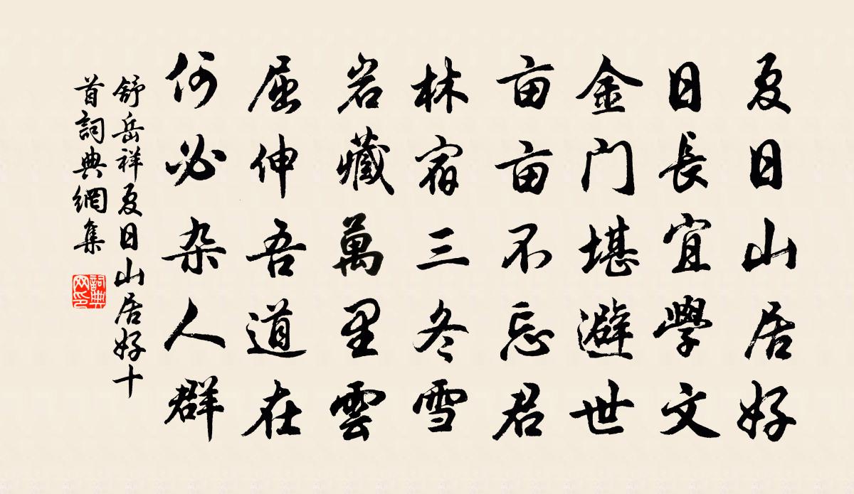 詩詞名句歷史字典書法欣賞書法字典國語詞典說文解字康熙字典古漢語字典標 題 作 者 詩 句 夏日山居好十首作者:舒岳祥 朝代:宋代夏日山居好十首原文夏日山居好,日長宜學文。金門堪避世,畝畝不忘君。林宿三冬雪,岩藏萬里雲。屈伸吾道在,何必雜人群。詩詞問答問:夏日山居好十首的作者是誰?答:舒岳祥問:夏日山居好十首寫於哪個朝代?答:宋代舒岳祥夏日山居好十首書法欣賞夏日山居好十首書法作品詩詞推薦吊黃學士三首歐陽修〔宋代〕自古蘭衰早,因令蕙嘆深。書遺茂陵◇,病作越鄉吟。蒿里無春色,閩山蔽夕陰。空嗟埋玉樹,◇志永沉沉。挽心泉蒲處士丘葵〔宋代〕把釣秋風辱贈詩,傷心無路送靈輀。欲書誄語應難盡,獨倚寒梅照石漪。吳故宮常建〔唐代〕越女歌長君且聽,芙蓉香滿水邊城。豈知一日終非主,猶自如今有怨聲。上丹霄 入道王丹桂〔元代〕死生催,輪迴迫,沒休期。向迷津、苦海爭馳。會逢新地,真仙垂教度群迷。頓然喚覺,夢浮生、疏遠輕肥。頭如題花十絕句程公許〔宋代〕飢腸可忍麥登場,寒索衣裘蠶飫桑。莫為花殘恨風雨,深恩何以答東皇。題真源宮方千里〔宋代〕萬歲丹霞府,千函蕊笈書。時時瞻絳節,往往下雲車。近與剛風接,高連上帝居。登前望南嶽,清蹕徹空虛。宮詞四首李邴〔宋代〕舞袖何年絡臂韝,蛛絲網斷玉搔頭。羊車一去空餘竹,紈扇相看不到秋。游洞庭湖裴說〔唐代〕楚雲團翠八百里,澧蘭吹香墮春水。白頭漁子搖蒼煙,眠沙曉驚起。沙頭龍叟夜嘆憂,鐵笛未響春風羞。露寒紫藟贈史開封楊巨源〔唐代〕天低荒草誓師壇,鄧艾心知戰地寬。鼓角迥臨霜野曙,旌旗高對雪峰寒。五營向水紅塵起,一劍當風白日看。曾從寄題趙尉若鈺蘭所六言四首劉克莊〔宋代〕平生憎鮑魚肆,何處割山麝房。試與君評花品,不如渠有國香。送韋秀才皎然〔唐代〕晨裝行墮葉,萬里望桑乾。舊說涇關險,猶聞易水寒。黃雲戰後積,白草暮來看。近得君苗信,時教旅思寬。竹枝詞二首·其二劉禹錫〔唐代〕楚水巴山江雨多,巴人能唱本鄉歌。今朝北客思歸去,回入紇那披綠羅。送良玉人上還崑山梅堯臣〔宋代〕來衣茶色袍,歸變椹色服。孫舟洞庭去,落日松江宿。水煙晦琴徽,山月上岩屋。野童遙相迎,風葉鳴橡槲。句盧拱〔唐代〕地甃如拳石,溪橫似葉舟。再呈趙倅王邁〔宋代〕委齋坐我以春風,不事拘攣邊幅中。俗子語言藏攫罕,丈夫胸腹等崆峒。虛舟相觸何心在,怒火雖炎一餓空。到底秦樓月/憶秦娥梁意娘〔宋代〕春宵短。香閨寂寞愁無限。愁無限。一聲窗外,曉鶯新囀。起來無語成嬌懶。柔腸易斷人難見。人難見。這些心緒冬述四首示子培 之三陳衍〔清代〕往余游京華,鄭君過我邸。告言子沈子,詩亦同光體。雜然見贈答,色味若粢醴。十年始會面,輟樂正讀禮。從之次韻持上人題延慶寺清玉軒張良臣〔宋代〕水芳未動城南路,一一僧檐有竹看。政爾塵埃能自表,故應悠久澹相安。長楊曉獵干戈肅,古棘春朝萬玉寒。碧眼【雙調】殿前歡_楊廉夫席上張雨〔元代〕楊廉夫席上有贈小吳娃,玉盤仙掌載春霞。後堂絳帳重簾下,誰理琵琶?香山處士家,玉局仙人畫,一刻春無價。泛吳松江王禹偁〔宋代〕葦蓬疏薄漏斜陽,半日孤吟未過江。唯有鷺鷥知我意,時時翹足對船窗。名句推薦過眼年華,動人幽意,相逢幾番春換。王沂孫《法曲獻仙音·聚景亭梅次草窗韻》 一語不入意,從君萬曲梁塵飛。李白《夜坐吟》 才過斜陽,又是黃昏雨。晏幾道《蝶戀花·笑艷秋蓮生綠浦》 相思記取,愁絕西窗夜雨。韓元吉《薄倖·送安伯弟》 蔡女菱歌移錦纜,燕姬春望上瓊鉤。上官儀《詠畫障》 此地動歸念,長年悲倦遊。王籍《入若耶溪》 威宜自嚴而寬,先寬後嚴者人怨其酷。洪應明《菜根譚·概論》 寶馬雕車香滿路。辛棄疾《青玉案·元夕》 淺不足與測深,愚不足與謀智,坎井之蛙,不可與語東海之樂。荀子《荀子·正論》 殘酒憶荊高,燕趙悲歌事未消。陳維崧《南鄉子·邢州道上作》