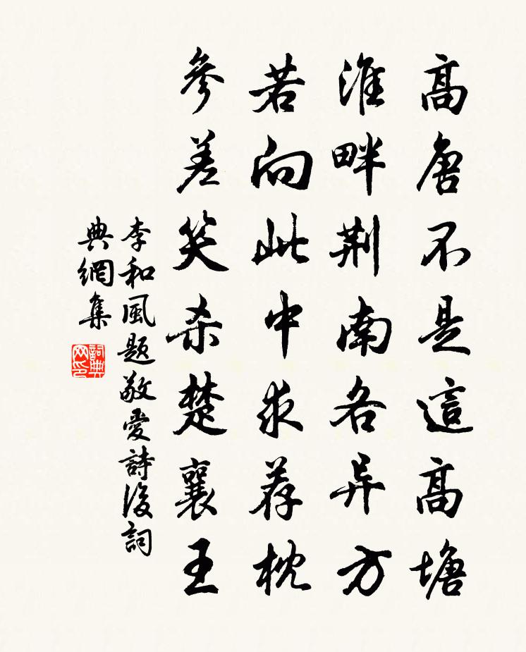 詩詞名句歷史字典書法欣賞書法字典國語詞典說文解字康熙字典古漢語字典標 題 作 者 詩 句 題敬愛詩後作者:李和風 朝代:唐代題敬愛詩後原文高唐不是這高塘,淮畔荊南各異方。若向此中求薦枕,參差笑殺楚襄王。詩詞問答問:題敬愛詩後的作者是誰?答:李和風問:題敬愛詩後寫於哪個朝代?答:唐代問:題敬愛詩後是什麼體裁?答:七絕李和風題敬愛詩後書法欣賞題敬愛詩後書法作品注釋全唐詩:卷871-3詩詞推薦虞忠肅萬里帖贊岳珂〔宋代〕方長鯨之乾誅,駭百川這騰浪。撼坤軸其欲裂,有雍公之忠壯。策數船之奇勳,射天狼於北向。既旄頭之夜殞,窘留侯廟鄭獬〔宋代〕留侯仗奇策,十年藏下邳。狙擊秦始皇,獨袖紫金椎。茲為少年戲,聊夸遊俠兒。退學黃石書,始見事業奇。兩龍句秦觀〔宋代〕斷霞一抹海天低。聞蛩徐集孫〔宋代〕獨搔短髮坐更深,夜雨書燈半欲陰。近日病魔詩思澀,一秋清句付蛩吟。正元二日與菊莊湯伯起歸隱陳鴻甫汎舟湖上二武衍〔宋代〕春雲漠漠雨疏疏,小{左舟右定}沖煙入畫圖。除卻淡妝濃抹句,更將何語說西湖。和劉穎呈張經略韻滕喬〔宋代〕隱然重望壓邊塵,號令風生玉帳兵。詩思江山真得助,威聲草木盡知名。要令萬頃窺黃憲,不把千畦付曲生。坐使望廬山懷舊方回〔宋代〕夜入廬山路,開元萬柱宮。穿廊石渠水,涼座竹林風。羽客談霏雪,星郎氣吐虹。劫灰如可問,無復昔人同。八句呈董稼山陳著〔宋代〕樓閣高虛壓翠微,詩囊酒擔答春暉。山環水抱花相映,天闊雲開鶴自飛。已有新陰共醉臥,何妨清話放遲歸。浮生題西庵寺張士遜〔宋代〕西庵深入西山里,算得當年少客游。密密石叢盤小徑,涓涓雲竇瀉寒流。松皆有節誰青蓋,僧盡無心也白頭。欲刷丙戌除夕次韻仁近二首方回〔宋代〕歲窮猶此客,不早見幾微。豈易賒鄰醞,何慚典故衣。余寒當有幾,小忍未為非。野燒回青潤,春山飽蕨薇。公肅在東南三有書來未報聞其除司直以詩寄賀史堯弼〔宋代〕小試猶為天下平,惠文柱後要無刑。從今準擬子張傳,吾世常司汗簡青。贈葉洞春畫葡萄陳普〔宋代〕引蔓牽藤寸管頭,扶驪剔蚌出風流。三千龍女拋珠佩,一個儒生擁碧油。莫是前生封即墨,便堪作酒博青州。齊奴徐簿餉烏飯八月八日錢時〔宋代〕紅姜黑飯薦珍羞,愧爾瞿曇老比邱。先聖兒孫今滿地,有人能記誕彌不。書感陸游〔宋代〕常記當年賦子虛,公卿交口薦相如。豈知鶴髮殘年叟,猶讀蠅頭細字書。出處幸逃千載笑,功名從負此心初。荒園閒居秋懷,寄陽翟陸贊府、封丘高少府賈至〔唐代〕今日霖雨霽,颯然高館涼。秋風吹二毛,烈士加慨慷。憶昔皇運初,眾賓俱龍驤。解巾佐幕府,脫劍升明堂。鬱郁紹興以後蜡祭四十二首佚名〔宋代〕歌磬臚驩,蒙蕭激香。飈御奄留,申以貳鐵。相興震澹,告靈其醉。庶幾聽之,成我熙事。次張守韻四首劉子翬〔宋代〕瓦白霜封縞,波清月漾金。柝沈秋壘靜,人語夜堂深。故國歸何日,寒衾事滿心。庭松憐手植,擢乾已彌尋。結客黃庭堅〔宋代〕結客結英豪,肯同兒女曹。黃金妝佩劍,猛獸畫旗旄。北極狼星落,中原王氣高。終令賀蘭賊,不著赭黃袍。池州金君卿〔宋代〕秋浦南邊絕點埃,碧圍煙嶂一屏開。當時小杜行吟處,重見高陽騎從來。西江月佚名〔宋代〕侯績分從東魯,世勛來在姬公。桂枝少日冠蟾宮。枳棘暫棲鸞鳳。報導小春來也,令辰申降高崧。功名富貴管無窮名句推薦煢煢白兔,東走西顧。佚名《古艷歌》 嘆江山如故,千村寥落。岳飛《滿江紅·登黃鶴樓有感》 傳屐朝尋藥,分燈夜讀書。於鵠《題鄰居》 只解沙場為國死,何須馬革裹屍還。徐錫麟《出塞》 練於骨者,析辭必精;深乎風者,述情必顯。劉勰《文心雕龍·風骨》 浮雲不系名居易,造化無為字樂天李忱《吊白居易》 江南臘盡,早梅花開後,分付新春與垂柳。蘇軾《洞仙歌·詠柳》 密雲雙鳳,初破縷金團。米芾《滿庭芳·詠茶》 故鄉歸去千里,佳處輒遲留。蘇軾《水調歌頭·安石在東海》 人人親其親、長其長而天下平。孟子《孟子·離婁章句上·第十一節》