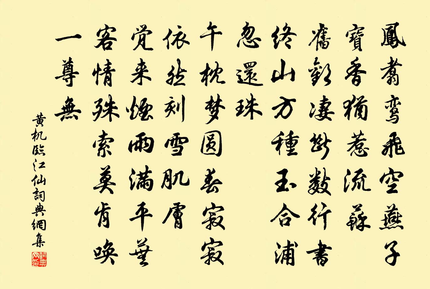 詩詞名句歷史字典書法欣賞書法字典國語詞典說文解字康熙字典古漢語字典標 題 作 者 詩 句 臨江仙作者:黃機 朝代:宋代臨江仙原文鳳翥鸞飛空燕子,寶香猶惹流蘇。舊歡淒斷數行書。終山方種玉,合浦忽還珠。午枕夢圓春寂寂,依然刻雪肌膚。覺來煙雨滿平蕪。客情殊索莫,肯喚一尊無。詩詞問答問:臨江仙的作者是誰?答:黃機問:臨江仙寫於哪個朝代?答:宋代問:臨江仙是什麼體裁?答:詞黃機臨江仙書法欣賞臨江仙書法作品詩詞推薦疏山送日兄歸玄沙釋紹曇〔宋代〕疏山覓得曹家女,嬌舞西風不解羞。歸與謝郎稱萬福,免教紅爛在漁舟。鷓鴣天石孝友〔宋代〕別後應憐信息疏。西風幾度到庭梧。夜來縱有鴛鴦夢,春去空餘蛺蝶圖。煙樹遠,塞鴻孤。垂垂天影帶平蕪。憑誰四睡贊釋了惠〔宋代〕無固無必,挨肩促膝。人夢不祥,虎夢大吉。世上有誰知,天台雲幕幕。洞仙歌嚴抑〔宋代〕雲車鶴蓋,三島朝元後。綠意紅情在梅柳。想仙風從碧落次,吹得春來甘泉,喜見顏紅宇秀。承明厭直,小憩苹洲項里觀楊梅陸游〔宋代〕山中戶戶作梅忙,火齊驪珠入帝鄉。細織筠籠相映發,華清虛說荔枝筐。春雨李鹹用〔唐代〕大帝閒吹破凍風,青雲融液流長空。天人醉引玄酒注,傾香旋入花根土。濕塵輕舞唐唐春,神娥無跡莓苔新。老農三月二十日游南台賀鑄〔宋代〕晴春六十日,不與酒杯親。吏事豈無閒,風雨復兼旬。始作南城游,時物固已陳。掃不見桃李,濃綠迷荊榛。登高阮郎歸劉鎮〔宋代〕寒陰漠漠夜來霜。階庭風葉黃。歸鴉數點帶斜陽。誰家砧杵忙。燈弄幌,月侵廊。熏籠添寶香。小屏低枕怯更長。葡萄唐彥謙〔唐代〕金谷風露涼,綠珠醉初醒。珠帳夜不收,月明墮清影。王平甫惠畫水臥屏梅堯臣〔宋代〕臨流別君時,羨君觀吳潮。君行識我意,遣畫一幅綃。畫作繞床屏,滔滔隨驚飈。前浪雪花捲,後浪白馬跳。宛然讀先大人伐金遺疏趙伯溥〔宋代〕□無情行不可親,年年遣使浪填津。武侯會有兩篇表,讀罷令人淚滿巾。詠拳石菖蒲徐僑〔宋代〕岩泉潠灑著根纖,拳石相依自糾纏。土葉漸除青帶冗,細莖初發綠毛鮮。一塵不許渭幽雅,百草誰能並潔娟。日課休徵釋紹曇〔宋代〕擊碎軒轅鏡,焚燒黃石書。瘦筇春力健,帶月訪樵漁。籬落間見凌霄偶書趙蕃〔宋代〕凌霄何自名,緣木與俱生。底事因蓬附,故為亦蔓榮。江梅引王吉昌〔元代〕無明咬斷契真修。度春秋。志清幽。江月光飛,冰彩耀神州。萬劫雲收明祖意,胥毛剔,齊偕萬事休。混融性命妙次韻翁處度同游北山樓鑰〔宋代〕兩夫持鎌行我先,巧尋徑路其智專。我扶枯藤衣短後,意氣已出層峰巔。何郎鮑叔飽經歷,勝處一一手自編。我攜秋陰陸游〔宋代〕陂澤秋容淡,郊原曉氣清。雨來鳩有語,社近燕無情。拄杖扶腰痛,漁舟照眼明。苦吟緣病輟,隨意或詩成。包港風濤二首洪咨夔〔宋代〕{上竹下彌}百丈幾牽掣斷,鐵三腳已撼搖浮。陽侯戲劇何須爾,身世從來等一漚。與劉三禮陳孝廉言志李鹹用〔唐代〕真宰無私造化均,年年分散月中春。皆期早躡 * ,誰肯長為白社人?宋國高風休斂翼,聖朝公道易酬身。大須挽潘孺人黃榦〔宋代〕紅雲照水春將暮,皓月盈盈院落深。正是佳人行樂地,翻令公子獨傷心。床頭琴瑟空長在,眼底音容無處尋。寒食名句推薦王國富民,霸國富士;僅存之國,富大夫;亡道之國,富倉府劉向《說苑·政理》 泰山嵯峨夏雲在,疑是白波漲東海。李白《早秋單父南樓酬竇公衡》 那裡有鬧紅塵香車寶馬?祗不過送黃昏古木寒鴉。王磐《古蟾宮·元宵》 匈奴草黃馬正肥,金山西見煙塵飛,漢家大將西出師。岑參《走馬川行奉送出師西征 / 走馬川行奉送封大夫出師西征》 恨舊愁新。有淚無言對晚春。淮上女《減字木蘭花·淮山隱隱》 寂寂竟何待,朝朝空自歸。孟浩然《留別王侍御維 / 留別王維》 樓角初銷一縷霞,淡黃楊柳暗棲鴉賀鑄《減字浣溪沙·樓角初銷一縷霞》 江南無所有,聊贈一枝春。陸凱《贈范曄詩》 始憐幽竹山窗下,不改清陰待我歸。錢起《晚春歸山居題窗前竹 / 暮春歸故山草堂詩》 年年負卻花期!過春時,只合安排愁緒送春歸。張惠言《相見歡·年年負卻花期》