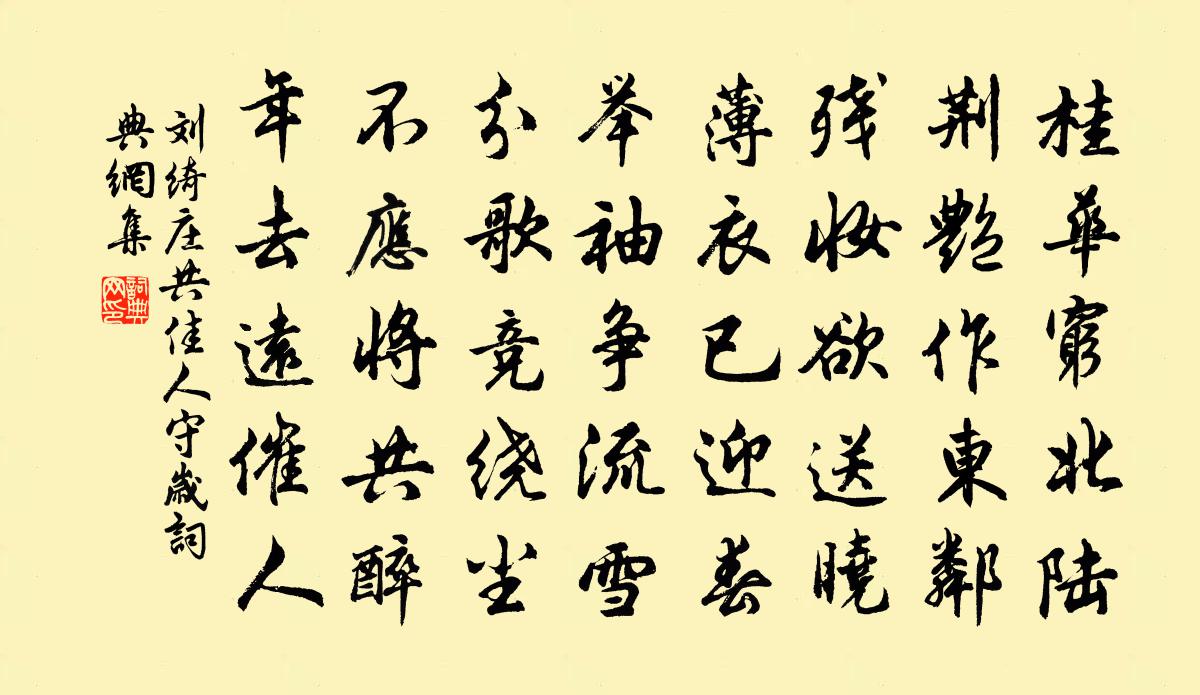 詩詞名句歷史字典書法欣賞書法字典國語詞典說文解字康熙字典古漢語字典標 題 作 者 詩 句 共佳人守歲作者:劉綺莊 朝代:唐代共佳人守歲原文桂華窮北陸,荊艷作東鄰。殘妝欲送曉,薄衣已迎春。舉袖爭流雪,分歌競繞塵。不應將共醉,年去遠催人。詩詞問答問:共佳人守歲的作者是誰?答:劉綺莊問:共佳人守歲寫於哪個朝代?答:唐代問:共佳人守歲是什麼體裁?答:五律劉綺莊共佳人守歲書法欣賞共佳人守歲書法作品注釋全唐詩:卷884-52詩詞推薦東城送客馬上賀鑄〔宋代〕向午孤煙起客檣,一陂春水兩鴛鴦。漁童解唱滄浪曲,應笑塵埃馬上郎。已亥雜詩 1龔自珍〔清代〕著書何似觀心賢?不奈巵言夜湧泉。百卷書成南渡後,先生續集再編年。偈頌四十一首釋慧暉〔宋代〕余月今朝初一日,滿山綠樹影青青。異苗繁茂只斯是,大地全分畫不成。繞佛閣(黃鐘商與沈野逸東皋天街盧樓追涼小飲)吳文英〔宋代〕夜空似水,橫漢靜立,銀浪聲杳。瑤鏡奩小。素娥乍起、樓心弄孤照。絮雲未巧。梧韻露井,偏借秋早。晴暗多少賦陳子得書樓陳著〔宋代〕危樓得地著身安,冬日烘檐夏氣寒。木末清風平與接,山中本色晚宜看。課兒勤讀書充架,留客高談袖滿闌。門外醉落魄(洪仲魯之江西,書以為別)周密〔宋代〕寒侵徑葉。雁風擊碎珊瑚屑。硯涼閒試霜晴帖。頌菊騷蘭,秋事正奇絕。故人又作江西別。書樓虛度中秋節。碧闌送丘尉赴試南宮吳芾〔宋代〕儒冠鼎盛縉紳多,海內如今數永嘉。士習藝文爭擢第,君明經術合傳家。莫言黃綬官猶小,須信 * 不賒。好上鳳凰閣劉克莊〔宋代〕元規端委,得似幼輿丘壑。人言此輩宜高閣。幾載種天隨菊,采龐公藥。龍尾道、難安汗腳。浮榮菌蕣,選甚庶官次韻王鞏南遷初歸二首蘇軾〔宋代〕問君謫南賓,野葛食幾尺。逢人瘴發黃,入市胡眼碧。三年不易過,坐睨倚天壁。歸來貌如故,妙語仍破鏑。那能己未秋杪虜騎雲擾聖主神斷斥逐元奸台臣始有姚勉〔宋代〕窗紙暾紅枕上知,破寒初聽一聲雞。雖無風雨瀟瀟度,也勝鄰家曉不啼。梁三朝雅樂歌 俊雅 三沈約〔南北朝〕重列北上。分庭異陛。百司揚職。九賓相禮。齊宋舅甥。魯衛兄弟。思皇藹藹。羣龍濟濟。我有嘉賓。實惟愷悌。九鎖步虛詞第四凌虛鎖陳洵直〔宋代〕大虛本非有,團塊何迂疏。一旬更五日,風乎駛軒和。神馭兩腋輕,絳霞理襟裾。四鎖度靈鑰,八表當凌虛。內鄉縣村路作白居易〔唐代〕日下風高野路涼,緩驅疲馬暗思鄉。渭村秋物應如此,棗赤梨紅稻穗黃。自湘赴廣道間雜詠蟠松李曾伯〔宋代〕紅紫競芳叢,中蟠一古松。春風自來去,吹不勸蒼龍。贈文潛甥楊克一學文與可畫竹求詩晁補之〔宋代〕與可畫竹時,胸中有成竹。經營似春雨,滋長地中綠。興來雷出土,萬籜起崖谷。君今似與可,神會久已熟。吾觀九日山送客次趙循州韻趙崇皦〔宋代〕蒼松藏野寺,山以隱君靈。挽仰千年事,孤高九日亭。抗塵頭漸白,弔古眼猶青。有客耽幽討,吟情起鶴汀。義榮見示禪月山居詩盥讀數過六根洒然但余素鄭剛中〔宋代〕松林竹塢雨冥冥,對坐焚香一縷青。掃壁靜開摩詰象,研朱閒點太玄經。愚痴晚豈能無漏,警悟人皆誚不靈。允願上葉侍郎十二韻徐璣〔宋代〕侍從西湖宅,安閒近水心。門開春郭靜,橋度野池深。山翠連龍起,雲樓學虎臨。芙蓉通遠者,槐柳步回陰。盛業新買啼雞陸游〔宋代〕峨峨銅赤幘聲甚銅雄,意氣銅不與其曹銅同。我求長鳴久未獲,一見便覺千群空。主人燒神議已決,知我此意遽見玉漏遲(登無盡上人山樓)張炎〔宋代〕竹多塵自掃。幽通徑曲,禪房深窈。空翠吹衣,坐對閒雲舒嘯。寒木猶懸故葉,又過了、一番殘照。經院悄。詩夢名句推薦客思吟商還怯。怨歌長、瓊壺暗缺。周密《玉京秋·煙水闊》 厭見千門萬戶,經過北里南鄰。王維《田園樂七首·其一》 渭城朝雨浥輕塵,客舍青青柳色新。王維《渭城曲 / 送元二使安西》 入我相思門,知我相思苦,李白《三五七言 / 秋風詞》 安得五彩虹,駕天作長橋。李白《焦山望寥山》 曾苦傷春不忍聽,鳳城何處有花枝李商隱《流鶯》 共眠一舸聽秋雨,小簟輕衾各自寒。朱彝尊《桂殿秋·思往事》 我家洗硯池邊樹,朵朵花開淡墨痕。王冕《墨梅》 天與短因緣,聚散常容易。晏幾道《生查子·狂花頃刻香》 禁菸不到粵人國,上冢亦攜龐老家。趙鼎《寒食》