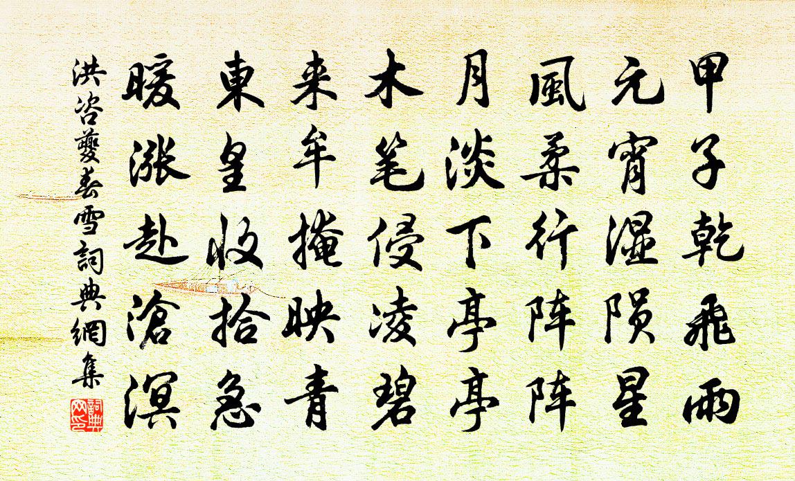 詩詞名句歷史字典書法欣賞書法字典國語詞典說文解字康熙字典古漢語字典標 題 作 者 詩 句 春雪作者:洪咨夔 朝代:宋代春雪原文甲子乾飛雨,元宵濕隕星。風柔行陣陣,月淡下亭亭。木筆侵凌碧,來牟掩映青。東皇收拾急,暖漲赴滄溟。詩詞問答問:春雪的作者是誰?答:洪咨夔問:春雪寫於哪個朝代?答:宋代洪咨夔春雪書法欣賞春雪書法作品詩詞推薦夜興陸游〔宋代〕鶴瘦龜飢與靜宜,更闌徙倚並清池。月當三五初盈夜,河直西南欲落時。浩浩醉歌群鶩起,翩翩孤影角巾欹。飛僊偈頌二百零五首釋正覺〔宋代〕木有火傷身,人有火傷神。木無火不生,人無火不成。地水風火,亦復如是。四大普周同法界,各各普周無障礙。歸夢羅隱〔唐代〕陸海波濤漸漸深,一回歸夢抵千金。路傍草色休多事,牆外鶯聲肯有心。日晚向隅悲斷梗,夜闌澆酒哭知音。貪財文性之惠蛤蜊綠橘牟巘五〔宋代〕二珍胥會到柴關,詩為高情趁早還。海上便如逢若士,橘中應不減商山。可人風味知渠雋,老我形容有許頏。快擊飄風荊溪敖陶孫〔宋代〕船頭月渾雲不度,轉眼光陰遽如許。江湖無地寄風威,短蓑遺作胡旋舞。還將老病入孤舟,碧波為人生白頭。闌中豫章行曹叡〔魏晉〕於斯誠微物。能不懷傷悴。喜宗兄端叟再會武林還暨陽二首方回〔宋代〕我亦七旬老,公為兩歲兄。共知吾輩拙,各賴此心平。江海逃簪紱,乾坤寢甲兵。喜逢又惜別,久幸蔭宗盟。白雲對月張鎮孫〔宋代〕萬山飛翠映瑤空,一抹晴霞淡復濃。何意海風吹不斷,歸鴉飛帶過前峰。朝中措張綱〔宋代〕前年初對大明宮。寒律轉春風。幾度相關歸夢,催成兩鬢霜蓬。山州歲晚,還逢令節,空記前蹤。莫遣酒兵相向,已亥雜詩 99龔自珍〔清代〕能令公慍公復喜,揚州女兒名小雲。初弦相見上弦別,不曾題滿杏黃裙。讀陳黃詩舒邦佐〔宋代〕四海黃太史,百年陳後山。意深識者少,味永到尤難。夜靜參禪悅,天晴窺管斑。心知言未契,猶隔一重關。感情中建除體二首程公許〔宋代〕建大將旗鼓,遴選茲信艱。除授得其人,國勢維泰山。滿朝綬若若,熟謀須萬全。平生想衛霍,摧枯無留難。定論史館凌職方知廣州楊億〔宋代〕番禺出守重,漢殿拜恩初。華省郎官宿,名山太史書。剖符從鎖闥,持節上軺車。左顧金龜印,前驅書隼旟。由來和賈主簿弁九日登峴山孟浩然〔唐代〕楚萬重陽日,群公賞宴來。共乘休沐暇,同醉菊花杯。逸思高秋發,歡情落景催。國人鹹寡和,遙愧洛陽才。欲入山訪參寥預令探梅毛滂〔宋代〕誰作東州客,支公合往還。想無詩外事,聊輟定中閒。拂石須相憩,留雲欲共攀。為尋梅發處,先過向南山。九十用喜雪韻四首吳潛〔宋代〕不用韓非騁說難,異同堅白謾多端。恍迷千界現梵國,駢集萬妃驅女官。要得彘生將罟沒,恐他鼉怪作城看。道人句潘緯〔唐代〕篆經千古澀,影瀉一堂寒。挽趙秋曉黎獻〔宋代〕嶺海英游少,詩書旺氣衰。先生今不起,後死竟安歸。文曲星何暝,靈光賦又非。儒宗真可憾,豈但哭吾私。寄禮部劉郎中令狐楚〔唐代〕一別三年在上京,仙垣終日選群英。除書每下皆先看,唯有劉郎無姓名。漢書引逸詩先秦無名〔先秦〕四牡翼翼。以征不服。親省邊陲。用事所極。九變復貫。知言之選。名句推薦東風吹水日銜山,春來長是閒。李煜《阮郎歸·呈鄭王十二弟》 去年夜半橫江夢,倚危檣,參差曾賦劉辰翁《桂枝香· * 人去》 湘江兩岸花木深,美人不見愁人心。盧仝《有所思》 當斷不斷,反受其亂。司馬遷《史記·齊悼惠王世家》 汴水流,泗水流,流到瓜州古渡頭。吳山點點愁白居易《長相思·汴水流》 朱門沉沉按歌舞,廄馬肥死弓斷弦。陸游《關山月》 毋意,毋必,毋固,毋我。孔子弟子《論語·子罕篇》 故人宿茅宇,夕鳥栖楊園。李白《之廣陵宿常二南郭幽居》 風勁角弓鳴,將軍獵渭城。王維《觀獵》 最是倉皇辭廟日,教坊猶奏別離歌,垂淚對宮娥。李煜《破陣子·四十年來家國》