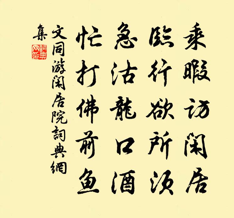 詩詞名句歷史字典書法欣賞書法字典國語詞典說文解字康熙字典古漢語字典標 題 作 者 詩 句 游閒居院作者:文同 朝代:宋代游閒居院原文乘暇訪閒居,臨行欲所須。急沽龍口酒,忙打佛前魚。詩詞問答問:游閒居院的作者是誰?答:文同問:游閒居院寫於哪個朝代?答:宋代文同游閒居院書法欣賞游閒居院書法作品詩詞推薦頭袖釋慧開〔宋代〕四海英靈俱奪下,銅頭鐵額總兜來。莫怪無門施毒手,揭翻腦蓋頂門開。送開守解印馮時行〔宋代〕窮冬自蕭疏,小壘玄雲開。使君擲虎符,行矣何遽哉。父老相與言,未言心已哀。自雲好使君,撫我如嬰孩。天不送別李司直張詠〔宋代〕亭下依微見遠村,亭中離恨若為論。數聲歌罷揚帆去,民吏相看有沾痕。三姝媚(送聖與還越)周密〔宋代〕淺寒梅未綻。正潮過西陵,短亭逢雁。秉燭相看,嘆俊游零落,滿襟依黯。露草霜花,愁正在、廢宮蕪苑。明月河喜寒曾鞏〔宋代〕純陽四時行,無復氣節勁。日火相吐吞,乾離力還並。玄冥失所安,恇怯擅操柄。我行東南野,憒憒若酣醟。喜逢夏五再游慈雲陳著〔宋代〕青山屏繞碧溪灣,不是閒身欲到難。好容易招才隔水,先塋在望莫憑闌。三杯便是人閒福,半榻聊分物外安。扶醉泂酌佚名〔先秦〕泂酌彼行潦,挹彼注茲,可以餴饎。豈弟君子,民之父母。泂酌彼行潦,挹彼注茲,可以濯罍。豈弟君子,民之攸救生寺望春寄暢當李端〔唐代〕東西南北望,望遠悲潛蓄。紅黃綠紫花,花開看不足。今年與子少相隨,他年與子老相逐。蘭陵王(渭城朝雨)彭履道〔宋代〕章台路。西出重城幾步。秦樓曉、花氣未明,一霎空濛洗高樹。行人半倚戶。飛去黃鸝自語。鞦韆小,不系柳條,食菜作二首廖行之〔宋代〕春來日膳菜數本,絕勝杖頭攜百錢。但得園蔬非饉歲,肯令午夢攪清眠。食芹有美吾思獻,采菲無遺利可專。莫笑驀山溪(憶中都)佚名〔宋代〕湖平風穩,行色催津鼓。回首望重城,但滿眼、紅雲紫霧。分香解佩,空記小樓東,銀燭暗,繡簾垂直昵昵憑肩語長短吟邵雍〔宋代〕君子喜淳誠,小人喜欺罔。淳誠歲時長,欺罔日月短。始生書懷三首楊公遠〔宋代〕連年客里度生朝,自草新詩慰寂寥。卻喜窗前風景好,梅花初放雪初消。吟社遞至詩卷足十四韻以答之為梅水村發也趙必象〔宋代〕水月一聯詩,桃杏不敢近,卷錦歸之梅,梅花無可遜。九日黃史鑄〔宋代〕應時寒蕊拆秋含,晃耀良金色可參。似遇道人殷七七,故開佳切日三三。對雪感懷呈翟使君馮中允同年王禹偁〔宋代〕歲暮山城雪,民和歲有秋。深聞五袴詠,聊減貳車愁。凌亂藏溪寺,霏微酒郡樓。凍宜粘酒旆,香好試茶甌。逐吹賦佳人嗅梅圖李行中〔宋代〕蠶眉鴉鬢縷金衣,折得梅花第幾枝。嗅盡余香不回面,思量何事立多時。諸暨道中五首葛紹體〔宋代〕路分杭越號牌頭,行客東西各自謀。總是春晴好天氣,野花山鳥亦風流。水調歌頭 次復初韻曹伯啟〔元代〕山林隱君子,無意事王侯。天戈一日南指,多少賈胡留。不效熊舒龜息,卻羨蠅頭蝸角,我亦滯南州。十載厭奔走賦山茶示陳慧甫三首張明中〔宋代〕春風未晚凌霜葉,夜雨催開紅玉花。絳雪膩酥猶未有,飢蜂瘦蝶漫交加。名句推薦客路相逢難,為樂常不足。蘇軾《送頓起》 不學問,無正義,以富利為隆,是俗人者也。荀子《荀子·儒效》 榴葉擁花當北戶,竹根抽筍出東牆。湯允績《浣溪沙·燕壘雛空日正長》 榮螈,蜥蜴。佚名《爾雅·釋魚》 離恨又迎春,相思難重陳。和凝《菩薩蠻·越梅半拆輕寒里》 從此擾擾攘攘,又不知夢醒何時耳。沈復《浮生六記·坎坷記愁》 君看石芒碭,掩淚悲千古李白《丁督護歌》 女子今有行,大江溯輕舟。韋應物《送楊氏女》 凡兵戰之場,立屍之地,必死則生,幸生則死。吳起《吳子·治兵》 倩何人喚取,紅巾翠袖,搵英雄淚!辛棄疾《水龍吟·登建康賞心亭》