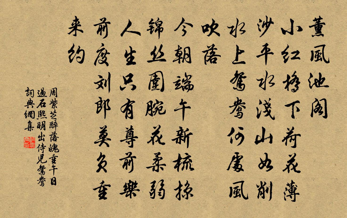 薰風池閣。小紅橋下荷花薄。