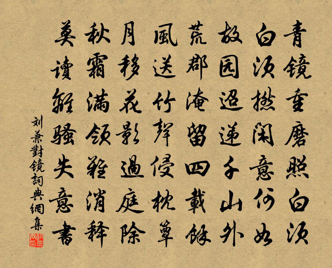 詩詞名句歷史字典書法欣賞書法字典國語詞典說文解字康熙字典古漢語字典標 題 作 者 詩 句 對鏡作者:劉兼 朝代:唐代對鏡原文青鏡重磨照白須,白須撚閒意何如。故園迢遞千山外,荒郡淹留四載余。風送竹聲侵枕簟,月移花影過庭除。秋霜滿領難消釋,莫讀離騷失意書。詩詞問答問:對鏡的作者是誰?答:劉兼問:對鏡寫於哪個朝代?答:唐代問:對鏡是什麼體裁?答:七律劉兼對鏡書法欣賞對鏡書法作品注釋全唐詩:卷766-11詩詞推薦酬樂天見寄元稹〔唐代〕三千里外巴蛇穴,四十年來司馬官。瘴色滿身治不盡,瘡痕刮骨洗應難。常甘人向衰容薄,獨訝君將舊眼看。前日冬曉章上人院皮日休〔唐代〕山堂冬曉寂無聞,一句清言憶領軍。琥珀珠黏行處雪,棕櫚帚掃臥來雲。松扉欲啟如鳴鶴,石鼎初煎若聚蚊。不是人間許月卿六〔宋代〕人間瀟灑柳塘仙,三遣詩來各四篇。安得左螯右杯酒,與君爛醉柳塘邊。登清心閣楊萬里〔宋代〕若遭好月喚登樓,腳力雖慵不自由。上得金梯一回首,冰輪已過樹梢頭。山居詩釋延壽〔宋代〕怡和心境瞭然同,大道無 * 處通。舉世豈懷身後慮,誰人暫省事前空。門開岩石千山月,簾捲溪樓一檻風。贏體蜀國偶題錢〔唐代〕忽憶明皇西幸時,暗傷潛恨竟誰知。佩蘭應語宮臣道,莫向金盤進荔枝。和樂天贈楊秘書元稹〔唐代〕舊與楊郎在帝城,搜天斡地覓詩情。曾因並句甘稱小,不為論年便喚兄。刮骨直穿由苦鬥,夢腸翻出暫閒行。因君明皇帝輓歌鄭丹〔唐代〕律歷千年會,車書萬里同。固期常戴日,豈意厭觀風。地慘新疆理,城摧舊戰功。山河萬古壯,今夕盡歸空。和趙相公登鸛雀樓(樓在河中府,前瞻中條,下瞰大河)殷堯藩〔唐代〕危樓高架泬寥天,上相閒登立彩旃。樹色到京三百里,河流歸漢幾千年。晴峰聳日當周道,秋谷垂花滿舜田。雲路送客山行楊萬里〔宋代〕嶺云為作小涼天,山店重來憶去年。獨樹丹楓誰不見,何須更立萬松前。闕題釋文珦〔宋代〕吾生本不識字,人謂吾詩入微。篇章聊復爾耳,止觀然猶庶幾。送劉尊師應詔詣闕 [一作曹唐詩]曹鄴〔唐代〕仙老閒眠碧草堂,帝書征入白雲鄉。龜台欲署長生籍,鸞殿邀論不死方。紅露想傾延命酒,素煙思爇降真香。五千題小雁屏二首陳氏〔宋代〕蓼淡蘆敧曲水通,幾雙容與對西風。扁舟阻向江鄉去,卻喜相逢一枕中。夔州病中王周〔唐代〕隱几經旬疾未痊,孤燈孤驛若為眠。郡樓昨夜西風急,一一更籌到枕前。紅芍藥王哲〔元代〕唯會做惺惺,便能夸可可。淨清訊息見得那。正好孤眠臥。這子午,致使運轉精神,寶瓶宮、肯教放過。堤防取、曲肱詩二十首白玉蟾〔宋代〕我不生嗔怨玉皇,翠娥無復舞霓裳。如何天上神仙女,染污清都一散郎。頌古十五首釋慧遠〔宋代〕起模畫樣弄精魂,拂跡除蹤更見人。行到山窮山盡處,滿天雲散月華明。卜運算元沈瀛〔宋代〕只管要參禪,又被禪縈繞。好笑西來老禿奴,賺了人多少。你待更瞞咱,咱也今知曉。只這喃喃說底人,又被傍人宿竹瓦舖二首趙蕃〔宋代〕投鞍才近午,置榻已成曛。豈乏道旁店,恐逢樑上君。喜雨三首吳潛〔宋代〕晚上危樓望碧岑,雲煙開闔弄晴陰。見前鷗鷺移心法,何處鴟梟過耳音。好雨十分催暑駕,涼風一宿動秋砧。誰憐名句推薦繁采寡情,味之必厭。劉勰《文心雕龍·情采》 睡里消魂無說處。覺來惆悵消魂誤。晏幾道《蝶戀花·夢入江南煙水路》 迴廊遠砌生秋草,夢魂千里青門道。馮延巳《菩薩蠻·迴廊遠砌生秋草》 非其地而樹之,不生也。劉向《說苑·雜言》 林花著雨胭脂濕,水荇牽風翠帶長。杜甫《曲江對雨》 自春來、慘綠愁紅,芳心是事可可。柳永《定風波·自春來》 莫笑農家臘酒渾,豐年留客足雞豚。陸游《游山西村》 閉門家裡坐,禍從天上來。馮夢龍《醒世恆言·卷十六》 旅客三秋至,層城四望開。杜審言《登襄陽城》 櫪馬苦踡跼,籠禽念遐征。張九齡《秋晚登樓望南江入始興郡路》