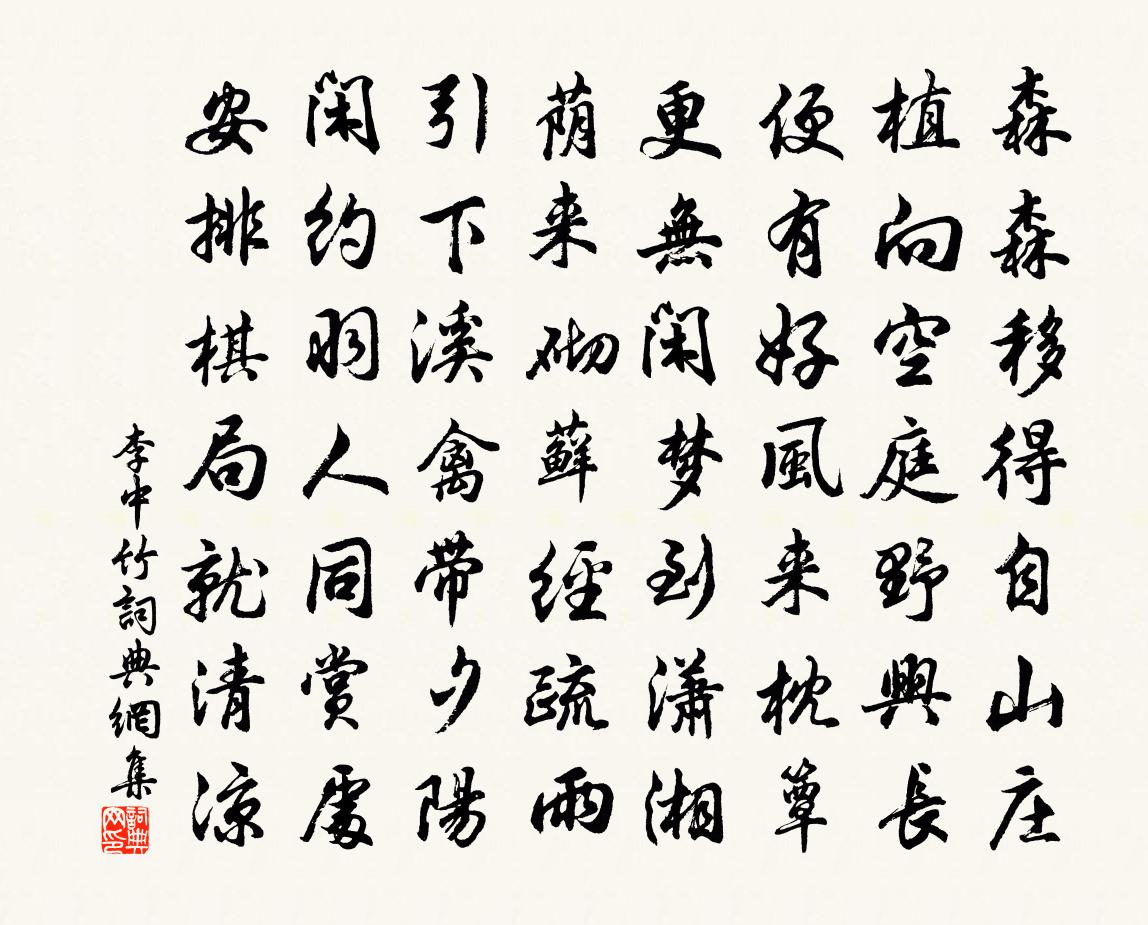 詩詞名句歷史字典書法欣賞書法字典國語詞典說文解字康熙字典古漢語字典標 題 作 者 詩 句 竹作者:李中 朝代:唐代竹原文森森移得自山莊,植向空庭野興長。便有好風來枕簟,更無閒夢到瀟湘。蔭來砌蘚經疏雨,引下溪禽帶夕陽。閒約羽人同賞處,安排棋局就清涼。詩詞問答問:竹的作者是誰?答:李中問:竹寫於哪個朝代?答:唐代問:竹是什麼體裁?答:七律李中竹書法欣賞竹書法作品注釋全唐詩:卷747-80詩詞推薦渡黃河查慎行〔清代〕地勢豁中州,黃河掌上流。岸低沙易涸,天遠樹全浮。梁宋回頭失,徐淮極目收。身輕往來便,自嘆不如鷗。謝賓客輓歌三首梅堯臣〔宋代〕自昔居門下,游觀必許偕。豈將千里別,遂入九泉乖。已恨霜松折,行嗟玉樹埋。蒼生空有望,丹旐不勝懷。曩日次韻詠梅衛宗武〔宋代〕直疑姑射地行仟,綽約如臨几案前。和竹半欹能去俗,與蘭並列盍饒先。林間姿艷同霜潔,窗下精神待月傳。剩欲代人七月十四日生朝范成大〔宋代〕秋入壺中玉宇鮮,芝蘭桃李共熙然。已饒瑞莢明朝滿,先借清蟾一夜圓。北闕紫泥應道路,東山紅袖莫雲煙。如今湘中春興齊己〔唐代〕雨歇江明苑樹幹,物妍時泰恣游盤。更無輕翠勝楊柳,盡覺濃華在牡丹。終日去還拋寂寞,繞池回卻憑欄乾。紅芳貴妃夜遊方岳〔宋代〕鳳鞾又上玉花驄,恩在君王一笑中。三十六宮瑤草碧,不知多少恨春風。樂壽縣君呂氏輓詞二首黃庭堅〔宋代〕歸裝衣楚楚,家世印累累。來作箕帚婦,不忘蘋藻詩。居然成萬古,何啻謁三醫。騎省還秋直,霜侵鬢腳衰。蕭宅二三子贈答詩二十首蝦蟆請客盧仝〔唐代〕凡有水竹處,我曹長先行。願君借我一勺水,與君晝夜歌德聲。贈刻圖書處士二首李劉〔宋代〕信手揮斤出古文,商盤秦鼎失精神。煩君惜取鑄金手,留待人間周伯仁。合崖湫王禹偁〔宋代〕合崖熊何嵌崆,熊湫水何浺熊瀜。瀛污暨積潦,滯泥不朝宗。有時見熊怪,無人薦王公。止可飲麋鹿,未嘗產蛟龍盜發蔡端明墓一首和竹溪韻劉克莊〔宋代〕忠惠松楸過者飲,誰知藏伏禍機深。英魂久向茲埋玉,佛面今為汝削金。下馬三號空抆淚,磔蟆萬段亦甘心。邇來哭林止庵艾性夫〔宋代〕止庵諸老行,今日九原人。頭為談經白,家因好客貧。欲銘貞曜墓,來哭廣成真。俯仰南湖月,瑤琴鎖碧塵。論烏鴉色賈似道〔宋代〕黑色明如黑漆光,白牙繡項皂羅裳。肚皮腿腳皆如玉,內相將軍不可當。虎跑泉董嗣杲〔宋代〕廣福山靈托獸傳,甃邊依約爪痕堅。噬人難負平時口,跑地能開一掬泉。不遇下車馮婦勇,都因脫屣性空禪。大慈過松江范成大〔宋代〕長虹鬥起蛟龍穴,朱碧欄乾夜明滅。太湖三萬六千頃,多少清風與明月?青鷁驚飛白鷺閒,丹楓未老黃蘆折。誰將端午內中帖子詞皇帝閣王珪〔唐代〕沈沈三殿燕華紳,雲覆端門瑞氣新。晝漏未移天正午,此時兼有日重輪。水亭寫興釋文珦〔宋代〕為愛幽亭枕碧流,乘閒於此對沙鷗。荷傾宿雨明珠碎,蒲颭輕風翠帶柔。列岫周遭疑雉堞,斷霞零落似汀洲。無人過趙清獻故居王柏〔宋代〕隱隱數間清獻宅,只在城東竹樹中。龜鶴不知何去處,誰將白鹿繼高風。情詩其一倉央嘉措〔清代〕東山崔嵬不可登,絕頂高天明月生,紅顏又惹相思苦,此心獨憶是卿卿。見周子葉充舍人敘懷楊萬里〔宋代〕三年再謁一番逢,雨舍相望幾訊通。便有好懷安得盡,不知造物底相窮。公今貧賤庸非福,我更清愁惡似公。誤辱名句推薦轡壓馬頭金錯落,鞍籠駝背錦斕班。金德淑《望江南·春睡起》 拜迎長官心欲碎,鞭撻黎庶令人悲。高適《封丘作》 小快害義,小慧害道,小辨害治,苟心傷德。劉向《說苑·談叢》 浪花有意千里雪,桃花無言一隊春。李煜《漁父·浪花有意千里雪》 土花曾染湘娥黛,鉛淚難消。納蘭性德《採桑子·土花曾染湘娥黛》 運籌帷幄之中,制勝於無形司馬遷《史記·七十列傳·太史公自序》 無言暗將紅淚彈。闌珊,香銷輕夢還。納蘭性德《河傳·春淺》 謫仙何處,無人伴我白螺杯。黃庭堅《水調歌頭·遊覽》 穠艷一枝細看取,芳心千重似束。蘇軾《賀新郎·夏景》 一言足以召大禍,故古人守口如瓶,惟恐其覆墜也王永彬《圍爐夜話·第四八則》