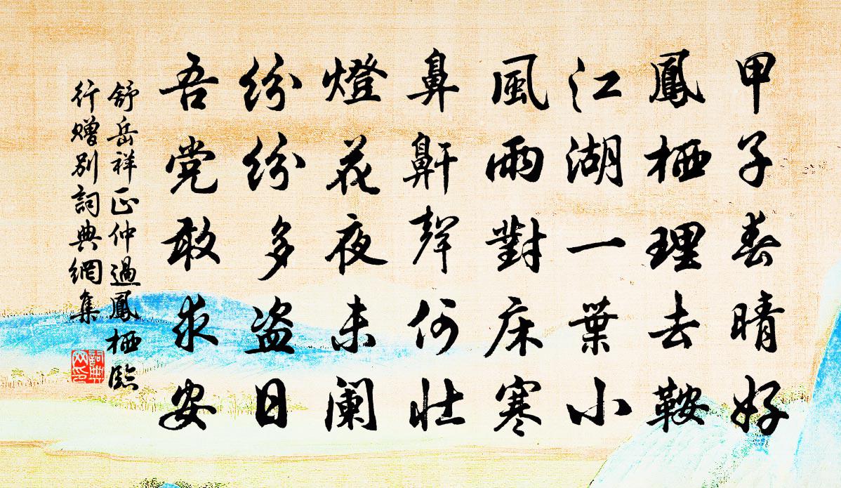 詩詞名句歷史字典書法欣賞書法字典國語詞典說文解字康熙字典古漢語字典標 題 作 者 詩 句 正仲過鳳棲臨行贈別作者:舒岳祥 朝代:宋代正仲過鳳棲臨行贈別原文甲子春晴好,鳳棲理去鞍。江湖一葉小,風雨對床寒。鼻鼾聲何壯,燈花夜未闌。紛紛多盜日,吾黨敢求安。詩詞問答問:正仲過鳳棲臨行贈別的作者是誰?答:舒岳祥問:正仲過鳳棲臨行贈別寫於哪個朝代?答:宋代舒岳祥正仲過鳳棲臨行贈別書法欣賞正仲過鳳棲臨行贈別書法作品詩詞推薦送慧禪人往上江糴麻米釋正覺〔宋代〕石霜拈處最分明,萬萬千千一粒生。歸日飯香穿鼻吼,相呼作舞下堂行。泛舟城南,會者五人,分韻賦詩,得「人皆苦蘇軾〔宋代〕橋上遊人夜未厭,共依水檻立風檐。樓中煮酒初嘗芡,月下新妝半出簾。南郭清游繼顏謝,北窗歸臥等羲炎。人間禪人並化主寫真求贊釋正覺〔宋代〕其離而入,其微而出。一彈指響樓閣開,身現門門千百億。涉世王鎡〔宋代〕甘苦炎涼已遍經,少年磨洗晚年成。腳行險處人都錯,心放寬時事自明。閱世興衰天有眼,隨時消長水無情。一身觀祝少林所藏畫三首趙蕃〔宋代〕蕭寺相從三十日,知君有畫未曾窺。煙雲過眼不收去,恰似憑欄立久時。居擬蘇武四首汪元量〔宋代〕結髮為新婚,恩愛相匹儔。歡樂殊未已,征夫忽西遊。中夜起彷徨,仰視天漢流。眾星正縱橫,皓月澄中州。明發護國寺秋吟八首白玉蟾〔宋代〕竹手擎雲重,松肩荷月高。煙收天地闊,醉目數秋毫。宮詞宋白〔宋代〕春雪輕輕灑露盤,直珠箔外玉勾欄。仙妃未起宮娃小,錯報西樓曉月寒。又寒食日見紫荊花有懷三館項安世〔宋代〕東君老去梨花白,緋桃占斷春顏色。剩紅分付紫荊枝,回首千花盡陳跡。汗青庭外曲池濱,憶昔攢葩繞樹深。不解固城范成大〔宋代〕柳棬涼罐汲泉遙,味苦仍鹹似海潮。卻憶徑山龍井水,一杯洗眼洞層霄。句王鎬〔宋代〕蓬山蘭若入勝概,西寺岩壁饒幽奇。寄題清溪寺蘇轍〔宋代〕清溪鬼谷子,雄辯傾六國。視世無足言,自閉長默默。蘇張何為者,欲竊長短術。學成果無賴,遂為世所惑。顛倒靜夜陳棣〔宋代〕靜夜披黃卷,青藜照五行。恨無知我鮑,空羨起予商。學業心將棘,功名鬢欲霜。此生應自斷,無復問穹蒼。晚日二首楊萬里〔宋代〕日影穿波跳碎銀,波光弄日走寒星。一時飛入船窗里,萬草千花變未停。卜運算元(梅)張元乾〔宋代〕的皪數枝斜,冰雪縈余態。燭外尊前滿眼春,風味年年在。老去惜花深,醉里愁多日煞。冷蕊孤芳底處愁,少個人永王東巡歌·其五李白〔唐代〕二帝巡遊俱未回,五陵松柏使人哀。諸侯不救河南地,更喜賢王遠道來。月夜聞鶴唳劉滄〔唐代〕碧落風微月正明,霜毛似怨有離情。莓苔石冷想孤立,楊柳葉疏聞轉清。空夜露殘驚墮羽,遼天秋晚憶歸程。鳳凰自太和沖雪歸而旅雁數鳴據鞍偶作書贈令權元吳則禮〔宋代〕休論駝背錦模糊,且試腰間金僕姑。邊頭可是憐儂輩,忽作徐熙雪雁圖。江城子(次洪如晦韻)黃機〔宋代〕醉來玉樹倚風前。興吟鞭。指青簾。烏帽低昂,搖兀似乘船。傍路誰家妝束巧,斜映日,半窺簾。尋歡端合趁芳年送俞尉方岳〔宋代〕空山十日雨,茅屋無炊煙。五飢尚可忍,夜讀聲琅然。荒寒數家聚,生理尤堪憐。頻年歲不入,枯草生秋田。春深名句推薦事莫明於有效,論莫定於有證王充《論衡·卷二十三·薄葬篇》 雨蓑煙笠嚴陵近,慚愧清流照客顏查慎行《雨過桐廬》 啜苦咽甘,茶也。陸羽《茶經·五之煮》 塞馬一聲嘶,殘星拂大旗。納蘭性德《菩薩蠻·朔風吹散三更雪》 更深人去寂靜,但照壁孤燈相映。周邦彥《關河令·秋陰時晴漸向暝》 嚴近乎矜,然嚴是正氣,矜是乖氣;故持身貴嚴,而不可矜。王永彬《圍爐夜話·第四三則》 古戍三秋雁,高台萬木風。屈大均《魯連台》 道生一,一生二,二生三,三生萬物。老子《老子·德經·第四十二章》 蜂兒不解知人苦,燕兒不解說人愁。程垓《最高樓·舊時心事》 青山綠水,白草紅葉黃花。白樸《天淨沙·秋》