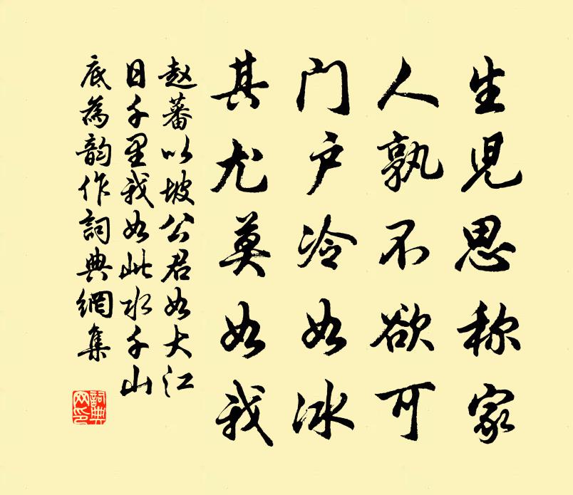 詩詞名句歷史字典書法欣賞書法字典國語詞典說文解字康熙字典古漢語字典標 題 作 者 詩 句 以坡公君如大江日千里我如此水千山底為韻作作者:趙蕃 朝代:宋代原文生兒思稱家,人孰不欲可。門戶冷如冰,其尤莫如我。詩詞問答問:《以坡公君如大江日千里我如此水千山底為韻作》的作者是誰?答:趙蕃問:該詩寫於哪個朝代?答:宋代書法欣賞以坡公君如大江日千里我如此水千山底為韻作書法作品詩文賞析【原題】:以坡公君如大江日千里我如此水千山底為韻作小詩十四首重送在伯蓋深有感於斯句雲詩詞推薦偈頌一百四十一首釋師範〔宋代〕八月十五,月圓當戶。夜半正明,天曉不露。取個眼兮耳必龔,舍個耳兮目必瞽。君不見老長沙弄爪牙,一踏踏倒與三山人夜話(一作與濮陽夏侯吳三山人夜話)李群玉〔唐代〕靜談雲鶴趣,高會兩三賢。酒思彈琴夜,茶芳向火天。兔裘堆膝暖,鳩杖倚床偏。各厭池籠窄,相看意浩然。寄楊緯蘇洵〔宋代〕家居對山木,謂是忘言伴。去鄉不能致,回顧頗自短。誰知有楊子,磊落收百段。揀贈最奇峰,慰我苦長嘆。連城偈十首釋慧暉〔宋代〕玉人深睡澄潭妙,石漢眼開花岳笑。不是今朝新發悟,三生大定了知少。金剛隨機無盡頌一合相理分第三十釋印肅〔宋代〕若能與麽解,無買亦無賣。問著不做聲,咄他雲作怪。蜀童謠佚名〔唐代〕我有一帖藥,其名曰阿魏,賣與十八子。過廣濟圩三首楊萬里〔宋代〕兩渠水夾一堤寬,個是東皇大御園。旋插綠楊能幾日,新枝已自不勝繁。次瞿塘寄呈楊帥沈繼祖〔宋代〕轉柁邊樓隔夕陽,竹枝歌斷送飛航。敢同計事追韓信,每辱揚鞭問葛強。雁影入江三峽冷,猿音呼月五更長。功名四日夜雞未鳴起作陸游〔宋代〕放翁病過秋,忽起作醉墨。正如久蟄龍,青天飛霹靂。雖雲墮怪奇,要勝常憫默。一朝此翁死,千金求不得。醉中贈符載竇庠〔唐代〕白社會中嘗共醉, * 上未相逢。時人莫小池中水,淺處無妨有臥龍。山行行歌十首周文璞〔宋代〕紫陽道院古丹青,恨渠猶畫化胡經。晚香滅沒人歸後,自有天風撼玉鈴。秋日聞蟬陸游〔宋代〕斷角斜陽觸處愁,長亭搔首晚悠悠。世間最是蟬堪恨,送盡行人更送秋。西溪獨泛皎然〔唐代〕道情何所寄,素舸漫流間。真性憐高鶴,無名羨野山。經寒叢竹秀,人靜片雲閒。泛泛誰為侶,唯應共月還。後漢門魏博妻周曇〔唐代〕蘿掛青松是所依,松凋蘿更改何枝。操刀必割腕可斷,磐石徒堅心不移。詩酒陸游〔宋代〕詩酒平生樂,無如老病侵。才衰愁韻險,量退怯杯深。宿露滋金藟,微霜點纈林。呼鷹五陵路,惆悵少年心。偶題陳宓〔宋代〕周黨不受祿,嚴光不為公。皆當建武聖,固守空山窮。丈夫各有志,未必不合中。所以二百載,鴻基擊清風。彼淺宮詞王仲修〔宋代〕瑟瑟西風下建章,御欄無限菊花香。天心亦愛黃金蕊,故遣輕雲護早霜。水調歌/水調蘇軾〔宋代〕我歌月徘徊,我舞影凌亂。水調歌頭(富覽亭永嘉作)姜夔〔宋代〕日落愛山紫,沙漲省潮回。平生夢猶不到,一葉眇西來。欲訊桑田成海,人世了無知者,魚鳥兩相推。天外玉笙杳閏夏六月書事一首劉克莊〔宋代〕自矜力健爪距剛,乘夜陰黑來康莊。東家亡羊西失狗,不覺杲日升扶桑。村農賈勇群捕逐,一農奮戈扼其吭。虎立名句推薦不似當時,小橋沖雨,幽恨兩人知。周邦彥《少年游·朝雲漠漠散輕絲》 更願諸公著意,休教忘了中原。李好古《清平樂·瓜洲渡口》 世所相信,在能行,不在能言。王永彬《圍爐夜話·第九九則》 雍雍新雁咽寒聲,愁恨年年長相似。李煜《謝新恩·冉冉秋光留不住》 君為女蘿草,妾作菟絲花。李白《古意》 江南春盡離腸斷,苹滿汀洲人未歸。寇準《江南春·波渺渺》 打起黃鶯兒,莫教枝上啼。金昌緒《春怨 / 伊州歌》 轡搖銜鐵。蹴踏平原雪。張炎《清平樂·平原放馬》 秋雨一何碧,山色倚晴空。方岳《水調歌頭·平山堂用東坡韻》 山重水複疑無路,柳暗花明又一村。陸游《游山西村》