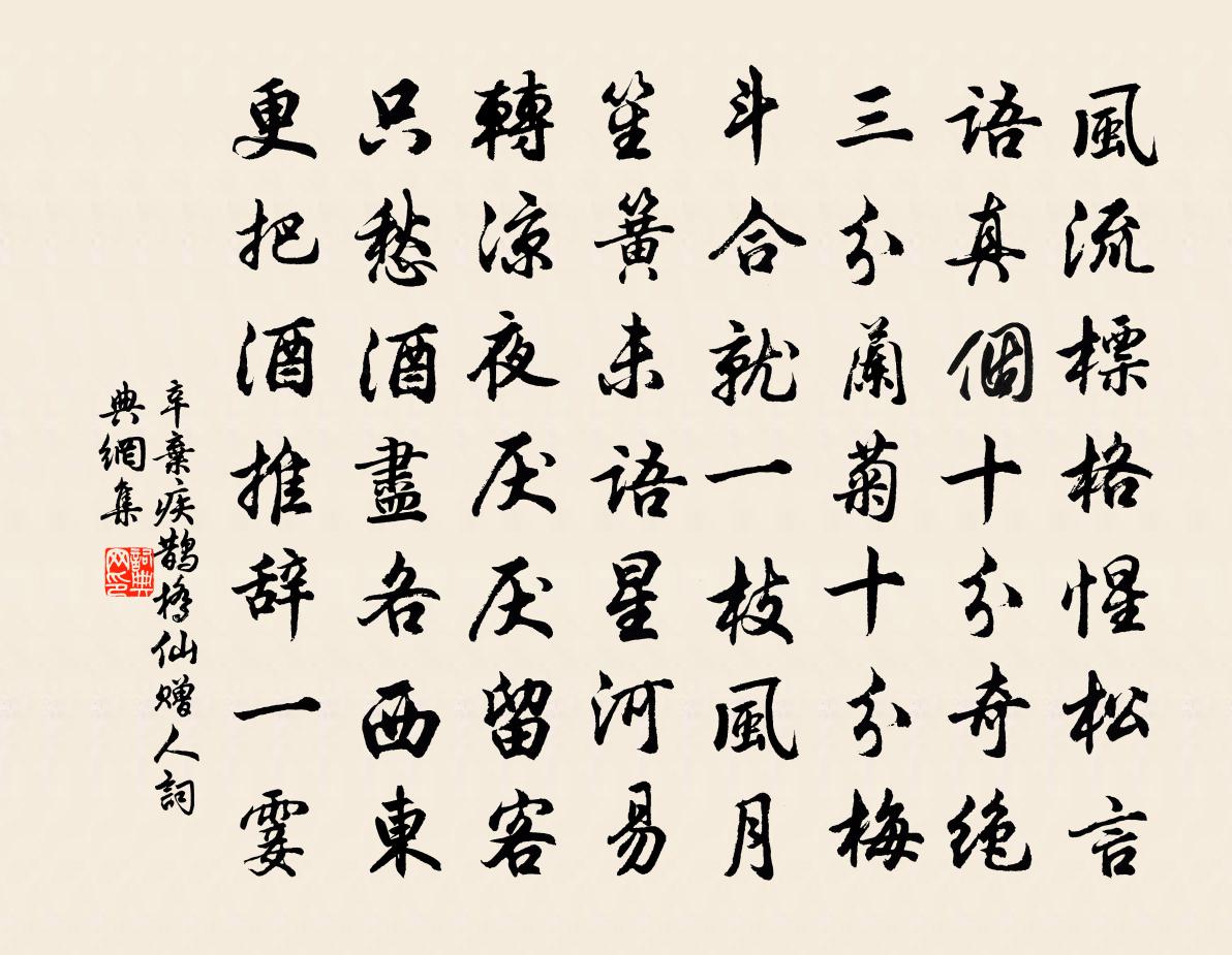 風流標格,惺松言語,真箇十分奇絕。三分蘭菊十分梅,鬥合就、一枝風月。