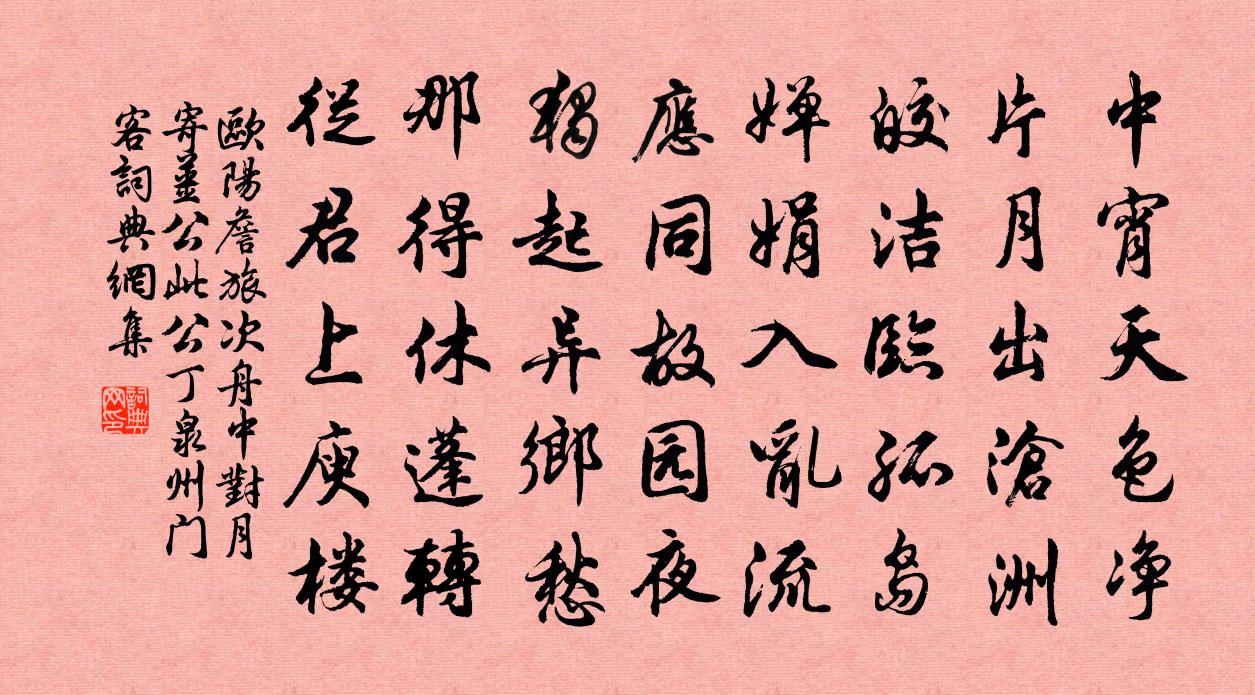 詩詞名句歷史字典書法欣賞書法字典國語詞典說文解字康熙字典古漢語字典標 題 作 者 詩 句 旅次舟中對月寄姜公(此公,丁泉州門客)作者:歐陽詹 朝代:唐代原文中宵天色淨,片月出滄洲。皎潔臨孤島,嬋娟入亂流。應同故園夜,獨起異鄉愁。那得休蓬轉,從君上庾樓。詩詞問答問:《旅次舟中對月寄姜公(此公,丁泉州門客)》的作者是誰?答:歐陽詹問:該詩寫於哪個朝代?答:唐代問:該詩是什麼體裁?答:五律書法欣賞旅次舟中對月寄姜公(此公,丁泉州門客)書法作品注釋全唐詩:卷349-31詩詞推薦壓牆花元稹〔唐代〕野性大都迷里巷,愛將高樹記人家。春來偏認平陽宅,為見牆頭拂面花。贈英公大師釋玄寶〔宋代〕□愛王家草聖蹤,獨於小篆苦留功。何人會得師高意,欲把時風變古風。詠鏡姚合〔唐代〕鑄為明鏡絕塵埃,翡翠窗前掛玉台。繡帶共尋龍口出,菱花爭向匣中開。孤光常見鸞蹤在,分處還因鵲影回。好是蝶戀花(已卯菊節得家書,欲歸未得)柴元彪〔宋代〕去年走馬章台路。送酒無人,寂寞黃花雨。又是重陽秋欲暮。西風此恨誰分付。無限歸心歸不去。卻夢佳人,約我李彭元攜曾吉甫詩卷數帖見過韓元吉〔宋代〕十年松竹暗茶山,君有詩聲舊將壇。食薺誰如東野苦,無氈不奈廣文寒。閉門久詠高軒過,彈鋏今嗟行路難。我亦贈源長老歸自湘中趙師秀〔宋代〕白髮半頭寒未剃,形容清瘦異於常。為人作畫衣添黑,對客圍棋爪甚長。不染世間如菡萏,只留胸次著瀟湘。住山寄雖張子公尚書鄭剛中〔宋代〕昔我初至秦,使旨不到蜀。延首錦城春,千里寄孤目。逮公今出峽,賤跡人羈束。夢看使君船,翩翩轉江曲。西州楊尉三和篇補其二以為答不敢虛盛意李石〔宋代〕湖亭飲酒對新鵝,金錯杯中卷白波。村鼓冬冬更堪憶,畫船照水采菱歌。城外見杏花吳師道〔元代〕曲江二十年前會,回首芳菲似夢中。老去京華度寒食,閒來野水看東風。樹頭絳雪飛還白,花外青天映更紅。聞說花光十梅實相常圓釋師範〔宋代〕黃底自黃青底青,枝頭一一見天真。如今酸澀都忘了,核子如何舉似人。次韻游龍門十絕洪咨夔〔宋代〕不提長劍斬江蛟,便揭修竿釣海鰲。縱老無成猶自許,一溪流水兩山桃。初夏即事簡昞仲李曾伯〔宋代〕夏雲方建漢旗赤,春事已如周轍東。幾度炎涼經嫩綠,一番榮辱委殘紅。杜鵑豈為歸心設,蝴蝶也無清夢通。萬里南坡口號十八首鄭清之〔宋代〕試向清池放小鮮,洋洋圉圉忽攸然。校人真箇知魚樂,殺活機鋒總是禪。喜雨杜甫〔唐代〕南國旱無雨,今朝江出雲。入空才漠漠,灑迥已紛紛。巢燕高飛盡,林花潤色分。晚來聲不絕,應得夜深聞。楊尉三和篇補其二以為答不敢虛盛意李石〔宋代〕前時赤旱要刑鵝,今日平田漲綠波。不特蛟龍偏得意,可知蚯蚓亦能歌。寒望九峰作貫休〔唐代〕九朵碧芙蕖,王維圖未圖。層層皆有瀑,一一合吾居。雨歇如爭出,霜嚴不例枯。世猶多事在,為爾久躊躇。百丈山李忱〔唐代〕大雄真跡枕危巒,梵宇層樓聳萬般。日月每從肩上過,山河長在掌中看。仙峰不間三春秀,靈境何時六月寒。更有丁巳正月二日雞初鳴夢至一山寺名鳳山其尤勝陸游〔宋代〕已窮阿合勝,更作咮軒游。不盡山河大,無根日月浮。吾身元是幻,何物疆名愁?久覓卓庵處,是間應可留。陋居五詠池館汪莘〔宋代〕丈室明松窗,水竹相因依。盧橘冬已花,日出黃蜂飛。愛此禪房幽,不踏市朝機。時觀彼蒼意,常與人願違。彼蒼三和劉克莊〔宋代〕高虛早被方心誤,老退差賢曲學阿。私謚勿煩禮官議,自詩堪付挽郎歌。無衾覆首留名遠,有鍤隨身覺事多。典午名句推薦信命者,亡壽夭;信理者,亡是非;信心者,亡逆順;信性者,亡安危。列子及其弟子《列子·力命》 旦別河橋楊柳風,夕臥伊川桃李月。宋之問《寒食還陸渾別業》 半壁橫江矗起,一舟載雨孤行。歸莊《錦堂春·半壁橫江矗起》 情如之何,暮塗為客,忍堪送君。吳文英《沁園春·送翁賓暘游鄂渚》 不戚戚於貧賤,不汲汲於富貴。陶淵明《五柳先生傳》 黃鶴一去不復返,白雲千載空悠悠。崔顥《黃鶴樓 / 登黃鶴樓》 君子欲訥於言而敏於行。孔子弟子《論語·里仁篇》 曾把梨花,寂寞淚闌乾朱淑真《江城子·賞春》 責人勿厲,小惠或有大得。來俊臣《羅織經·保身卷第七》 意得則舒懷以命筆,理伏則投筆以卷懷劉勰《文心雕龍·養氣》