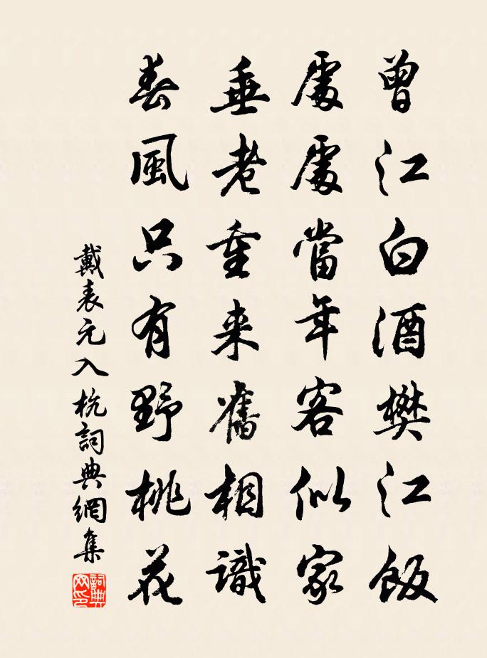 詩詞名句歷史字典書法欣賞書法字典國語詞典說文解字康熙字典古漢語字典標 題 作 者 詩 句 入杭作者:戴表元 朝代:宋代入杭原文曾江白酒樊江飯,處處當年客似家。垂老重來舊相識,春風只有野桃花。詩詞問答問:入杭的作者是誰?答:戴表元問:入杭寫於哪個朝代?答:宋代戴表元入杭書法欣賞入杭書法作品詩詞推薦和僧長吉湖居五題其二水月范仲淹〔宋代〕千尋月腳寒,湖影淨於天。忽如常娥宮,俯仰見嬋娟。更約中秋夕,長津無寸煙。劍門關姜遵〔宋代〕極目雙峰劍倚天,重門因設據高山。城隍盡枕溪岩畔,井邑全居水石間。九日戴復古〔宋代〕今日知何日,他鄉憶故鄉。黃花一杯酒,白髮幾重陽。日晚鴉爭宿,天寒雁叫霜。客中無此醉,何以敵淒涼。偈公六十五首釋鹹傑〔宋代〕虛空可量風可系,無能盡說佛功德。佛功德海既難量,吾君聖壽亦如是。寄李洞秀才齊己〔唐代〕到處聽時論,知君屈最深。秋風幾西笑,抱玉但傷心。野水翻紅藕,滄江老白禽。相思未相識,聞在蜀中吟。熙寧祀皇地祗十二首佚名〔宋代〕曳我黼黻,屐鳥接武。鏘我珩璜,降升圉圉。其將肆兮,既日不侮。其終徹兮,恭欽惟主。和兗弟游湖上諸寺二首蘇頌〔宋代〕叢林四百見州經,盡在錢塘舊縣坰。十里湖光連北郭,千尋岩翠繞南屏。松間幽逕迎冠蓋,竹里飛泉入戶庭。勝境次韻鄭總乾方岳〔宋代〕過從一笑酒瓶空,不是樵翁即釣翁。偶種竹成俱崛強,旋移花活尚神通。前身已化歸遼鶴,醉帖猶傳戲海鴻。新貴和尹懋秋夜遊灉湖張說〔唐代〕坐嘯人事閒,佳游野情發。山門送落照,湖口升微月。林尋猿狖居,水戲黿鼉穴。朔風吹飛雁,芳草亦云歇。頌證道歌證道歌釋印肅〔宋代〕我師得見然燈佛,歷劫有為從此沒。心心相印了無生,為君幾下蒼龍窟。蔡州壼公觀劉道士蘇轍〔宋代〕恩潁求歸今幾時,布衣猶在老劉師。龍章舊有世人識,蟬蛻惟應野老知。昔葬衣冠今在否,近傳音問不須疑。曾聞霜天曉角(壽張古岩)劉辰翁〔宋代〕明年七十。歌彩橋仙夕。見說嚴君平道,年年是、月初一。同時同里密。後今今又昔。便做伏生年紀,也未到、蹇南徐春日懷古楊乘〔唐代〕六代驕奢地,三春物象繁。靈湖通漲海,天塹隔中原。曉渡高帆駛,陰風巨艦翻。旌旗西日落,戈甲夏雲屯。豹變和李公擇赴歷下道中雜詠十二首 梁山泊〈次蘇轍〔宋代〕近通沂泗麻鹽熟,遠控江淮粳稻秋。粗免塵泥污車腳,莫嫌菱蔓繞船頭。謀夫欲就桑田變,客意終便畫舫游。愁思出郭陳必復〔宋代〕泥深留屐齒,出郭少人行。遠磬含餘韻,疏簾透薄明。浮雲時書異,流水世情輕。唯讀南華了,年來悟養生。志堅師元稹〔唐代〕嵩山老僧披破衲,七十八年三十臘。靈武朝天遼海征,宇宙曾行三四匝。初因怏怏薙卻頭,便繞嵩山寂師塔。淮西試問陳杰〔宋代〕試問屋藏書,何如斛貯珠。奄奄投閣老,凜凜墜樓姝。雨中花慢 仆自騷屑游,冷 宛轉,十有餘年姬翼〔元代〕垂顧蓬蓽,就舅氏,兼庇玉屬無恙,惘然猶疑夢間,於是亂道雨中花詞二十年間,曾記對語,山陽森碧琅*。談笑臥病旬日未己閒書所感黃宗羲〔清代〕此地那堪再度年,此身慚愧在燈前。夢中失哭兒呼我,天末招魂鳥降筵。好友多從忠節傳,人情不盡絕交篇。於今八聲甘州(送春韻)劉辰翁〔宋代〕看飄飄、萬里去東流,道伊去如風。便錦纜危潮,青山御宿,煙雨啼紅。愁是明朝酒醒,聽著返魂鍾。留得春如故名句推薦行有不得者,皆反求諸己,其身正而天下歸之。孟子《孟子·離婁章句上·第四節》 梧桐葉上,點點露珠零。尹鶚《臨江仙·深秋寒夜銀河靜》 我來圯橋上,懷古欽英風。李白《經下邳圯橋懷張子房》 樂殊貴賤,禮別尊卑。周興嗣《千字文·全文》 菩提本無樹,明鏡亦非台。惠能《菩提偈》 平明日出東南地,滿磧寒光生鐵衣。李益《度破訥沙二首·其二 / 塞北行次度破訥沙》 白梅懶賦賦紅梅,逞艷先迎醉眼開。曹雪芹《詠紅梅花得“梅”字》 蘭葉春葳蕤,桂華秋皎潔。張九齡《感遇十二首·其一》 天將暮,雪亂舞,半梅花半飄柳絮。馬致遠《壽陽曲·江天暮雪》 物雖小,勿私藏。苟私藏,親心傷。李毓秀《弟子規·入則孝》