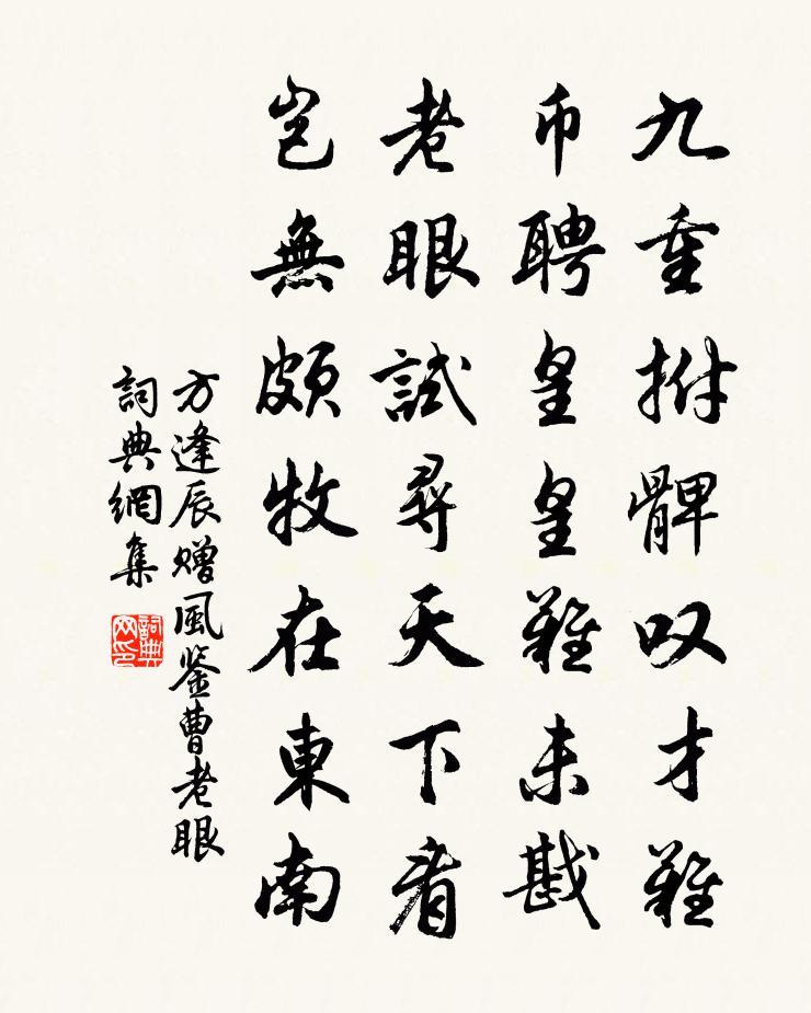 詩詞名句歷史字典書法欣賞書法字典國語詞典說文解字康熙字典古漢語字典標 題 作 者 詩 句 贈風鑒曹老眼作者:方逢辰 朝代:宋代贈風鑒曹老眼原文九重拊髀嘆才難,幣聘皇皇難未戡。老眼試尋天下看,豈無頗牧在東南。詩詞問答問:贈風鑒曹老眼的作者是誰?答:方逢辰問:贈風鑒曹老眼寫於哪個朝代?答:宋代方逢辰贈風鑒曹老眼書法欣賞贈風鑒曹老眼書法作品詩詞推薦西湖雜詩 之二沈曾植〔清代〕湖上波光罨雪光,張祠清絕勝劉莊。仙人自愛樓居好,六面山屏曉鏡妝。秦樓月/憶秦娥陳三聘〔宋代〕光風薄。楊花欲謝春應覺。春應覺。一庭紅葉,粉花吹落。冶遊無復飛紅索。憑高獨上湖邊閣。湖邊閣。黃昏獨倚青蓮山楊塤〔宋代〕撥開瑟瑟青蘿帳,尋得磷磷白石梯。更入雲霞最深處,忘機數日遂幽棲。勉師愚等石介〔宋代〕不行一千里,安得為良馬。不連十五城,安得稱善價。汝皆有血氣,非如木偶者。撮發號男兒,肯甘在人下。汝不苕溪戴表元〔宋代〕六月苕溪路,人看似若耶。漁罾掛棕樹,酒舫出荷花。碧水千塍共,青山一道斜。人間無限事,不厭是桑麻。神泉道中寄李道明李新〔宋代〕野鳥啼春稍沉空,馬蹄何故萬山中。樹連土雨微茫綠,花入麥秋零亂紅。北阮不知貧氣味,謫仙元有舊家風。正須歸途旅思孫嵩〔宋代〕虛市斜陽早掩門,蕭條州縣抵深村。殘梅與客迎新歲,明月隨人作上元。贈彥先李處權〔宋代〕此地堪營屋,何山更採薇。怪松拏石出,好鳥傍人飛。衰相年來見,幽尋亂後稀。郎君似冰玉,令我亦忘歸。采菱歌鮑照〔南北朝〕思今懷近憶。望古懷遠識。望古復懷今。長懷無終極。劉項祠胡仲弓〔宋代〕二祠相望幾春秋,祀了龍顏祀沐猴。章戴溪南梨嶺北,不知何處是鴻溝。聽鶯曲韋應物〔唐代〕東方欲曙花冥冥,啼鶯相喚亦可聽。乍去乍來時近遠,才聞南陌又東城。忽似上林翻下苑,綿綿蠻蠻如有情。欲囀唐樂府十首送征夫劉駕〔唐代〕昔送征夫苦,今送征夫樂。寒衣縱攜去,應向歸時著。天子待功成,別造凌煙閣。少年行四首·其三令狐楚〔唐代〕弓背霞明劍照霜,秋風走馬出鹹陽。未收天子河湟地,不擬回頭望故鄉。送崔錄事赴宣城高適〔唐代〕大國非不理,小官皆用才。欲行宣城印,住飲洛陽杯。晚景為人別,長天無鳥回。舉帆風波渺,倚棹江山來。羨爾初冬小園寓目范成大〔宋代〕獨樹喬松色,閒雲淡落暉。新霜黃橘重,久雨翠梧稀。暗雀嗚還啄,高鳥定更飛。敝貂猶故在,卒歲免無衣。初食筍呈座中李商隱〔唐代〕嫩籜香苞初出林,於陵論價重如金。皇都陸海應無數,忍剪凌雲一寸心。泛舟至竹洲呂祖儉〔宋代〕湖光拍天浮竹洲,隱然一面城之幽。中有高士披素裘,我欲從之恐淹留。探囊百金辦扁舟,又煩我友著意修。微風送李惟肖尉尤溪陳襄〔宋代〕朝廷厭煩苛,往還按察詔。四方小大官,政惡日無譙。悲哉窮遠民,天耳不可嘂。訟爭細毛髮,吏議舉烽爝。追胥金陵池上蘇泂〔宋代〕府園秋後一池荷,綠蓋縱橫百柄多。折盡再生錢樣葉,卻疑天氣復清和。贈畫僧鑒老王大受〔宋代〕高擊芒鞋聽學歸,一丘一壑自心知。小窗閒憶經行處,貌得疏煙晚照時。名句推薦才大者,望自大。人所服,非言大。李毓秀《弟子規·泛愛眾》 孫郎微笑,坐來聲噴霜竹黃庭堅《念奴嬌·斷虹霽雨》 老母與子別,呼天野草間。李白《豫章行》 青女素娥俱耐冷,月中霜里斗嬋娟。李商隱《霜月》 爭教清淚不成冰?好處便輕別。納蘭性德《好事近·簾外五更風》 細腰爭舞君沉醉,白日秦兵天下來。李涉《楚宮怨二首·其一》 資之深,則取之左右逢其原。孟子《孟子·離婁章句下·第十四節》 雙星何事今宵會,遺我庭前月一鉤。德容《七夕二首·其一》 天地玄黃,宇宙洪荒。周興嗣《千字文·全文》 人之足傳,在有德,不在有位王永彬《圍爐夜話·第九九則》