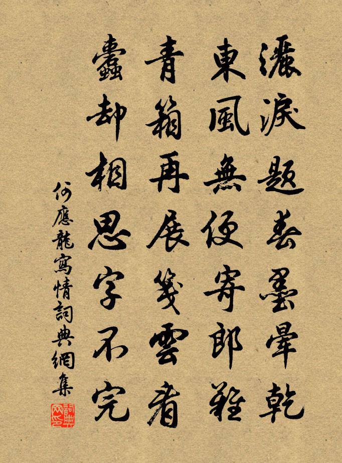 詩詞名句歷史字典書法欣賞書法字典國語詞典說文解字康熙字典古漢語字典標 題 作 者 詩 句 寫情作者:何應龍 朝代:宋代寫情原文灑淚題春墨暈乾,東風無便寄郎難。青箱再展箋雲看,蠹卻相思字不完。詩詞問答問:寫情的作者是誰?答:何應龍問:寫情寫於哪個朝代?答:宋代何應龍寫情書法欣賞寫情書法作品詩詞推薦和答孫推官蔡襄〔宋代〕擬將身計入扁舟,縱得三公不黑頭。病體已休輕賦鵩,機心如動輒驚鷗。強看吳野江山醉,肯為春風花草愁。所向留別妻蘇武〔兩漢〕結髮為夫妻,恩愛兩不疑。歡娛在今夕,嬿婉及良時。征夫懷遠路,起視夜何其?參辰皆已沒,去去從此辭。行役八月十四日夜刀坑口對月奉寄王子難子聞適用黃庭堅〔宋代〕去年對月廬陵郡,醉留歌舞蹋金沙。今年今夕千峰下,新磨古鑒動菱花。寒藤老木被光景,深山大澤皆龍蛇。西風賀兄得節寄詩二首姜邦佐〔宋代〕千年華表插高空,歸日呼聲徹九重。城郭人民儼如昨,不應忘卻白雲峰。送苗郎中出漕江西宋庠〔宋代〕幾夕燒熏歇被綾,東南使部望前旌。武泥給板言如綍,漢庾臨波粟似京。露橘千頭豐歲籍,江鱸百尾飫盤鯖。計籌金剛隨機無盡頌不受不貪分第二十八釋印肅〔宋代〕古今人易老,無異霜凋草。本根依舊青,不解尋元討。宮怨胡仲參〔宋代〕淚粉羞臨寶鑑前,淡妝爭似舊嬋娟。一言曾忤君王意,閉在長門十五年。相和歌辭。怨詩劉元濟〔唐代〕玉關芳信斷,蘭閨錦字新。愁來好自抑,念切已含顰。虛牖風驚夢,空床月厭人。歸期儻可促,勿度柳園春。送孝顯彥博昆仲赴補仍用前韻趙蕃〔宋代〕清時擇士豈充員,大辟賢關務遠延。一日擅場稱舉子,百年匡國是儒先。為言行役加餐飯,仍祝濤江穩放船。意愜過金陵四首蘇泂〔宋代〕高資店裡主人婆,萬福官人問訊和。安穩在家能幾日,別時不似見時多。安素午睡錢時〔宋代〕禾黍秋相近,溪山日自長。午窗千嶂雨,幽夢一簾香。過秦樓(和美成韻)趙崇嶓〔宋代〕隱枕輕潮,拂塵疏雨,幽夢似真還斷。鶯雛燕婉,依約年時,花下試翻歌扇。憔悴鬢 * ,慢掠輕絲,柳風如箭暮發七里灘夜泊嚴光台下方乾〔唐代〕一瞬即七里,箭馳猶是難。檣邊走嵐翠,枕底失風湍。但訝猿鳥定,不知霜月寒。前賢竟何益,此地誤垂竿。再和項安世〔宋代〕望海亭前句遠,蓬萊閣上詩寒。老子向來椽筆,要題吉日斯乾。賜道人鄭隱歸山宋真宗〔宋代〕盡日臨流看水色,有時隱几聽松聲。遍游萬壑成嘉遁,偶出千峰翫治平。送劉五司馬赴任硤州兼寄崔使君白居易〔唐代〕位下才高多怨天,劉兄道勝獨恬然。貧於楊子兩三倍,老過榮公六七年。筆硯莫拋留壓案,簞瓢從陋也銷錢。郡丞奉使契丹道中答劉原父桑乾河見寄之作歐陽修〔宋代〕憶昨初受命,同下紫宸朝。問君當何之,笑指北斗杓。共念到幾時,春風約回鑣。所持既異事,前後忽相遼。歲月黃庭畫贊黃庭堅〔宋代〕君誦黃庭內外篇,本欲洗心不求仙。夜眎片月墮我前,黑氣剝盡朝日鮮。一暑一寒久自堅,體中風行上通天,亭亭挽范氏孺人二首劉宰〔宋代〕蘭砌秋風早,萊衣晚歲孤。天乎畛劬瘁,季也足歡娛。得算幾中壽,生孫競遠圖。平生尤喜事,落日澹平蕪。西岩寺於石〔宋代〕丹崖翠壁數千尺,絕頂僧房三四間。老樹倚岩岩倚屋,白雲飛去又飛還。名句推薦槐柳野橋邊,行塵暗馬前。齊己《送人游塞》 似醉煙景凝,如愁月露泫。崔護《五月水邊柳》 淇則有岸,隰則有泮。佚名《氓》 浮生長恨歡娛少。宋祁《玉樓春·春景》 水上遊人沙上女,回顧,笑指芭蕉林里住。歐陽炯《南鄉子·畫舸停橈》 還怕兩人俱薄命,再緣慳、剩月零風裡。納蘭性德《金縷曲·亡婦忌日有感》 覆巢毀卵,而鳳皇不翔;刳胎焚夭,而麒麟不至。劉向《戰國策·趙四·秦攻魏取寧邑》 香醪欲醉茱萸節,壯志還為出塞歌。石茂華《九月九日登長城關》 永夜角聲悲自語,客心愁破正思家。汪元量《望江南·幽州九日》 雨後雙禽來占竹,秋深一蝶下尋花。文同《北齋雨後》