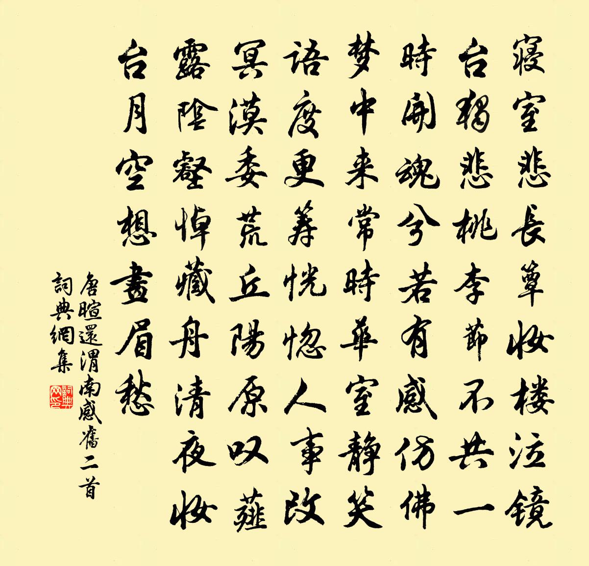 詩詞名句歷史字典書法欣賞書法字典國語詞典說文解字康熙字典古漢語字典標 題 作 者 詩 句 還渭南感舊二首作者:唐暄 朝代:唐代還渭南感舊二首原文寢室悲長簟,妝樓泣鏡台。獨悲桃李節,不共一時開。魂兮若有感,仿佛夢中來。常時華室靜,笑語度更籌。恍惚人事改,冥漠委荒丘。陽原嘆薤露,陰壑悼藏舟。清夜妝檯月,空想畫眉愁。詩詞問答問:還渭南感舊二首的作者是誰?答:唐暄問:還渭南感舊二首寫於哪個朝代?答:唐代問:還渭南感舊二首是什麼體裁?答:五律唐暄還渭南感舊二首書法欣賞還渭南感舊二首書法作品注釋全唐詩:卷770-5詩詞推薦王昭君(一作沈佺期詩)宋之問〔唐代〕非君惜鸞殿,非妾妒娥眉。薄命由驕虜,無情是畫師。嫁來胡地日,不並漢宮時。辛苦無聊賴,何堪上馬辭。孤鷹 鳴鶴餘音卷之一馬鈺〔元代〕苦海為人,隨波逐浪,茫茫甚日休期。為酒色財氣。一向粘惹,瞞心昧己。不算前程,幼軀有限,待作千年之計。野興陸游〔宋代〕鬢邊莫笑久星星,造物常鍾我輩情。每帶餘酲蹋花影,又和殘夢聽鶯聲。軒窗風過書籤亂,洲渚潮生釣艇橫。韓子陳伯固使君禱雨得雪為作陳造〔宋代〕妖魃肆虐挻餘災,麥田未麥空黃埃。饑民忍飢守鄉土,倚公力挽和氣回。梵筵告旱初拜手,補陀仙人已回首。楊枝三月八日百五節林敬輿攜酒約盛元仁戴帥初方方回〔宋代〕第五橋通曲港船,直搖春水到門前。休官久作漁竿客,扶老來尋鶴氅仙。疇曩歡娛如昨日,今吾衰颯最高年。舊墳苦熱三首郭印〔宋代〕宇宙何蒸溽,山川久旱乾。浹膚惟汗雨,脫腕是冰紈。永晝固難避,終宵寧暫安。三農憂稼穡,無物可輸官。再和虞儔〔宋代〕天時人事日相煎,否泰俄驚在眼前。積閏盡歸冬十月, * 一似太初年。聯珠合璧猶重見,華發蒼顏益可憐。三撫嘉禾百詠淨相佳李張堯同〔宋代〕地重因名果,如分沆瀣漿。傷心吳越戰,未敢盡情嘗。紅茶花司空圖〔唐代〕景物詩人見即夸,豈憐高韻說紅茶。牡丹枉用三春力,開得方知不是花。茂洪赴漕試歸苦目疾張鎡〔宋代〕潘侯兩鬢光如月,盡日看山常拄笏。經營菽水才有餘,赴調地飯店況乾謁。少年習氣秋來發,羅藝文場肆猖獗。楊扇子詩李石〔宋代〕月下九九仙,雲間七七泉。喚起 * 子,跨鶴飛上天。萬年春 夢得一枝白筆馬鈺〔元代〕昨夜山侗,夢遊蓬島逢鍾呂。文房數。一枝純素。不讓蒙恬做。遠勝江淹,五色何曾污。相宜處。書心開悟。堪應熙寧以後享齋五首真宗〔宋代〕進退有容,服章有備。匪亟匪遲,降登孔時。七言樂語聯句顏真卿〔唐代〕苦河既濟真僧喜, ——李崿新知滿座笑相視。 ——顏真卿戍客歸來見妻子, ——皎然學生放假偷向市。 —奉和聖制麟德殿燕百僚應制常袞〔唐代〕雲辟御筵張,山呼聖壽長。玉闌豐瑞草,金陛立神羊。台鼎資庖膳,天星奉酒漿。蠻夷陪作位,犀象舞成行。網已和楊縣尉五首陳宓〔宋代〕昧者不自覺,役役塵土中。丈夫意有在,肯與兒輩同。毫錐可濟世,不論汗馬功。得君起予句,使我銘諸胸。折山道中六言寄涌翠道人朱槔〔宋代〕既有女名靈照,何妨自作維摩。要見諸天辦供,問他風月山河。即筆釋紹嵩〔宋代〕小閣稱幽隱,群峰競秀尖。村舂雨外急,秋色望中添。世事已黃髮,忘情付黑甜。從渠造物巧,未怪老夫潛。宿長蘆寺下四絕鄭剛中〔宋代〕來帆風飽自行快,去將浪高知進難。舟子勿生淹泊恨,偶然遲速我殊安。奉送自強明府之官崑山曾逮〔宋代〕吳中大縣數崑山,心定庭空亦不難。多事要將無事治,萬人須作一人看。床頭有易何妨讀,琴上無弦不用彈。況是名句推薦車轔轔,馬蕭蕭,行人弓箭各在腰。杜甫《兵車行》 師也者,教之以事而喻諸德者也戴聖《禮記·文王世子》 長安大雪天,鳥雀難相覓。張孜《雪詩》 叢菊兩開他日淚,孤舟一系故園心。杜甫《秋興八首·其一》 啜苦咽甘,茶也。陸羽《茶經·五之煮》 歲暮鋤犁傍空室,呼兒登山收橡實。張籍《野老歌 / 山農詞》 事父母幾諫,見志不從,又敬不違,勞而不怨。孔子弟子《論語·里仁篇》 惟有南來無數雁,和明月、宿蘆花。鄧剡《唐多令·雨過水明霞》 牆角數枝梅,凌寒獨自開。王安石《梅花 / 梅》 陌上深深,依舊年時轍。王國維《蝶戀花·滿地霜華濃似雪》
