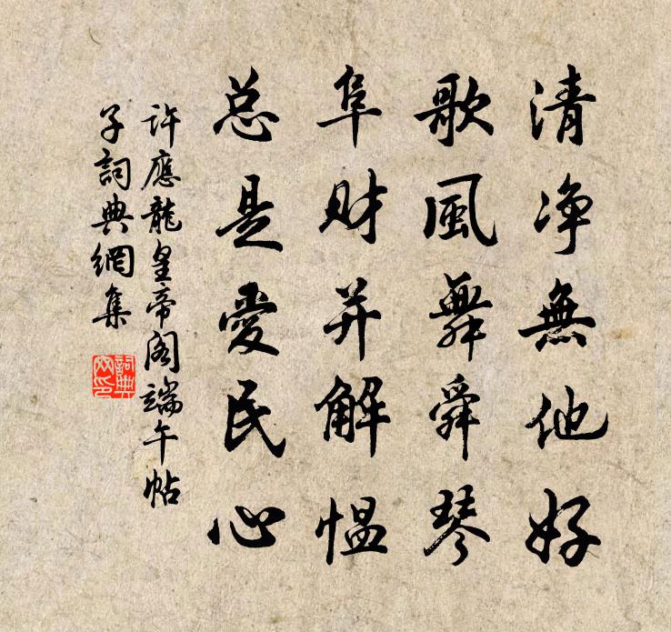 詩詞名句歷史字典書法欣賞書法字典國語詞典說文解字康熙字典古漢語字典標 題 作 者 詩 句 皇帝閣端午帖子作者:許應龍 朝代:宋代皇帝閣端午帖子原文清淨無他好,歌風舞舜琴。阜財並解慍,總是愛民心。詩詞問答問:皇帝閣端午帖子的作者是誰?答:許應龍問:皇帝閣端午帖子寫於哪個朝代?答:宋代許應龍皇帝閣端午帖子書法欣賞皇帝閣端午帖子書法作品詩詞推薦雜詠一百首班婕妤劉克莊〔宋代〕妾命薄如紙,君恩冷似冰。生當事長信,死願奉延陵。分龍吟舒岳祥〔宋代〕五月二十分龍雨,今日霏微如下土。前日何日何霖霪,正是分龍乃如許。有餘不足相乘除,天道人事元非疏。何龍送僧機素還東嘉林逋〔宋代〕康樂遺蹤地,言歸已有期。江流富春闊,山沓括蒼危。錫潤飛晴靄,羅寒濾曉澌。東岩有幽石,應許折松枝。蘭陵王(題筆架山)葛長庚〔宋代〕三峰碧。縹渺煙光樹色。高寒處,上有猿啼,鶴唳天風夜蕭瑟。山形似筆格。人道江南第一。游紫觀,月殿星壇,感嘆三首方回〔宋代〕浪說千軍戰,空登二紀名。乾坤恩甚大,毫髮事無成。長日柴門掩,閒人俗眼輕。竊花無力護,笑道近專城。春蔬張耒〔宋代〕苣甲如刀圭,蔞蒿未生葉。紫芥綠如指,蕪菁苗過茁。先生家四壁,食案稍羅列。芬芳芼姜芥,每徹有餘啜。公侯上巳酒邊即事示女沖二首陳著〔宋代〕女沖踏露折棠花,引得兒童哄一家。說道今朝修禊日,暫拋針線答年華。題茶陵縣門伊用昌〔唐代〕茶陵一道婦長街,兩畔栽柳不栽槐。夜後不聞更漏鼓,只聽錘芒織草鞋。薺花董嗣杲〔宋代〕挑根擇葉古牆陰,雨後青腴有客尋。又見開花如雪處,不知遍野已春深。山殽難入膏粱味,冰室偏鍾採擷心。荼苦謝胡掾惠詩張栻〔宋代〕一見知心事,旋觀慰月評。慈祥漢循吏,儒雅魯諸生。莫作周南嘆,終期冀北程。新詩連夜讀,梅影伴孤清。懷紹興間往還諸公陸游〔宋代〕早歲從諸傑,森然盡國華。辭工出月脅,筆健拔鯨牙。道在窮何憾,年徂生有涯。湖山元不改,老淚濕風沙。送李儋韋應物〔唐代〕別離何從生,乃在親愛中。反念行路子,拂衣自西東。日昃不留宴,嚴車出崇墉。行游非所樂,端憂道未通。春野立秋後一日涼風蕭瑟便若感人宋庠〔宋代〕倏忽徂炎罷,驚秋自此辰。殘蜩空愛露,孤扇欲辭人。嵩少千尋嶺,滄浪萬里津。如何一乘興,煙策弄飈輪。早赴東寺行香仇遠〔宋代〕衝風冒雨過南橋,馬上聞鍾覺寺遙。客發頓驚秋信早,飛蓬落葉兩蕭蕭。滿庭芳曹勛〔宋代〕秋色澄暉,蟾波增瑩,桂華宮殿香凝。夜涼天半,橫管度新聲。應是齊吹萬指,岩谷震、石裂霜清。天如水,飛雲臨濟和尚贊釋法薰〔宋代〕空拳捺定,喝聲雷震。閃電光中,要分邪正。駕大脫空,賣無主贓。似恁落賴心腸,至今卻有兒郎。謝襄陽陶宰惠靖節先生編年大本陳造〔宋代〕陶翁清節人可追,陶詩妙處吾所師。百篇昭昭揭日月,行雲流水無定姿。顛倒後前昧甲子,可忍白璧猶小疵。三家酬汪將軍攜游白雲寺孫嚞〔宋代〕將軍恆愛客,載酒喜行游。山殿晴雲浴,天香靜磬浮。嘉蓮艷寶水,甘露降靈楸。徵古一為瑞,清修思更幽。雜曲歌辭春遊曲三首張仲素〔唐代〕煙柳飛輕絮,風榆落小錢。蒙蒙百花里,羅綺競鞦韆。騁望登香閣,爭高下砌台。林間踏青去,席上意錢來。行樂過葛天民新居周文璞〔宋代〕為憶空山雨,因嗟短鬢霜。幅巾終日仄,侍女古時妝。烏臼殘林外,丹砂舊井旁。不留禪月畫,只踞淨名床。湖鏡名句推薦一苗露水一苗草,一朝天子一朝臣。佚名《增廣賢文·下集》 西施若解傾吳國,越國亡來又是誰。羅隱《西施》 或飲食,或坐走。長者先,幼者後。李毓秀《弟子規·出則弟》 擢擢當軒竹,青青重歲寒。呂太一《詠院中叢竹》 地下千年骨,誰為輔佐臣。戎昱《詠史 / 和蕃》 井中之無大魚也,新林之無長木也。呂不韋《呂氏春秋·覽·有始覽》 昔聞洞庭水,今上岳陽樓杜甫《登岳陽樓》 敏捷詩千首,飄零酒一杯。杜甫《不見》 來歲長安春事早,勸杏花、斷莫相思死。龔自珍《金縷曲·癸酉秋出都述懷有賦》 遠夢歸侵曉,家書到隔年。杜牧《旅宿》