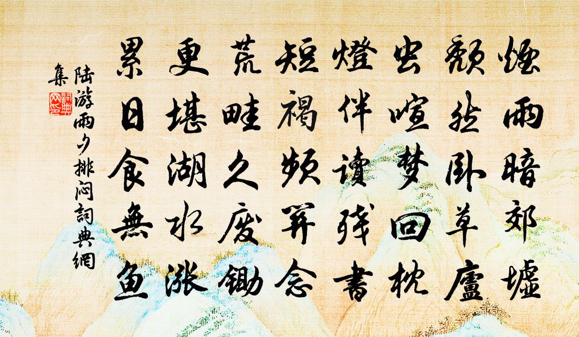 - 清淚浥羅巾,各自消魂,一江離恨恰平分。陸游《浪淘沙·丹陽浮玉亭席上作》