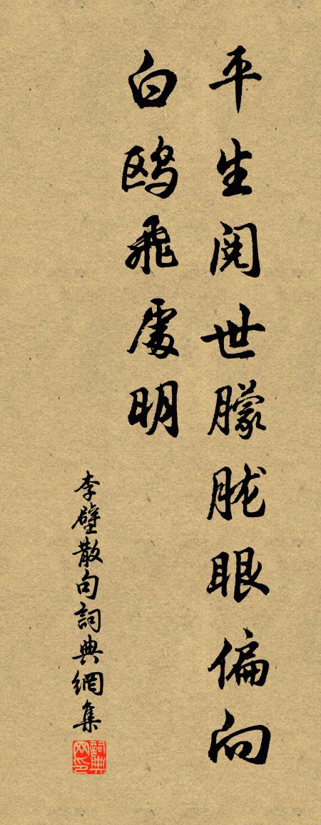 詩詞名句歷史字典書法欣賞書法字典國語詞典說文解字康熙字典古漢語字典標 題 作 者 詩 句 句作者:李壁 朝代:宋代句原文平生閱世朦朧眼,偏向白鷗飛處明。詩詞問答問:句的作者是誰?答:李壁問:句寫於哪個朝代?答:宋代李壁句書法欣賞句書法作品詩詞推薦海棠全大用〔宋代〕少陵不賦海棠詩,留得風流相國詞。聞種錦窠三百本,春風才起蜀人思。聽松軒為丹丘杜高士作張翥〔元代〕長松千樹擁前榮,虛籟還從樹底鳴。一片海濤雲杪墮,幾番山雨月中生。茶香夜煮苓泉活,琴思秋翻鶴帳清。安得頌十六首釋慧暉〔宋代〕武帝功德人天果,圓覺無功真到心。清淨本然誰會得,碧蘿深鎖古山岑。淮民謠尤袤〔宋代〕東府買舟船,西府買器械。問儂欲何為,團結山水寨。寨長過我廬,意氣甚雄粗。青衫兩承局,暮夜連勾呼。勾呼鶯啼序·荷和趙修全韻吳文英〔宋代〕橫塘棹穿艷錦,引鴛鴦弄水。斷霞晚、笑折花歸,紺紗低護燈蕊。潤玉瘦,冰輕倦浴,斜拖鳳股盤雲墜。聽銀床,喜遷鶯·曉月墜和凝〔唐代〕曉月墜,宿雲披,銀燭錦屏帷。建章鍾動玉繩低,宮漏出花遲。春態淺,來雙燕,紅日漸長一線。嚴妝欲罷囀黃鸝張公洞蔡中道〔宋代〕天上騾蹤竟不回,洞門深閉密封苔。神光夜燭燒丹灶,淑氣晴薰講易台。瑤草春肥仙去遠,紫芝雲暖鶴歸來。清游贈別二首之二杜牧〔唐代〕多情卻似總無情,唯覺樽前笑不成。蠟燭有心還惜別,替人垂淚到天明。和子瞻和陶淵明雜詩十一首蘇轍〔宋代〕我來適惡歲,斗米如珠量。何時舉頭看,歲月守心房。念我東坡翁,忍飢海中央。願翁勿言飢,稷調陰陽。玉池有春遊五首邵雍〔宋代〕人間佳節唯寒食,天下名園重洛陽。金谷暖橫宮殿碧,銅駝晴合綺羅光。橋邊楊柳細垂地,花外鞦韆半出牆。白馬壽章漕度正〔宋代〕蒼蒼閩山高,悠悠閩水清。厥初萃瑰琦,而世生豪英。恭惟皇慶曆,當天開文明。風雲千載會,羅列皆名卿。當時韶州驛樓宴罷許渾〔唐代〕檐外千帆背夕陽,歸心杳杳鬢蒼蒼。嶺猿群宿夜山靜,沙鳥獨飛秋水涼。露墮桂花棋局濕,風吹荷葉酒瓶香。主人雙雁兒(除夕)楊無咎〔宋代〕窮陰急景暗推遷。減綠鬢,損朱顏。利名牽役幾時閒。又還驚,一歲圓。勸君今夕不須眠。且滿滿,泛觥船。大家頌古一百則釋正覺〔宋代〕岸眉橫雪,河目含秋。海口鼓浪,航舌駕流。撥亂之手,太平之籌。老趙州,老趙州,攪攪叢林卒未休。徒費工夫丁洲懷古王緒〔清代〕特統精兵御上游,笳吹先遁驚若鷗。揚州空把殘旗耀,贏得舟中罵不休。題金陵雜興詩後十八首李璉〔宋代〕梁家天子抱琵琶,淚灑華林御苑花。今日聞韶無處所,雁煙蛩雨屬他家。訓世孝弟詩十首邵雍〔宋代〕子孝親兮弟敬哥,怡聲下氣與謙和。難兄難弟名偏重,孝子賢孫貴自多。負米尚難為薄養,讀書寧不擢高科。仲由春夜峽州田侍御長史津亭留宴(得筵字)杜甫〔唐代〕北斗三更席,西江萬里船。杖藜登水榭,揮翰宿春天。白髮煩多酒,明星惜此筵。始知雲雨峽,忽盡下牢邊。寄周表卿王洋〔宋代〕簿領正塵埃,天邊驛使來。姓名傳寶琰,朋舊集蘭台。始望豈及此,故人發在哉。曾陪丞相幕,撫事勿驚猜。贈程環孔武仲〔宋代〕識盡公卿更食貧,蒼髯瘦骨走京塵。高談亦與時多忤,屢中方知術有神。前會渺茫渾不記,遠遊蕭索復相親。疑公名句推薦小人者其未得也,則憂不得;既已得之,又恐失之。是以有終身之憂,無一日之樂也。荀子《荀子·子道》 濛柳添絲密,含吹織空羅。李世民《詠雨》 虎狼也有父子之情。馮夢龍《喻世明言·卷二十一》 福輕乎羽,莫之知載;禍重乎地,莫之知避。莊子《莊子·內篇·人間世》 花紅易衰似郎意,水流無限似儂愁。劉禹錫《竹枝詞·山桃紅花滿上頭》 夫治身與治國,一理之術也。呂不韋《呂氏春秋·覽·審分覽》 生事且瀰漫,願為持竿叟。綦毋潛《春泛若耶溪》 三年羈旅客,今日又南冠。夏完淳《別雲間》 寂寂竟何待,朝朝空自歸。孟浩然《留別王侍御維 / 留別王維》 正是霜風飄斷處,寒鷗驚起一雙雙。陸龜蒙《冬柳》