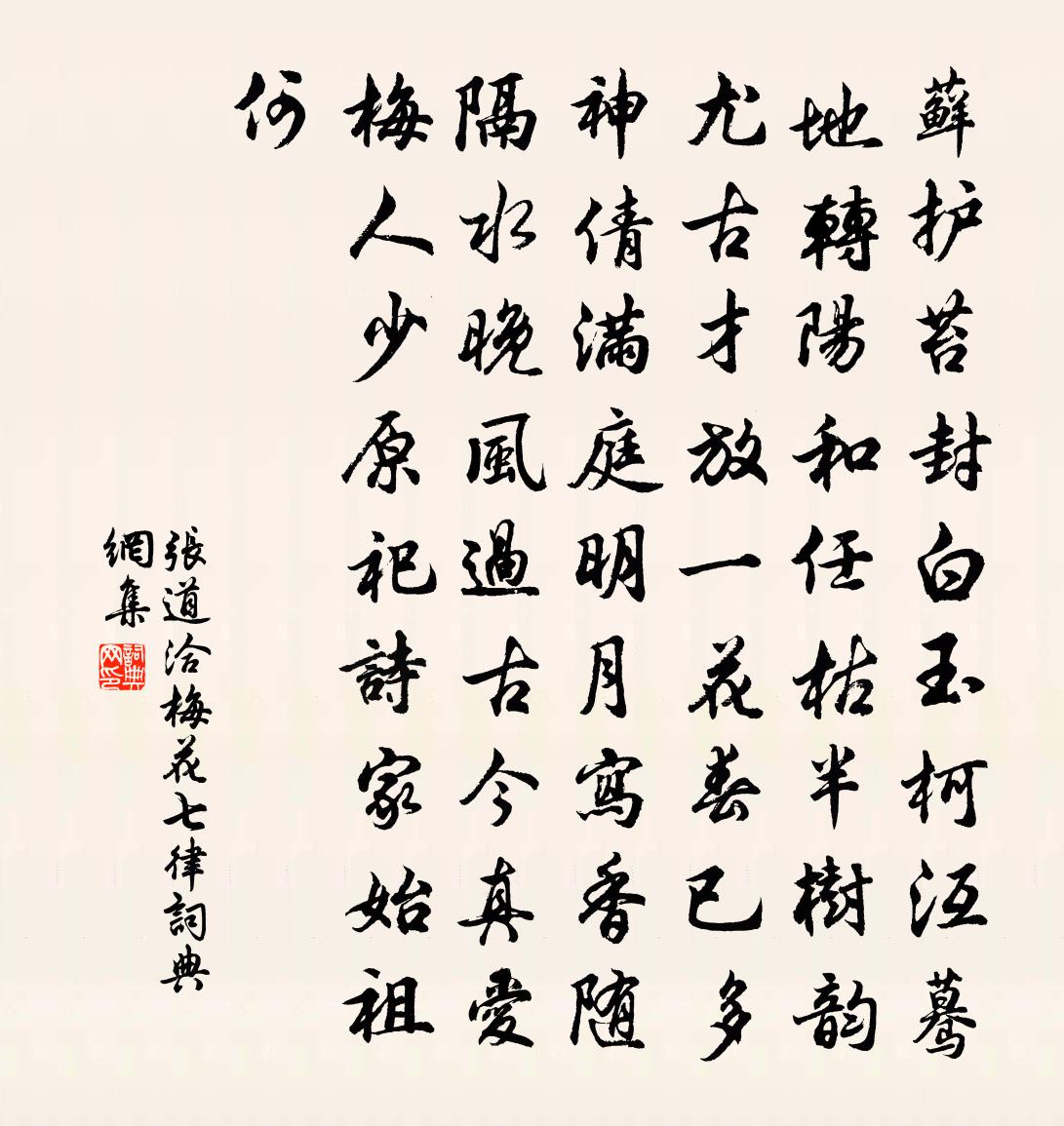 詩詞名句歷史字典書法欣賞書法字典國語詞典說文解字康熙字典古漢語字典標 題 作 者 詩 句 梅花七律作者:張道洽 朝代:宋代梅花七律原文蘚護苔封白玉柯,沍驀地轉陽和。任枯半樹韻尤古,才放一花春已多。神倩滿庭明月寫,香隨隔水晚風過。古今真愛梅人少,原祀詩家始祖何。詩詞問答問:梅花七律的作者是誰?答:張道洽問:梅花七律寫於哪個朝代?答:宋代張道洽梅花七律書法欣賞梅花七律書法作品詩詞推薦贈高九萬並寄孫季蕃二首劉克莊〔宋代〕諸人凋落盡,高叟亦中年。行世有千首,買山無一錢。紫髯長拂地,白眼冷看天。古道微如線,吾儕各勉旃。湖上晚歸寄詩友陳師道〔宋代〕功名違壯志,戒律負前身。劉德長欺客,王融郤笑人。殘年增受歲,病眼怯逢春。杖屨知何向,知公未厭頻。無調名 贈風翔酒郎中 漸悟集卷上馬鈺〔元代〕杜康造底。昔日文君,當壚沽底。驀想古業畢卓,親曾偷底。是劉伶,十分偏愛底。帝前李白曾吐底。欒巴馬起慈鷓鴣天朱敦儒〔宋代〕鳳燭星球初試燈。冰輪輾破碧稜層。來宵雖道十分滿,未必勝如此夜明。留上客,換瑤觥。任教樓外曉參橫。春風蘭陵王張元乾〔宋代〕卷朱箔。朝雨輕陰乍閣。闌乾外,煙柳弄晴,芳草侵階映紅藥。東風妒花惡。吹落。梢頭嫩萼。屏山掩,瀋水倦熏苻堅之苻從竹者載賡呈似方岳〔宋代〕天與西頭掃澤苻,飛英亦暗合孫吳。冰肌起粟秋雲母,水骨浮槎立雪姑。竹丈夫哉能崛強,梅兄弟者亦清癯。一蓑過毛竹山章鑒〔宋代〕一重關復一重關,一步難於一步難。地僻林深晴亦濕,山高風猛夏猶寒。斷崖雲影掛枯樹,劈澗雷聲走怒湍。不信水調歌頭 登紫霄峰詹玉〔宋代〕藜杖破晴碧,鐵笛叫蒼寒。此中別有天地,初不是人間。落魄半生詩酒,自在一襟風月,知我者廬山。撫劍九州隘點絳唇(崇陽野次)王炎〔宋代〕雨濕東風,誰家燕子穿庭戶。孤村薄暮。花落春歸去。浪走天涯,歸思縈心緒。家何處。亂山無數。不記來時路。讀通鑑雜興孫應時〔宋代〕清濁無心陳仲弓,圓機聊救漢諸公。末流不料兒孫誤,千古黃初佐命功。踏莎行(賀宗人熙甫赴任)汪夢斗〔宋代〕選得官歸,黃埃滿面。難於奏賦明光殿。秋帆落日渡淮來,三杯酒濁憑誰勸。舊日佳詞,自吟一遍。綠袍不是嫦娥題宛陵張待舉曲肱亭林之奇〔宋代〕仲蔚蓬蒿宅,宜城詩句中。人賢忘巷陋,境勝失途窮。寒葅書萬卷,零亂剛直胸。偃蹇勳業外,嘯歌山水重。晨雞筠亭宋庠〔宋代〕歲晚檀欒姿,山中映孤宇。聲繁天籟吟,影動仙幢舞。即境是真如,黃花間幽圃。漢老弟近書雲欲看文字無暇作記者證財用韻虞儔〔宋代〕脫粟羹藜未厭餐,何必華屋薦金盤。風前覓句巾常岸,月下揮觴影亦單。懶拙不堪當世用,行藏留與後人看。也知題黃居寀雀竹圖范成大〔宋代〕群雀歲寒保聚,兩鶉日晏忘歸。草間豈無餘粒,喬地風號雪飛。恨春遲歐陽修〔宋代〕欲借江梅薦飲。望隴驛、音息沈沈。住在柳州東,彼此相思,夢回雲去難尋。歸燕來時花期浸。淡月墜、將曉還陰點絳唇(臘梅)洪皓〔宋代〕耐久芳馨,擬將蜂蠟龍涎亞。化工裁下。風韻勝如畫。鼻觀先通,頓減沈檀價。思量也。夢遊吳野。憑仗神為馬。即事十首方岳〔宋代〕殘鬢蕭蕭不滿梳,秋風樵髻立庭除。日明照見崚嶒影,自是山僧不是予。燭影搖紅 松窗午夢初覺毛滂〔宋代〕一畝清陰,半天瀟灑松窗午。床頭秋色小屏山,碧帳垂煙縷。枕畔風搖綠戶。喚人醒、不教夢去。可憐恰到,瘦石和永叔新晴獨過東山丁寶臣〔宋代〕芳辰百五前,選勝到林泉。萬樹綠初染,群花紅未然。陰岩猶貯雪,暖谷自生煙。婦汲溪頭水,人耕草際田。日中名句推薦凡兵家之法,要在應變,好在知兵,舉動必先料敵。佚名《百戰奇略·第十卷·變戰》 瑤草一何碧,春入武陵溪。黃庭堅《水調歌頭·遊覽》 清談可以飽,夢想接無由。韓愈《洞庭湖阻風贈張十一署·時自陽山徙掾江陵》 禍患常積於忽微,而智勇多困於所溺歐陽修《伶官傳序》 得賢者安存,失賢者危亡戴聖《大戴禮記·保傅第四十八》 曲則全,枉則直,窪則盈,敝則新,少則得,多則惑。老子《老子·道經·第二十二章》 欲求生富貴,須下死工夫。佚名《增廣賢文·上集》 聞名不如見面,見面勝似聞名。施耐庵《水滸傳·第三回》 前年過代北,今歲往遼西薛道衡《昔昔鹽》 暗室虧心,神目如電。徐田臣《戲文·殺狗記》