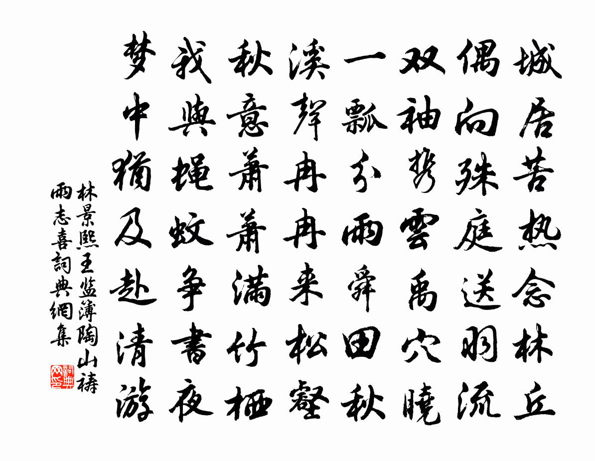 詩詞名句歷史字典書法欣賞書法字典國語詞典說文解字康熙字典古漢語字典標 題 作 者 詩 句 王監簿陶山禱雨誌喜作者:林景熙 朝代:宋代王監簿陶山禱雨誌喜原文城居苦熱念林丘,偶向殊庭送羽流。雙袖攜雲禹穴曉,一瓢分雨舜田秋。溪聲冉冉來松壑,秋意蕭蕭滿竹棲。我與蠅蚊爭書夜,夢中猶及赴清游。詩詞問答問:王監簿陶山禱雨誌喜的作者是誰?答:林景熙問:王監簿陶山禱雨誌喜寫於哪個朝代?答:宋代林景熙王監簿陶山禱雨誌喜書法欣賞王監簿陶山禱雨誌喜書法作品詩詞推薦別楊穎士、盧克柔、殷堯藩白居易〔唐代〕倦鳥暮歸林,浮雲晴歸山。獨有行路子,悠悠不知還。人生苦營營,終日群動間。所務雖不同,同歸於不閒。扁舟西江月向滈〔宋代〕別後千思萬想,眼前一日三秋。小街欄檻記追游。料得新妝依舊。自笑非常蒂殢,為他無限閒愁。莫將離恨寄鄜州贈高相士二首方回〔宋代〕販商公事名才吏,鈔掠平人號戰多。相貌奇厖心慘刻,天生此輩欲如何。與諸公游濟瀆泛舟李頎〔唐代〕濟水出王屋,其源來不窮。洑泉數眼沸,平地流清通。皇帝崇祀典,詔書視三公。分官禱靈廟,奠璧沉河宮。神應蝶戀花陳允平〔宋代〕謝了梨花寒食後。翦翦輕寒,曉色侵書牖。寂寞幽齊惟酌酒。柔條恨結東風手。淺黛嬌黃春色透。薄霧輕煙,遠映送司功入京麴崇裕〔唐代〕崇裕有幸會,得遇明流行。司士向京去,曠野哭聲哀。鳳時春(見殘梅)王質〔宋代〕標格風流前輩。才瞥見春風,蕭然無對。只有月娥心不退。依舊斷橋,橫在流水。我亦共、月娥同意。肯將情移在逮子得龍團勝雪茶兩胯以歸予其直萬錢雲曾幾〔宋代〕移人尤物眾談夸,持以趨庭意可嘉。鮭菜自無三九種,龍團空取十千茶。烹嘗便恐成災怪,把玩那能定等差。賴有過卞氏園亭韓維〔宋代〕桃李郊扉靜,東風拂面柔。偶陪連騎客,來作探春遊。斜日池邊樹,輕雲城上樓。不須花艷動,一醉且淹留。虞美人(紅木樨次謝主簿)趙以夫〔宋代〕素娥冷淡愁無奈。小作施朱態。霓裾霞佩下瑤台。一朵綠雲圍繞、送春來。玄霜搗盡丹砂就。拼醉長生酒。羨君幽寄題太和丞公沈君公館亭台四詠成蹊亭楊萬里〔宋代〕紅雨未隨風,白雪忽滿枝。秪今正月尾,政是斷腸時。壽范翁吳泳〔宋代〕辛夷如雪芳事闌,飛絮捲地春風酣。連陂和雲割青麥,隔塢趁日繰紅蠶。今年夏氣清較早,雨後西山翠如掃。女兒賢者之孝二百四十首王延林同〔宋代〕酷矣杖流備,奇哉魚躍冰。能令母心司,不異已親生。庭堅以去歲九月至鄂登南樓嘆其製作之美成長黃庭堅〔宋代〕江東湖北行畫圖,鄂州南樓天下無。高明廣深勢抱合,表里江山來畫閣。雪延披襟夏簟寒,胸吞雲夢何足言。庾公【正宮】醉太平_題情離情廝喬吉〔元代〕題情離情廝禁,舊約難尋。落紅堆徑雨沉沉。鎖梨花院深。瘦來裙掩鴛鴦錦,愁多夢冷芙蓉枕,髻松釵落鳳凰金,秋日詠蟬梅堯臣〔宋代〕群蟲喜炎熱,此獨愛高陰。薄蛻聊依葉,清聲已出林。人閒感衰節,風急雜遙砧。虛腹曾何竟,常憂螗斧侵。偈傾一百三十三首釋法薰〔宋代〕透過牢關,縱橫獨步。腳頭到處生涯,誰道此山無路。尚志齋辭楊維楨〔元代〕氣易我移,匪志曷持。道雖我志。匪志曷之。既持其移,卒造其至。尚其有大於斯者乎!開孫滿月陸游〔宋代〕夜夢奇童拜且言,今乃幸得生高門。夢後一日得開孫,虎兒墮地百獸奔。未論頭角與眉宇,但聽啼聲誰敢侮!就令題昭州田廷亮書稿後樂雷發〔宋代〕檳榔口裡吐參苓,折檻無門九虎深。家在道鄉亭畔住,定應千古有知音。名句推薦此夜星繁河正白,人傳織女牽牛客。沈佺期《七夕曝衣篇》 善刪者字去而意留,善敷者辭殊而義顯。劉勰《文心雕龍·熔裁》 春雪滿空來,觸處似花開。東方虬《春雪》 客行野田間,比屋皆閉戶。姚合《莊居野行》 疏林紅葉,芙蓉將謝,天然妝點秋屏列。薛昂夫《西湖雜詠·秋》 碧野朱橋當日事,人不見,水空流。秦觀《江城子·西城楊柳弄春柔》 解釋春風無限恨,沉香亭北倚闌乾。李白《清平調·其三》 正單衣試酒,恨客里、光陰虛擲。周邦彥《六醜·落花》 風雨送春歸,飛雪迎春到。 * 《卜運算元·詠梅》 雖死之日,猶生之年陳壽《三國志·吳書·吳主五子傳》