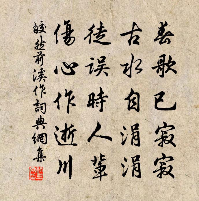 詩詞名句歷史字典書法欣賞書法字典國語詞典說文解字康熙字典古漢語字典標 題 作 者 詩 句 前溪作作者:皎然 朝代:唐代前溪作原文春歌已寂寂,古水自涓涓。徒誤時人輩,傷心作逝川。詩詞問答問:前溪作的作者是誰?答:皎然問:前溪作寫於哪個朝代?答:唐代問:前溪作是什麼體裁?答:五絕皎然前溪作書法欣賞前溪作書法作品注釋全唐詩:卷820-65詩詞推薦貽潘邠老:張耒〔宋代〕有屋可以讀書,有竹可以忘憂。采庭之菊香有餘,烹園之蔬甘且柔。賢哉二子,又復何求。鬼不爾責,人不爾仇。句李泌〔唐代〕青青東門柳,歲晏復憔悴。(見《鄴侯家傳》)良弓摧折久,誰識是龍韜。(見《吟窗雜錄》)旋沫翻成碧玉池,汴京懷古(廣武山)陳維崧〔清代〕汜水敖倉,是楚漢、揮戈邊界。想昔日、名姬駿馬,英雄梗概。滎澤波痕寒疊雪,成皋山色愁凝黛。嘆從來豎子易懷華山隱者劉昭禹〔唐代〕先生入太華,杳杳絕良音。秋夢有時見,孤雲無處尋。神清峰頂立,衣冷瀑邊吟。應笑乾名者,六街塵土深。生查子洪适〔宋代〕九月到盤洲,華發驚霜葉。緩步繞東籬,香蕊金重疊。橘綠又橙黃,四老相迎接。好處不宜休,莫放清尊歇。觀稼楊萬里〔宋代〕三年棄旱獨堪聞,一熟諸村稍作欣。老子朝朝弄田,水眼看翠浪作黃雲。俠客詞楊維楨〔元代〕未許同交死,全身報國讎。太阿飛出匣,欲取賈充頭。醉後韓愈〔唐代〕煌煌東方星,奈此眾客醉。初喧或忿爭,中靜雜嘲戲。淋漓身上衣,顛倒筆下字。人生如此少,酒賤且勤置。偈頌七十一首釋了惠〔宋代〕虎生三子尾吒沙,咂舌垂涎開爪牙。但見威風起岩竇,不知月照幾千家。次韻宏父初夏於石〔宋代〕留得三分春意和,茶醾猶可入吟喔。人情疏密庭前竹,吾道卷舒池上荷。結友豈無今管鮑,論詩奚必古陰何。梅霖青門閒泛皮日休〔唐代〕青翰虛徐夏思清,愁煙漠漠荇花平。醉來欲把田田葉,盡裹當時醒酒鯖。丫頭岩史彌寧〔宋代〕山前露立幾時休,老大垂髫羞不羞。與汝雲冠別梳洗,免教人喚作丫頭。梅花七律張道洽〔宋代〕夜月輕描玉樣身,枉拚心力喚真真。藤床幾度勞清夢,竹屋相看是故人。玉雪襟期惟我共,金蘭氣味更誰親。一清題長春子自畫林景熙〔宋代〕辟穀曾吞日月華,春風不老聚三花。玄關一竅通無極,白髮餘生笑有涯。野鶴相看盟秀竹,洞云何處食靈瓜。披圖金陵其一李白〔唐代〕晉家南渡日,此地舊長安。地即帝王宅,山為龍虎盤。金陵空壯觀,天塹淨波瀾。醉客回橈去,吳歌且自歡。予連日奔走吏事蚤出暮還君然兄數賜臨問乃不強至〔宋代〕朝出雞聲新,暮歸馬蹄苶。思君不得往,一飯或三輟。自從伐木興,友道寢欲滅。夫子眷獨勤,聊解予心結。宿王尊師隱居於鵠〔唐代〕夜愛雲林好,寒天月里行。青牛眠樹影,白犬吠猿聲。一磬山院靜,千燈溪路明。從來此峰客,幾個得長生。冞公出示崇寧超然相與之詩讚以伽陀曹勛〔宋代〕崇師金聲,居士玉振。芝蘭道同,萬塗一進。妙語領略,後學標準。如是如是,雲駛月運。跳珠軒姜特立〔宋代〕激溜跳珠盡日間,卻疑造物不曾閒。何如收取連雲筧,水自水流出自山。西園劉得仁〔唐代〕夏圃秋涼入,樹低逢幘欹。水聲翻敗堰,山翠濕疏籬。綠滑莎藏徑,紅連果壓枝。幽人更何事,旦夕與僧期。名句推薦泛樓船兮濟汾河,橫中流兮揚素波。劉徹《秋風辭》 做弄得、酒醒天寒,空對一庭香雪。張炎《疏影·梅影》 寒禽與衰草,處處伴愁顏。司空曙《賊平後送人北歸》 惟上惟己,去表求實,奸者自見矣。來俊臣《羅織經·察奸卷第八》 薄衾小枕涼天氣,乍覺別離滋味。柳永《憶帝京·薄衾小枕涼天氣》 世情薄,人情惡,雨送黃昏花易落。唐婉《釵頭鳳·世情薄》 壯歲旌旗擁萬夫,錦襜突騎渡江初。辛棄疾《鷓鴣天·有客慨然談功名因追念少年時事戲作》 聞道故林相識多,罷官昨日今如何李頎《送陳章甫》 水色淥且明,令人思鏡湖。李白《登單父陶少府半月台》 滿目山河空念遠,落花風雨更傷春。晏殊《浣溪沙·一向年光有限身》