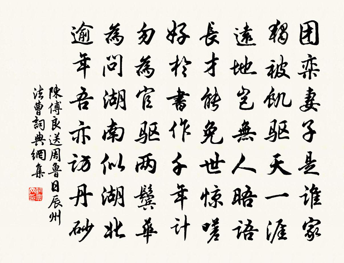 詩詞名句歷史字典書法欣賞書法字典國語詞典說文解字康熙字典古漢語字典標 題 作 者 詩 句 送周魯日辰州法曹作者:陳傅良 朝代:宋代送周魯日辰州法曹原文團欒妻子是誰家,獨被飢驅天一涯。遠地豈無人晤語,長才能免世驚嗟。好於書作千年計,勿為官驅兩鬢華。為問湖南似湖北,逾年吾亦訪丹砂。詩詞問答問:送周魯日辰州法曹的作者是誰?答:陳傅良問:送周魯日辰州法曹寫於哪個朝代?答:宋代陳傅良送周魯日辰州法曹書法欣賞送周魯日辰州法曹書法作品詩詞推薦望梅花孫光憲〔唐代〕數枝開與短牆平,見雪萼,紅跗相映。引起誰人邊塞情。簾外欲三更,吹斷離愁月正明。空聽隔江聲。紹興祀皇地祗十五首佚名〔宋代〕毖祀泰折,柔祗是承。於赫藝祖,道格三靈。式嚴配侑,厚德惟寧。爰昭牙幣,享於克誠。黃樓陳師道〔宋代〕樓上噹噹徹夜聲,與人何事有枯榮。已傳紙貴鹹陽市,更恐書留後世名。題劉景明百馬圖扇面楊萬里〔宋代〕霧鬣如無筆,霜蹄不帶埃。直言明眼著,若個是龍媒。癸卯上元即席次楊使君韻二首劉克莊〔宋代〕初陽收久雨,淳祐第三春。聊與眾行樂,稍欣農食新。俱蒙青帝力,莫問紫姑神。座上遨頭作,流傳遍郡人。贈施道州二首劉克莊〔宋代〕施先生學有源流,家自長安徒益州。疇昔建牙當一面,只今失國托諸侯。身僑嶽麓無生計,目斷岷峨起暮愁。聞道山胡蘇轍〔宋代〕山胡擁蒼毳,兩耳白茸茸。野樹啼終日,黔山深幾重。啄溪探細石,噪虎上孤峰。被執應多恨,筠籠僅不容。直舍紀事二首程公許〔宋代〕獨冷官曹可得禁,近來冷過玉壺冰。無錢沽酒休煩送,有馬知誰許借乘。罷謁最宜吟慘澹,愛間贏得睡懵騰。鸞鳳宿疏陂驛王周〔唐代〕秋染棠梨葉半紅,荊州東望草平空。誰知孤宦天涯意,微雨蕭蕭古驛中。晨興白居易〔唐代〕宿鳥動前林,晨光上東屋。銅爐添早香,紗籠滅殘燭。頭醒風稍愈,眼飽睡初足。起坐兀無思,叩齒三十六。何以經古墓熊孺登〔唐代〕碑折松枯山火燒,夜台從閉不曾朝。那將逝者比流水,流水東流逢上潮。別家後次飛狐西即事馬戴〔唐代〕遠歸從此別,親愛失天涯。去國頻回首,方秋不在家。鳴蛩聞塞路,冷雁背龍沙。西次桑乾曲,洲中見荻花。寄江陵王少府方乾〔唐代〕分手頻曾變寒暑,迢迢遠意各何如。波濤一阻兩鄉夢,歲月無過雙鯉魚。吟處落花藏筆硯,睡時斜雨濕圖書。此來風入松·桂吳文英〔宋代〕蘭舟高盪漲波涼。愁被矮橋妨。暮煙疏雨西園路,誤秋娘、淺約宮黃。還泊郵亭喚酒,舊曾送客斜陽。蟬聲空曳別念奴嬌仲並〔宋代〕練江風靜,臥冰奩百尺,朱闌飛入。江遠浮天天在水,水滿半天雲濕。白鳥明邊,青山斷處,眼冷江頭立。月明潮鵲橋仙 強村叢書用善本書室藏鈔默庵文集本安熙〔元代〕徘徊尊俎。徜徉笑語。俯仰乾坤今古。世間豪傑數元龍,想未識、聖門風度。也非學圃。也非懷土。靜看落花風雨望江南/憶江南佚名〔宋代〕左右字,從古不曾聞。未必書生能點墨,安知蔭子不能文。爾汝今朝。除去了,多謝聖明恩。既不可高談闊論,又見梅有感曹彥約〔宋代〕莫把夭妍等重輕,賦成千韻況難名。看來好處非因色,敢向春前似有情。奈老不成三弄笛,濟時還擬一杯羹。清標紅槿花戎昱〔唐代〕花是深紅葉麴塵,不將桃李共爭春。今日驚秋自憐客,折來持贈少年人。挽何司令二首李曾伯〔宋代〕憶昨初傾蓋,同登巴岳樓。江淮重邂逅,幕府屢綢繆。夢絕秋城柝,人隨夜壑舟。潛山歸路杳,草木亦淒愁。名句推薦雁濕行無次,花沾色更鮮。李世民《詠雨》 山夾水,澗。陵夾水,澞。山有穴為岫。佚名《爾雅·釋山》 竹柏皆凍死,況彼無衣民。白居易《村居苦寒》 鳥向檐上飛,雲從窗里出。吳均《山中雜詩》 風流才子多春思,腸斷蕭娘一紙書。楊巨源《崔娘詩》 星河秋一雁,砧杵夜千家。韓翃《酬程延秋夜即事見贈》 亂點鴛鴦譜馮夢龍《醒世恆言·卷八》 聞善以相告也,見善以相示也戴聖《禮記·儒行》 曾與美人橋上別,恨無訊息到今朝。劉禹錫《楊柳枝 / 柳枝詞》 毛羽不豐滿者不可以高飛劉向《戰國策·秦一·蘇秦始將連橫》