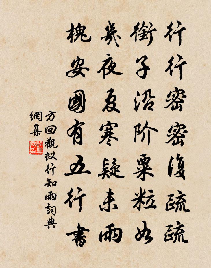 詩詞名句歷史字典書法欣賞書法字典國語詞典說文解字康熙字典古漢語字典標 題 作 者 詩 句 觀蟻行知雨作者:方回 朝代:宋代觀蟻行知雨原文行行密密復疏疏,銜子沿階粟粒如。幾夜夏寒疑未雨,槐安國有五行書。詩詞問答問:觀蟻行知雨的作者是誰?答:方回問:觀蟻行知雨寫於哪個朝代?答:宋代方回觀蟻行知雨書法欣賞觀蟻行知雨書法作品詩詞推薦玉樓春(落花)劉景翔〔宋代〕可憐又誤江南景。雨膩風喧愁入暝。依稀碧玉水邊魂,憔悴綠珠樓外影。點點隨人飛遠近。薄倖相逢情怎忍。年年水調歌頭(壽錢太尉)吳叔虎〔宋代〕清澈黃河底,乙未政和年。坤珍闡瑞,運符五百間生賢。日暖曲江花柳,鼎沸韶春弦管,尺五是青天。殊寵逢熙載山居雜詩九十首曹勛〔宋代〕旬日扣玉京,所見如夙昔。紅雲隱碧洞,清溪映白石。臨流坐且久,浩流坐且久,浩氣洞胸臆。溪深竟難涉,踟躕卞將軍墓曾極〔宋代〕握節顏色拳透爪,歸元先軫面如生。晉陵發掘今無主,獨有忠魂占冶城。次韻吉老十小詩黃庭堅〔宋代〕半菽一瓢飲,懸鶉百結衣。蕭條鬼不瞰,聊可與同歸。漁父詞十三首蒲壽宬〔宋代〕煙浦廻環幾百灣,無人知此橛頭船。風露冷,月娟娟。雲間一過看飛仙。水龍吟(和野渡生朝)衛宗武〔宋代〕桑蓬掃盡閒愁,未應人比梅花瘦。眉峰頓展,恰如雲卷,北山□九。縈錦繡腸,袖絲綸手,駸駸希有。□□□博取積雨蒸潤,體中不佳,頗思故居之樂,戲書呈范成大〔宋代〕門外泥深蘸馬鞍,墨雲未放四維寬。前山忽接後山暗,暑雨全如秋雨寒。夢裡江湖三嘆息,醉中天地一憑闌。斗升寄趙信州一叔二首趙蕃〔宋代〕蓬山辭上直,番國喚回舟。舊事超千佛,茲行奪萬牛。未除真學士,且列古諸侯。詔旨防敦迫,民言願借留。初春王績〔唐代〕春來日漸長,醉客喜年光。稍覺池亭好,偏宜酒瓮香。更漏子(般涉調)張先〔宋代〕杜陵春,秦樹晚。傷別更堪臨遠。南去信,欲憑誰。歸鴻多北歸。小桃枝,紅蓓發。今夜昔時風月。休苦意,說相題四皓廟四首邵雍〔宋代〕彈秦失御血橫流,天下求君君不有。正是英雄較逐時,未知鹿入何人手。酹江月/念奴嬌仇遠〔宋代〕片雲凝墨,看荷花才濕,依然無雨。水檻空明人少到,卻卻幽禽相語。曲幾橫陳,長琴高掛,自奏南風譜。俄聞刀偈傾一百六十九首釋智朋〔宋代〕懸崖撒手,藉草眠雲,四方八面,移南作北。佛祖不歷處,古今不到處,如何行履。三九二十七,籬頭吹觱栗。通山李傳正〔宋代〕我愛通羊好,居民山作城。眼前無俗事,枕畔有灘聲。思歸引釋重顯〔宋代〕一住翠峰頂,兩見溪草綠。不知朝市間,幾番生榮辱。蕭條岩上雲,冷淡水邊竹。報誰歸去來,向此空踟躅。寧宗郊前朝獻景靈宮二十四首真宗〔宋代〕[圜鍾為宮]四靈晨耀,五結夕明。風雲晏和,天地焠清。靈兮來迎,靈兮來寧。避我子孫,鄉於純精。和孫端叟蠶首十五首其十二繰盎梅堯臣〔宋代〕朝漬一盎繭,繰就幾絢絲。絲成繭已盡,盎亦誰復持。道上有墮甑,車傍有鴟夷。二物且莫笑,顧藉各因時。景福東廂詩菊司馬光〔宋代〕瑣瑣南陽菊,秋潭歲自開。孤根擁紅葉,落蕊媚蒼苔。正以參靈藥,因之植紫台。願兼金掌露,同入柏梁杯。偈頌一百三十六首釋惟一〔宋代〕白雲岩上月,太平松下影。深夜秋風生,都成一片境。名句推薦小姑織白紵,未解將人語。李白《湖邊採蓮婦》 見善思齊,足以揚名不朽;聞惡能改,庶得免乎大過。吳兢《貞觀政要·卷四·教戒太子諸王》 塞雁高飛人未還,一簾風月閒。李煜《長相思·一重山》 解把飛花蒙日月,不知天地有清霜。曾鞏《詠柳·亂條猶未變初黃》 年年今夜,月華如練,長是人千里。范仲淹《御街行·秋日懷舊》 爾來從軍天漢濱,南山曉雪玉嶙峋。陸游《金錯刀行》 鵬北海,鳳朝陽。辛棄疾《鷓鴣天·送廓之秋試》 馬毛縮如蝟,角弓不可張。鮑照《代出自薊北門行》 穆湖蓮葉小於錢,臥柳雖多不礙船。朱彝尊《鴛鴦湖棹歌·一百首選二》 漸老多憂百事忙,天寒日短更心傷。李覯《秋晚悲懷》