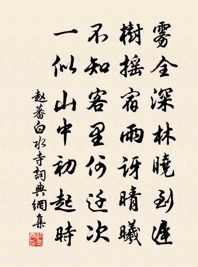 詩詞名句歷史字典書法欣賞書法字典國語詞典說文解字康熙字典古漢語字典標 題 作 者 詩 句 白水寺作者:趙蕃 朝代:宋代白水寺原文霧全深林曉到遲,樹搖宿雨訝晴曦。不知客里何遷次,一似山中初起時。詩詞問答問:白水寺的作者是誰?答:趙蕃問:白水寺寫於哪個朝代?答:宋代趙蕃白水寺書法欣賞白水寺書法作品詩詞推薦次韻臞山順處齋艾可翁〔宋代〕喪亂逾三載,孤高配九秋。日方行北陸,江不改東流。詩入中年老,官逢世變休。仲將頭雪白,搖落更多愁。松曾極〔宋代〕匯進 * 卒召戎,萌芽培養自熙豐。當時手植留遺愛,只有岩前十八公。至揚州文天祥〔宋代〕顛崖一陷落千尋,奴僕偏生負主心。飢火相煎疲欲絕,滿山荒草曉沉沉。雨中花(按調乃滿路花)袁去華〔宋代〕江上西風晚。野水兼天遠。雲衣拖翠縷,易零亂。見柳葉滿梢,秀色驚秋變。百歲今強半。兩鬢青青,盡著吳霜偷荷葉杯許棐〔宋代〕鵲踏畫檐雙噪。書到。和笑拆封看。歸程能隔幾重山。遠約數宵間。準備繡輪雕轡。遊戲。說與百花知。莫教枝上初夏佚名〔宋代〕窗戶經初雨,風清野景饒。閒庭猶戲蝶,高柳已鳴蜩。新春詞鄭獬〔宋代〕晴暉散入鳳凰樓,一桁朱簾不下鉤。漢殿鬧簪雙彩燕,並和春色上釵頭。侯公謹輓詞林季仲〔宋代〕富貴功名等弁髦,何如聲跡翳蓬蒿。倦遊正被微官縛,辭祿方知處士高。華萼向來榮父行,芝蘭重見秀兒曹。寄言赴端禮之招道中李處權〔宋代〕高人折簡苦相催,要及春風把一杯。花柳溪山寒食後,雲中何似雨中來。昔康節先生題安樂窩詩中雲樂見善人樂聞善事仇遠〔宋代〕人生有至樂,主善以為師。善端本固有,樂處亦自知。我思舜之徒,難鳴日孳孳。簞瓢在陋巷,顏氏其庶幾。之子南歌子(荊溪寄南徐故人)趙長卿〔宋代〕春思濃如酒,離心亂似綿。一川芳草綠生煙。客里因循、重過艷陽天。屈指歸期近,愁眉淚洒然。無端還被此情牽王氏女楊維楨〔元代〕王氏女,始州人。羌中老虎旁金地,朝接長安暮聚南山群,龐家大將不敢嗔。王氏女,在虎門。上馬與聯轡,下馬和梁簽判潁州西湖十三題碧瀾堂蘇頌〔宋代〕北渚清泠十頃波,偶來憑檻意如何。且觀秋水蒙莊論,休聽滄浪漁父歌。寄宿田家高適〔唐代〕田家老翁住東陂,說道平生隱在茲。鬢白未曾記日月,山青每到識春時。門前種柳深成巷,野谷流泉添入池。牛壯次韻二首劉克莊〔宋代〕投老參陪杖屨間,頗容摘宋更薰班。端能面我九年壁,不惜分君一半山。絕喜庚桑來畏壘,懶為涑水續君灘。夷居別陸務觀章甫〔宋代〕江南江北雖一水,欲濟無由若千里。那知奔走避邊塵,邂逅西津見君子。一飯山間同野僧,花前把酒看張燈。醉吟梅戴復古〔宋代〕孤標粲粲壓群葩,獨占春風管歲華。幾樹參差江上路,數枝裝點野人家。冰池照影何須月,雪岸聞香不見花。絕似首正有感二首陳藻〔宋代〕憶昔吾鄉入首正,衩衣街斷小書生。紫衫來去今無幾,恰似當年冠帶行。九日宴李德充中大家次韓三十六丈韻作晁說之〔宋代〕重陽風雨每淒淒,物色今年得所期。賜第好賢多驥子,三山酌酒過鵝兒。紅樓尚想 * 夕,碧樹今夸出日枝。我與次韻和周大書事絕句晁說之〔宋代〕終日寒齋詠小招,故人軒檻俯溪橋。可憐不得宣城郡,白日消來恨未消。名句推薦靡蕪盈手泣斜暉,聞道鄰家夫婿歸。魚玄機《閨怨》 善有善報,惡有惡報。不是不報,時候未到。佚名《增廣賢文·上集》 而天下皆曰其力也,必不能曰我見命焉。墨子《墨子·36章 非命(中)》 屈盤戲白馬,大笑上青山。李白《登敬亭北二小山余時送客逢崔侍御並登此地》 吾以為古之善者則述之,今之善者則作之,欲善之益多也。墨子《墨子·46章 耕柱》 春遊之盛,西湖未能過也。姜夔《琵琶仙·雙槳來時》 君子以成德為行,日可見之行也。佚名《易傳·文言傳·乾文言》 綠酒初嘗人易醉。一枕小窗濃睡。晏殊《清平樂·金風細細》 霜降碧天靜,秋事促西風。葉夢得《水調歌頭·九月望日與客習射西園余偶病不能射》 西湖到日,重見梅鈿皺。吳文英《瑞龍吟·送梅津》