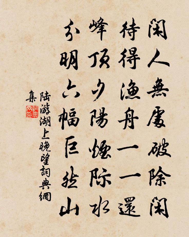閒人無處破除閒,待得漁舟一一還。峰頂夕陽煙際水,分明六幅巨然山。