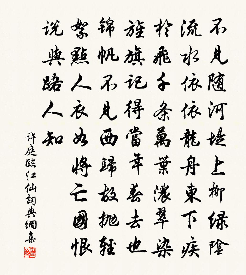 - 離愁漸遠漸無窮,迢迢不斷如春水。